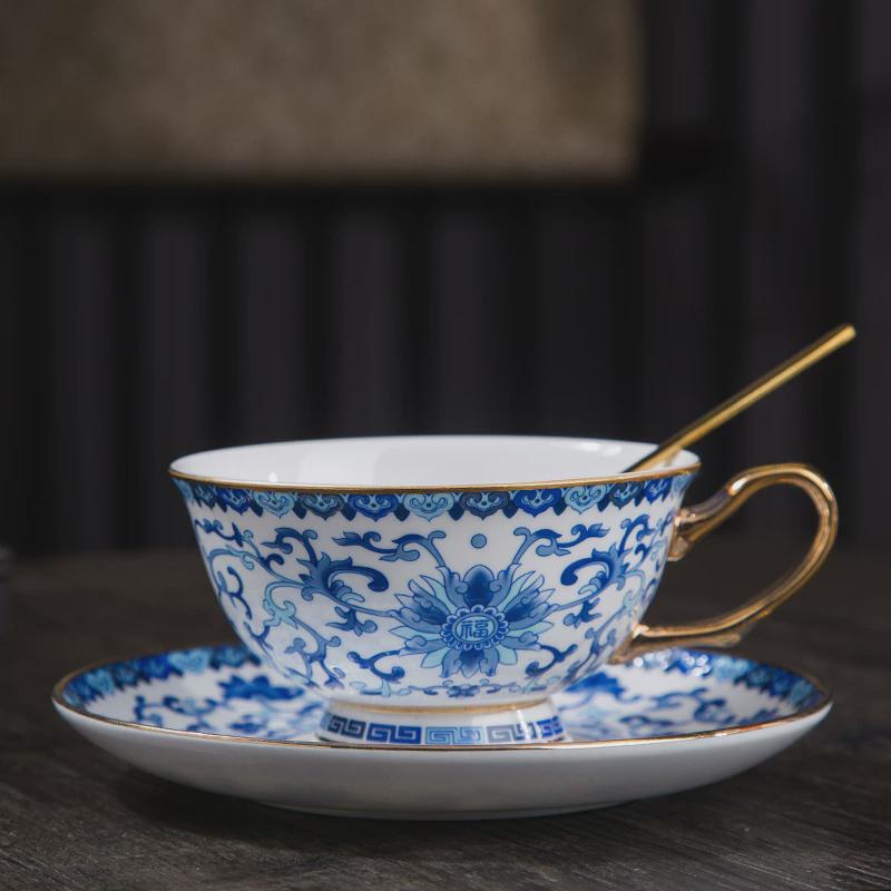 金边珐琅彩咖啡杯宫廷风牛奶午茶骨瓷中式礼品盒情侣杯景德镇陶瓷