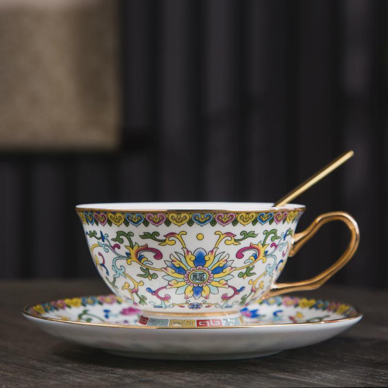 金边珐琅彩咖啡杯宫廷风牛奶午茶骨瓷中式礼品盒情侣杯景德镇陶瓷