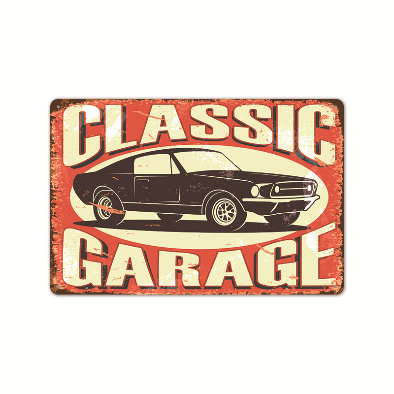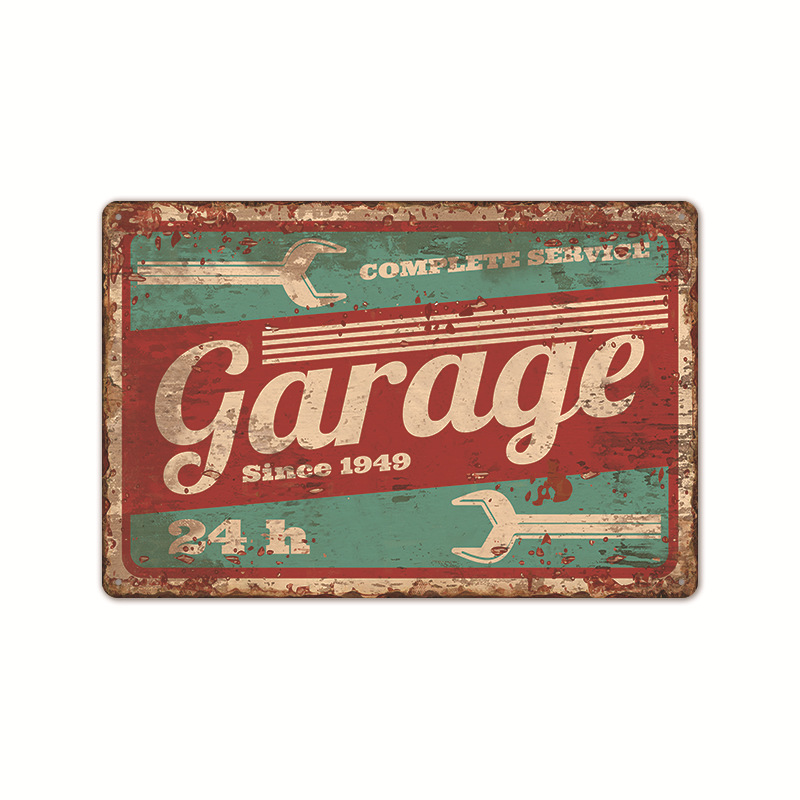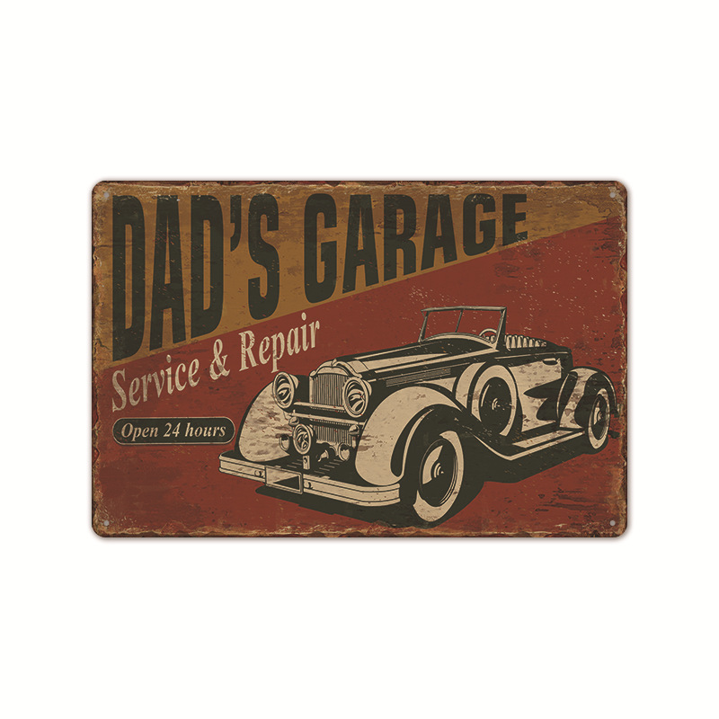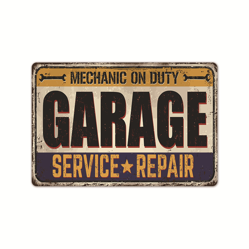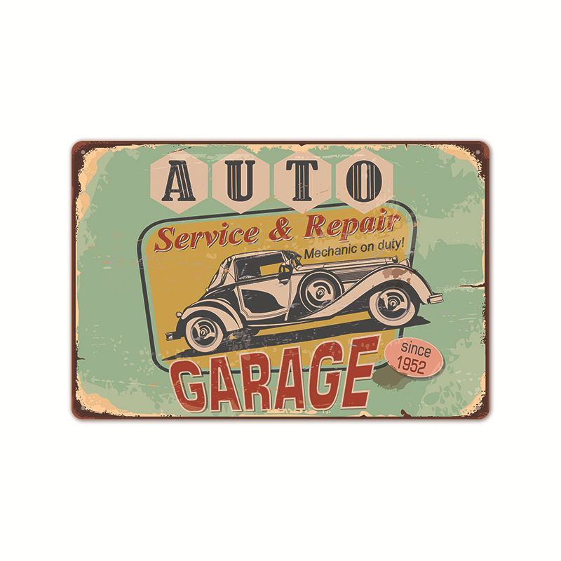 2024新款美式车库garage复古铁皮画工业风汽修背景墙无框装饰挂画