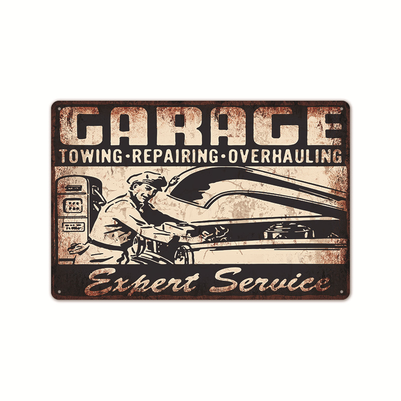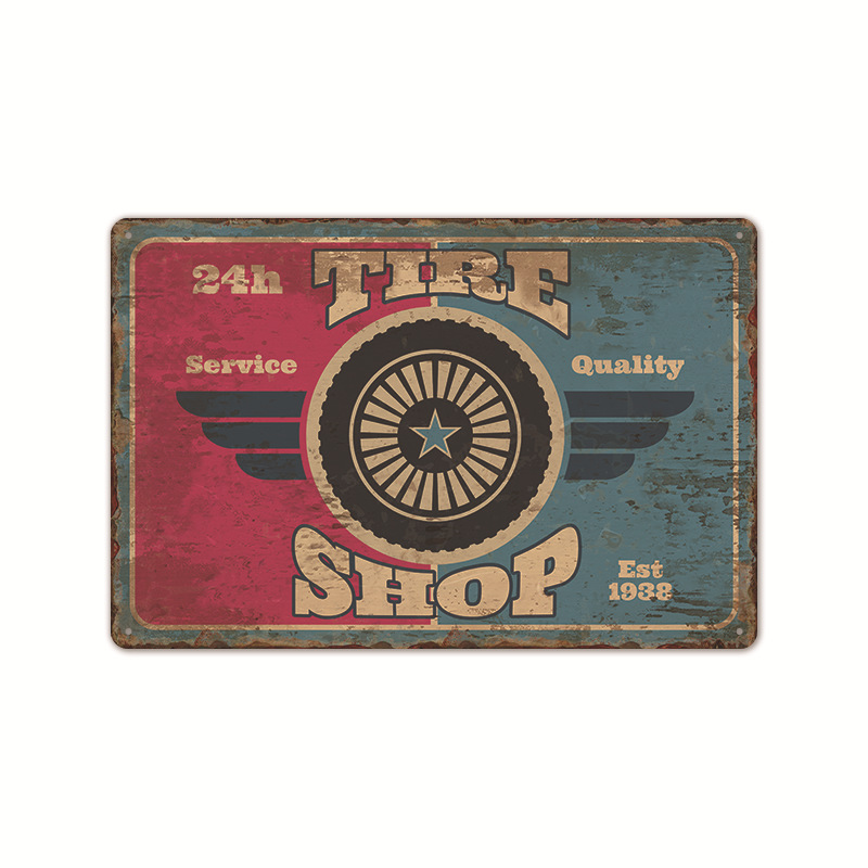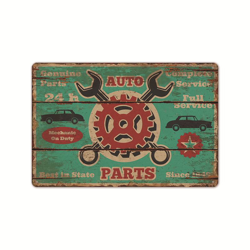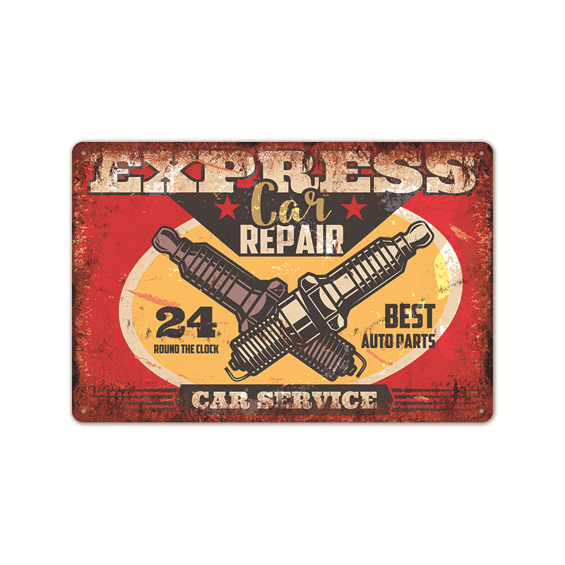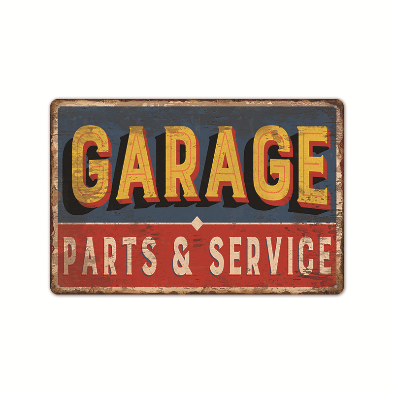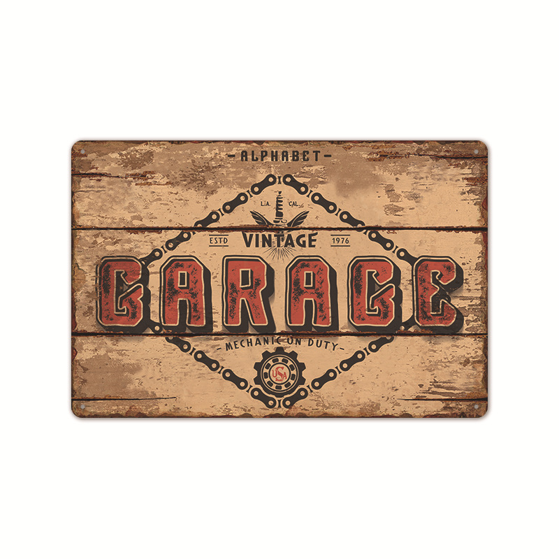 2024新款美式车库garage复古铁皮画工业风汽修背景墙无框装饰挂画