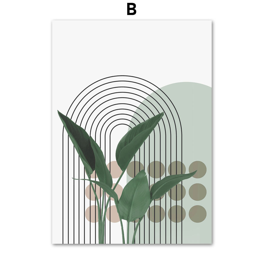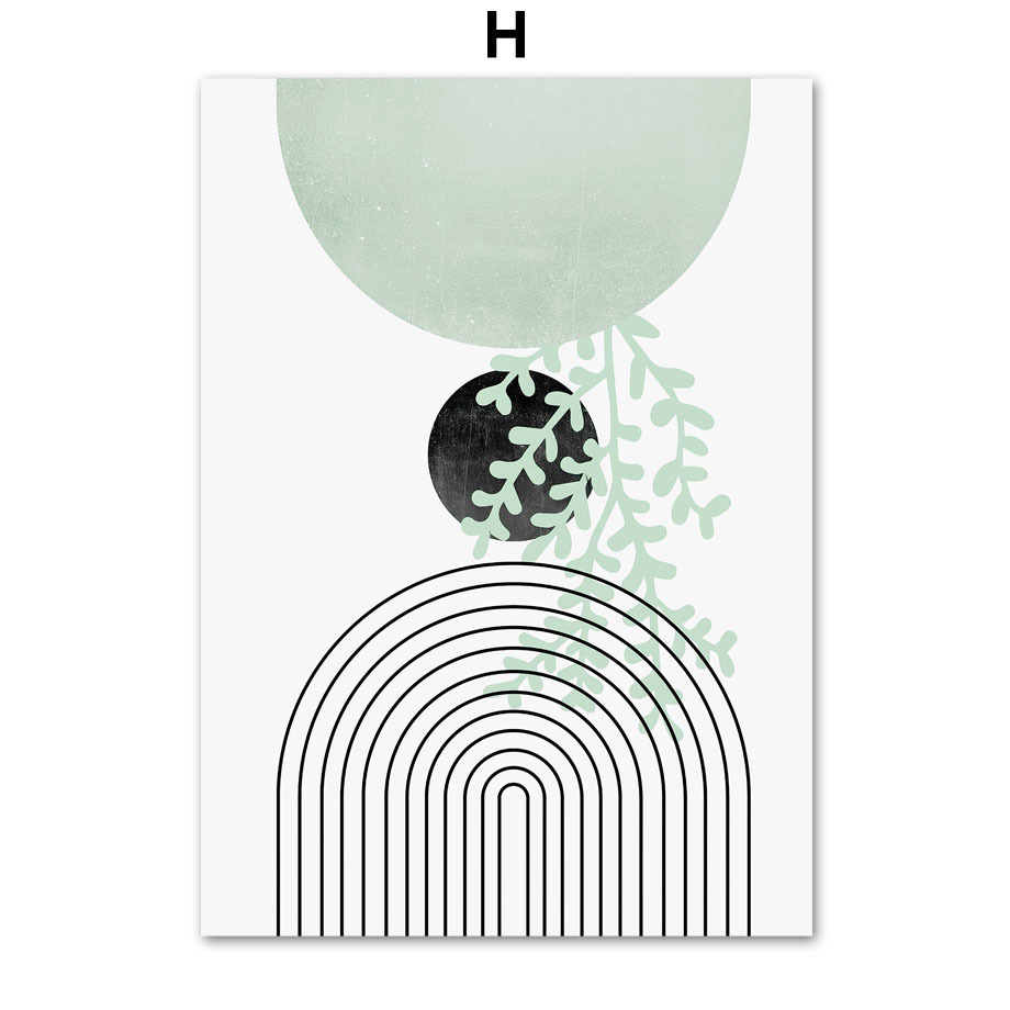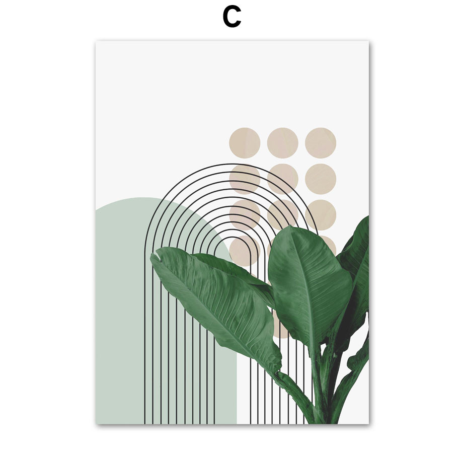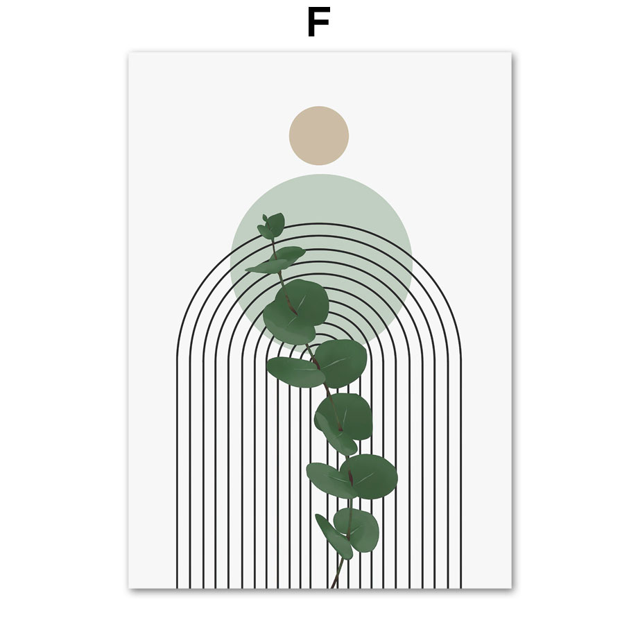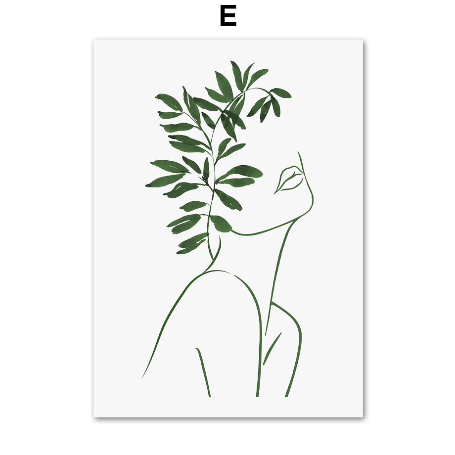 现代简约清新抽象几何人脸线条绿叶海报画芯家庭装饰画艺术帆布画