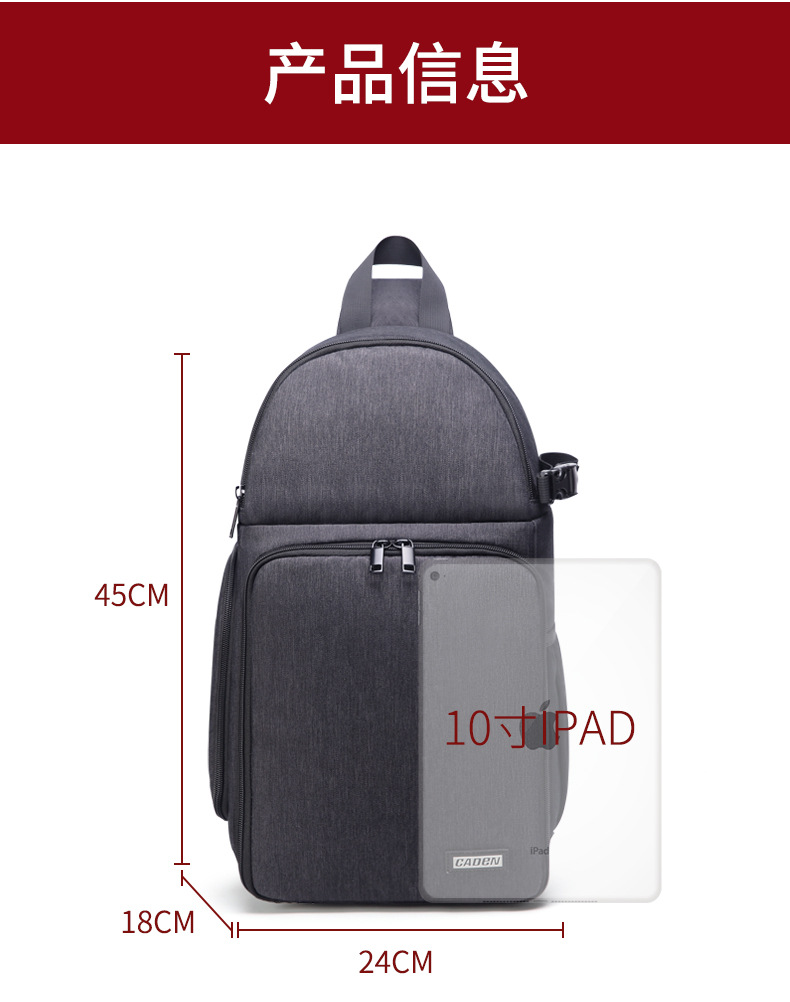 CADeN卡登单肩数码包 防水多功能相机斜挎摄影背包透气简约单反包