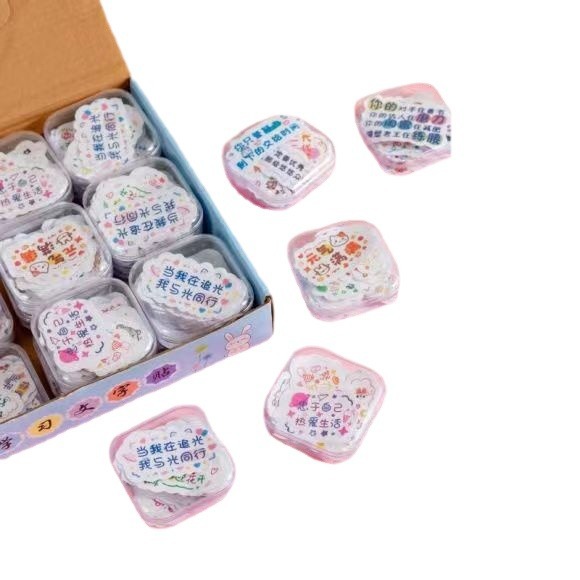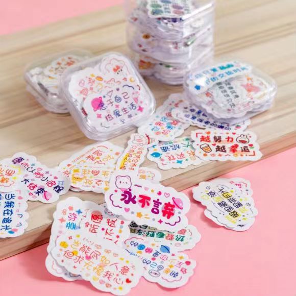 精品店货源笑萌盒装创意激励学习文字贴 30张可爱语录文字贴批发