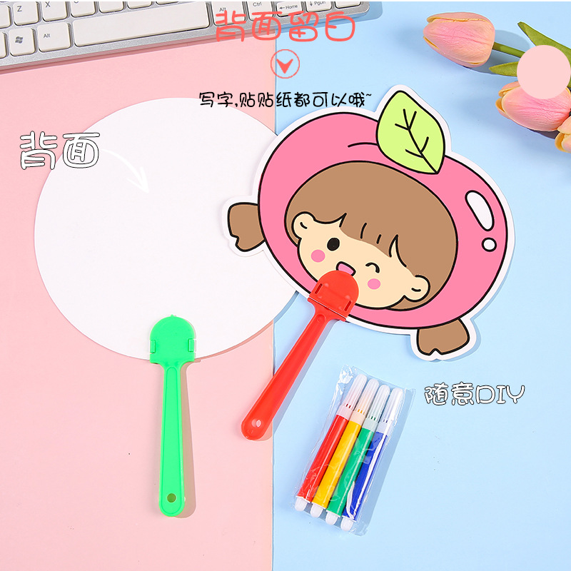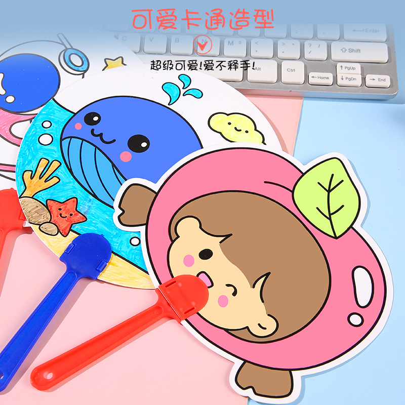 儿童卡通DIY涂鸦扇 幼儿园手工小礼品小学生彩绘填色小扇子批发