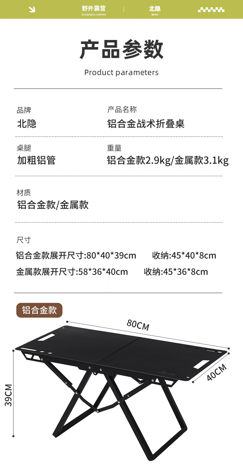 户外轻量化战术桌露营可折叠桌野营铝合金金属款野餐桌超轻便携