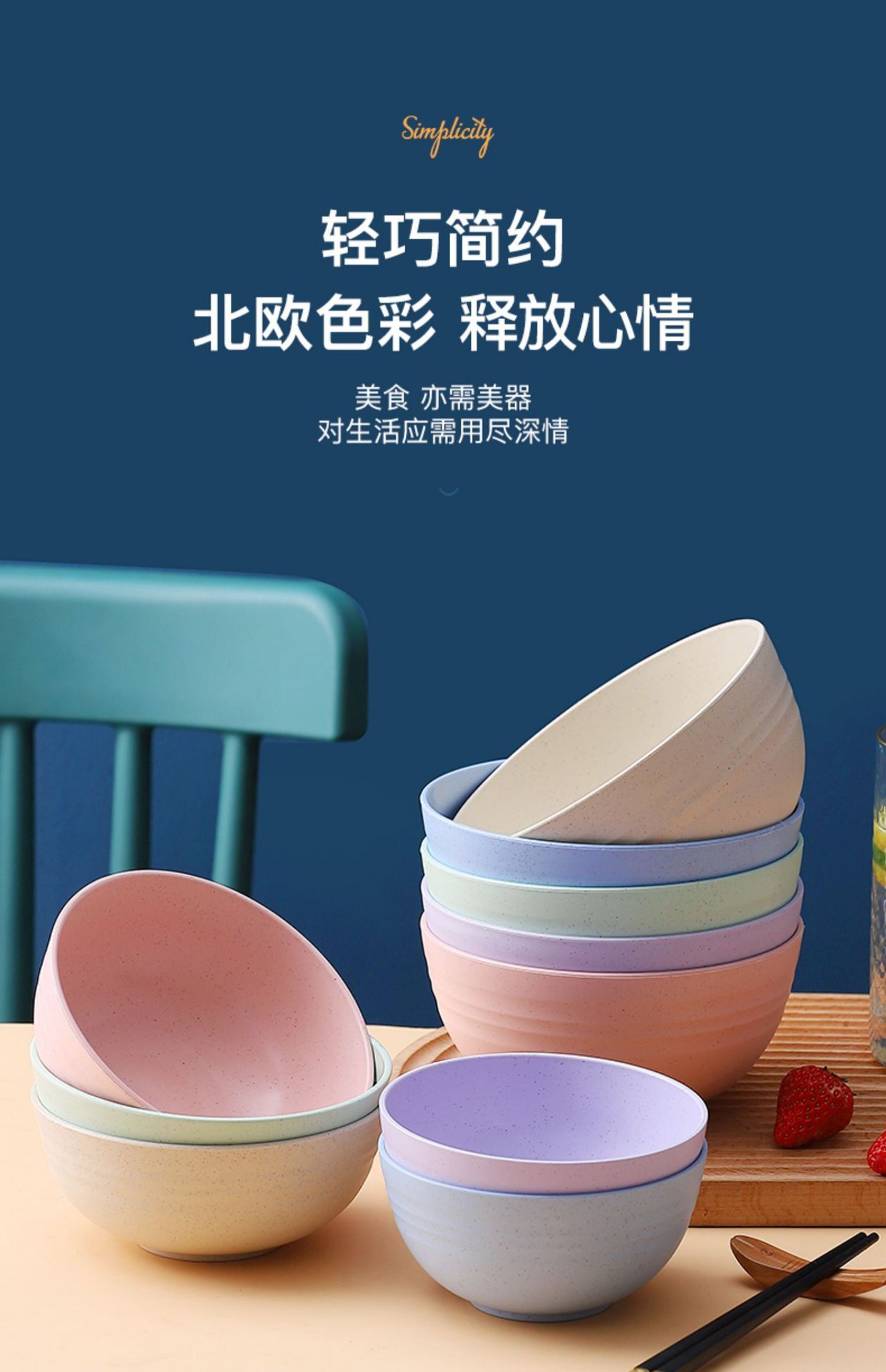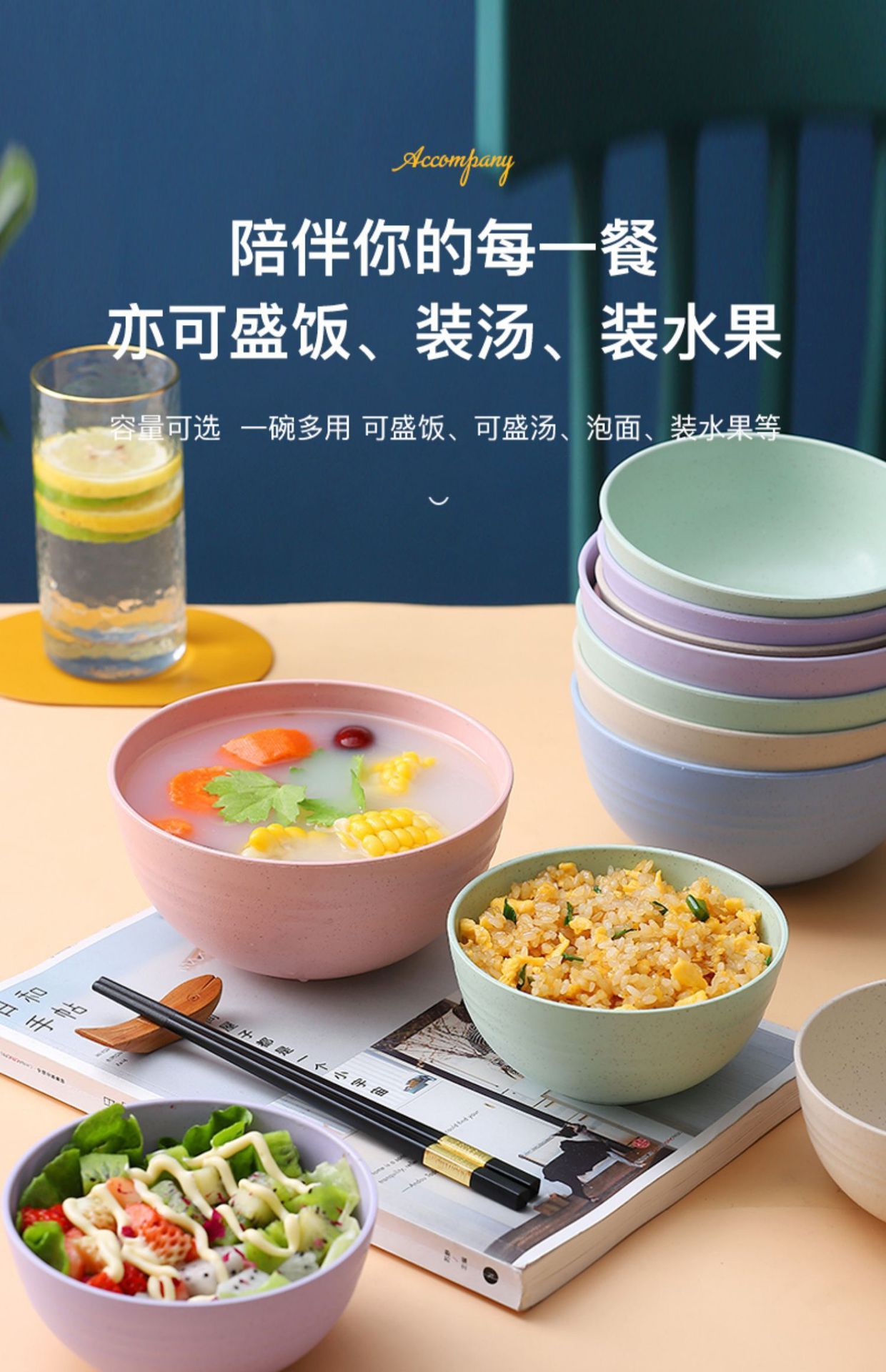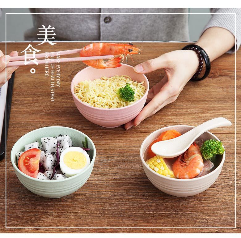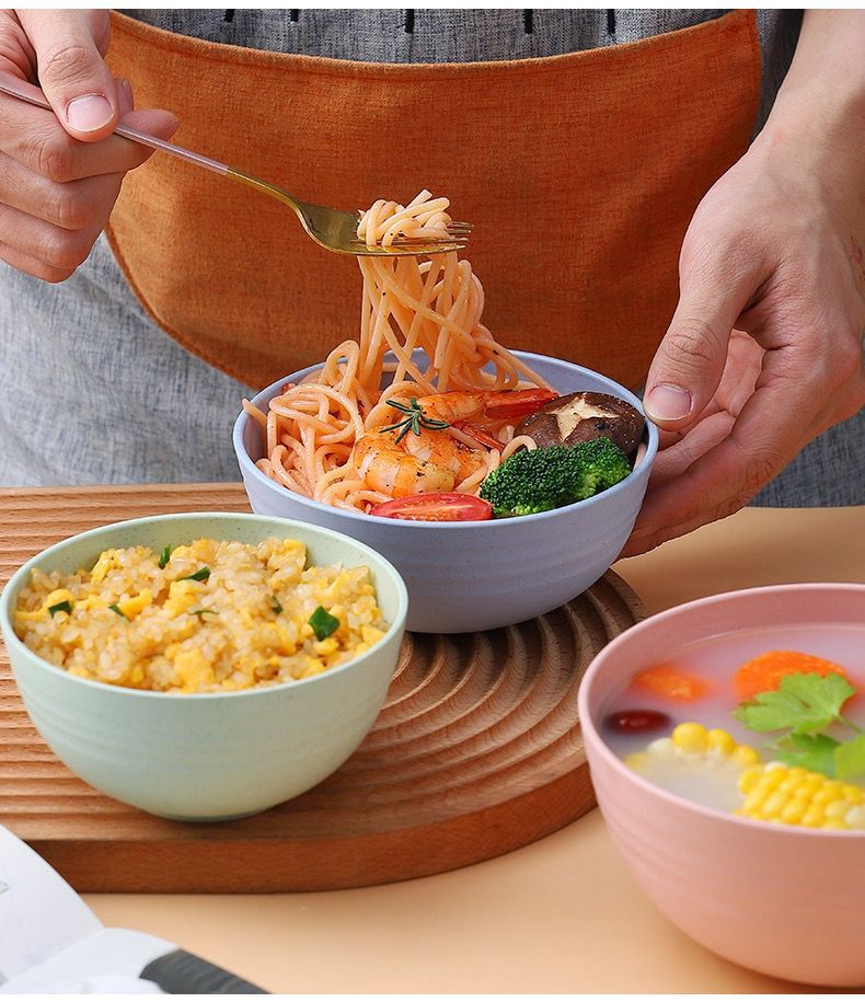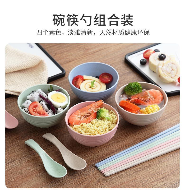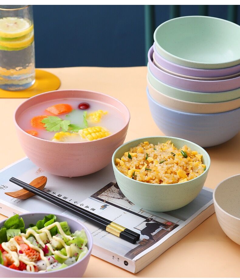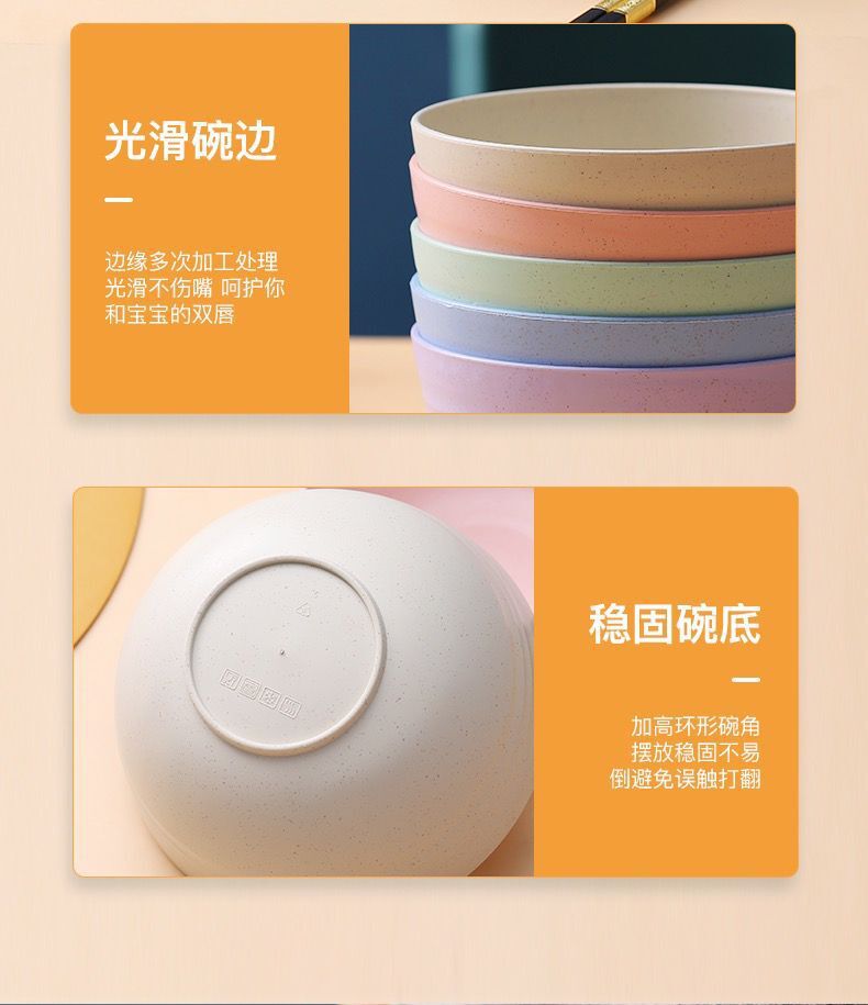 小麦秸秆防摔碗家用汤碗米饭碗泡面碗塑料碗学生儿童餐具套装批发