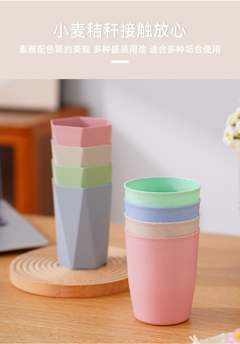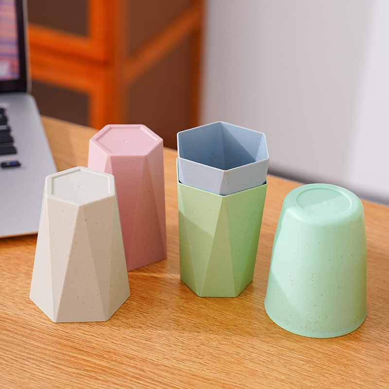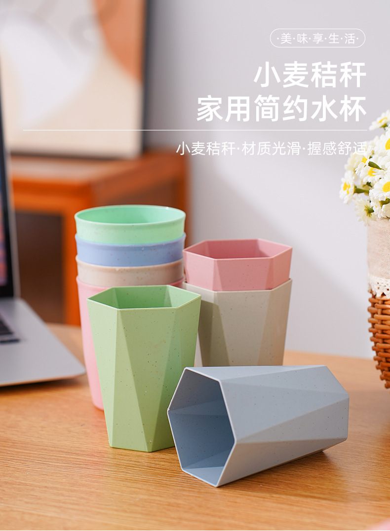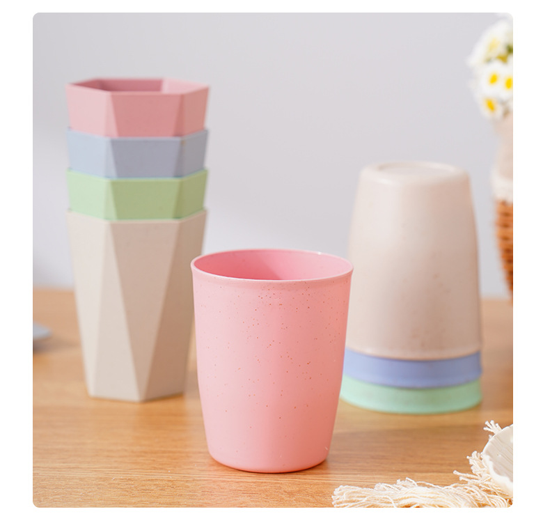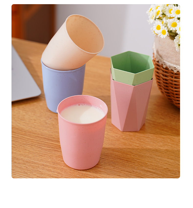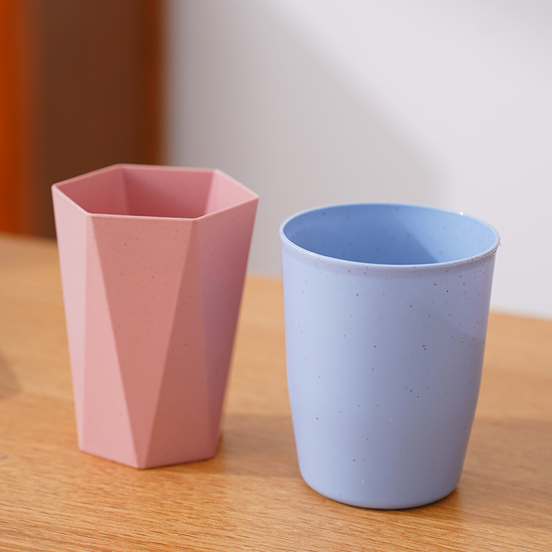 防摔塑料杯子家用洗漱口杯牙刷杯小麦秸秆圆杯菱形六角杯情侣水杯