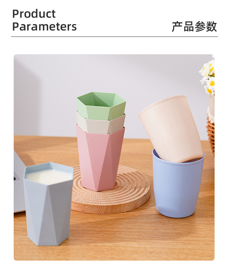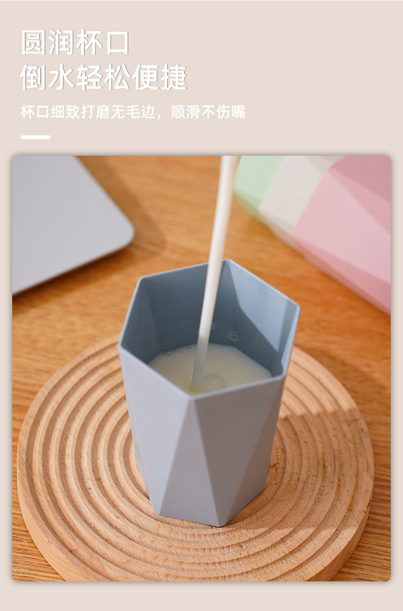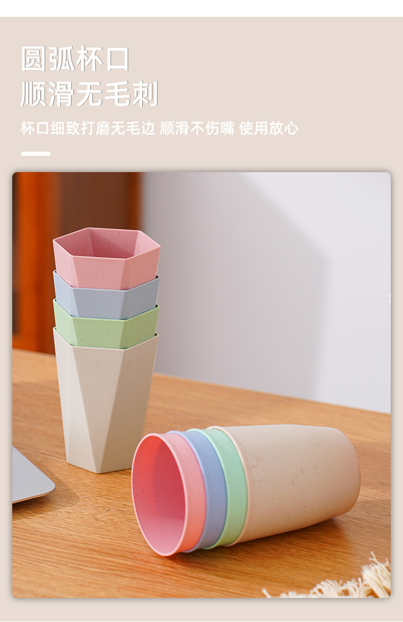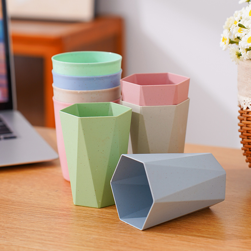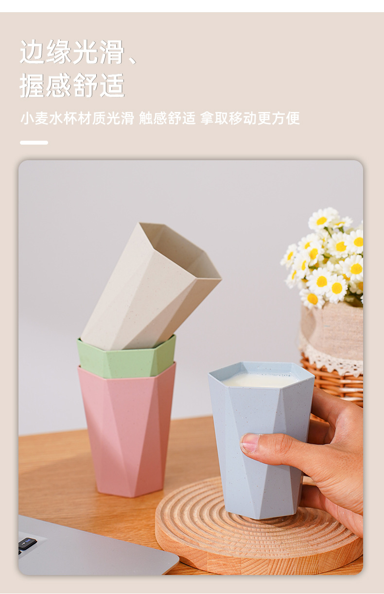 防摔塑料杯子家用洗漱口杯牙刷杯小麦秸秆圆杯菱形六角杯情侣水杯