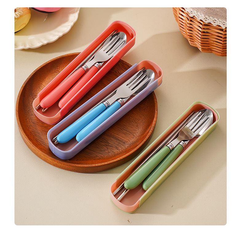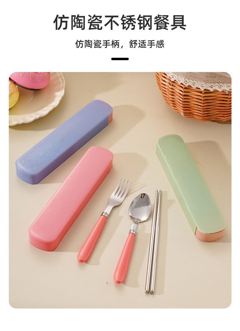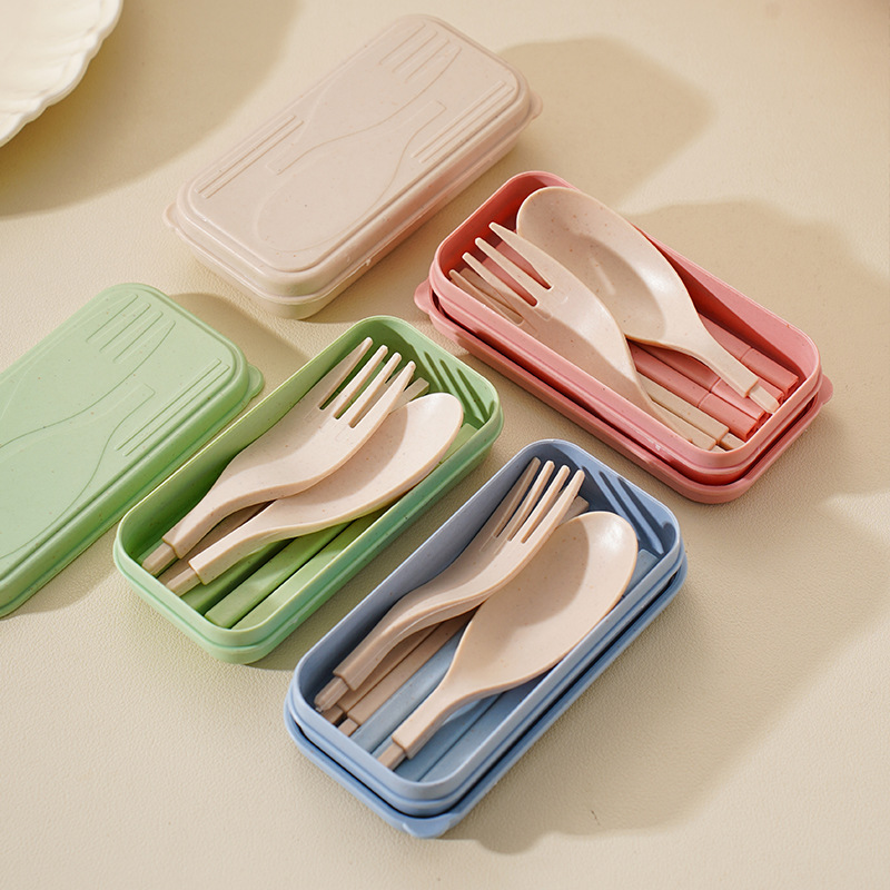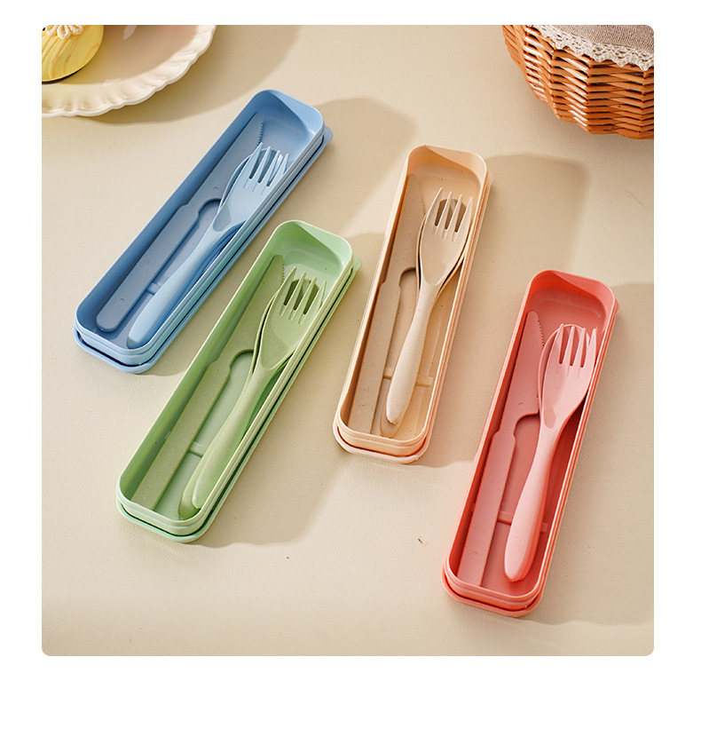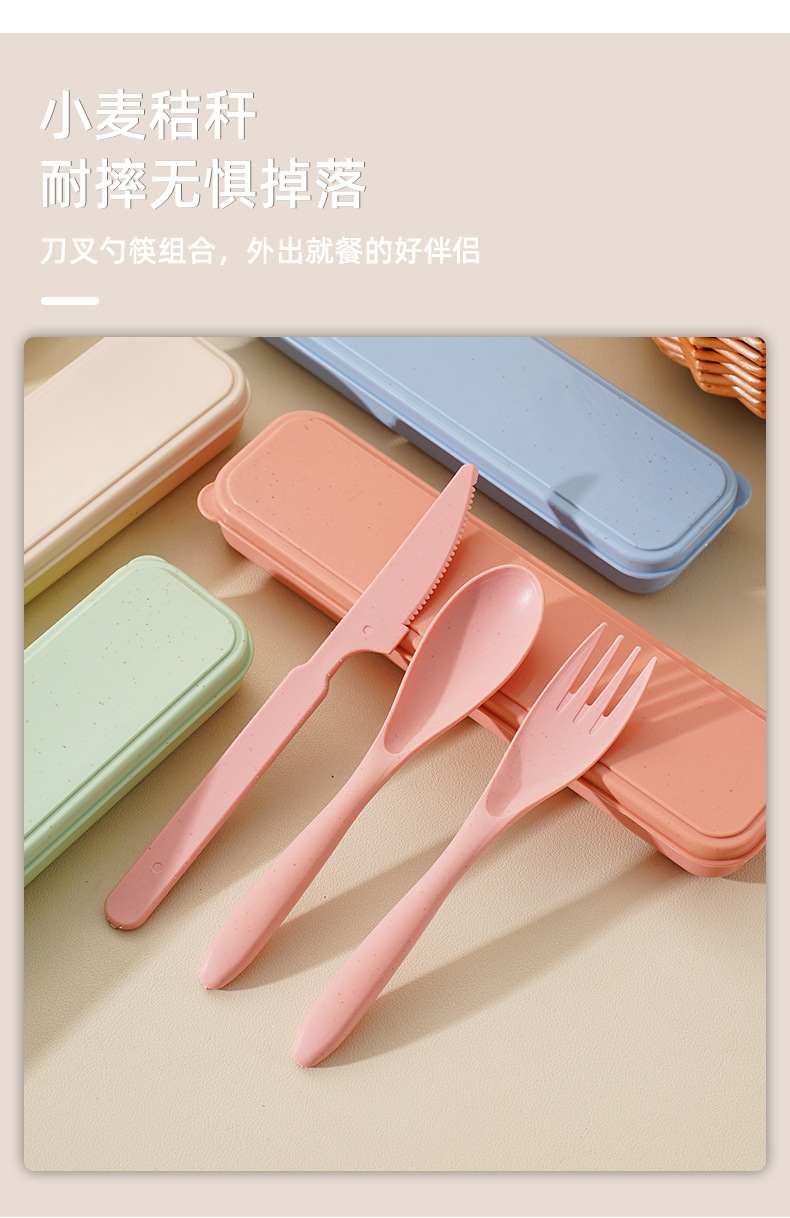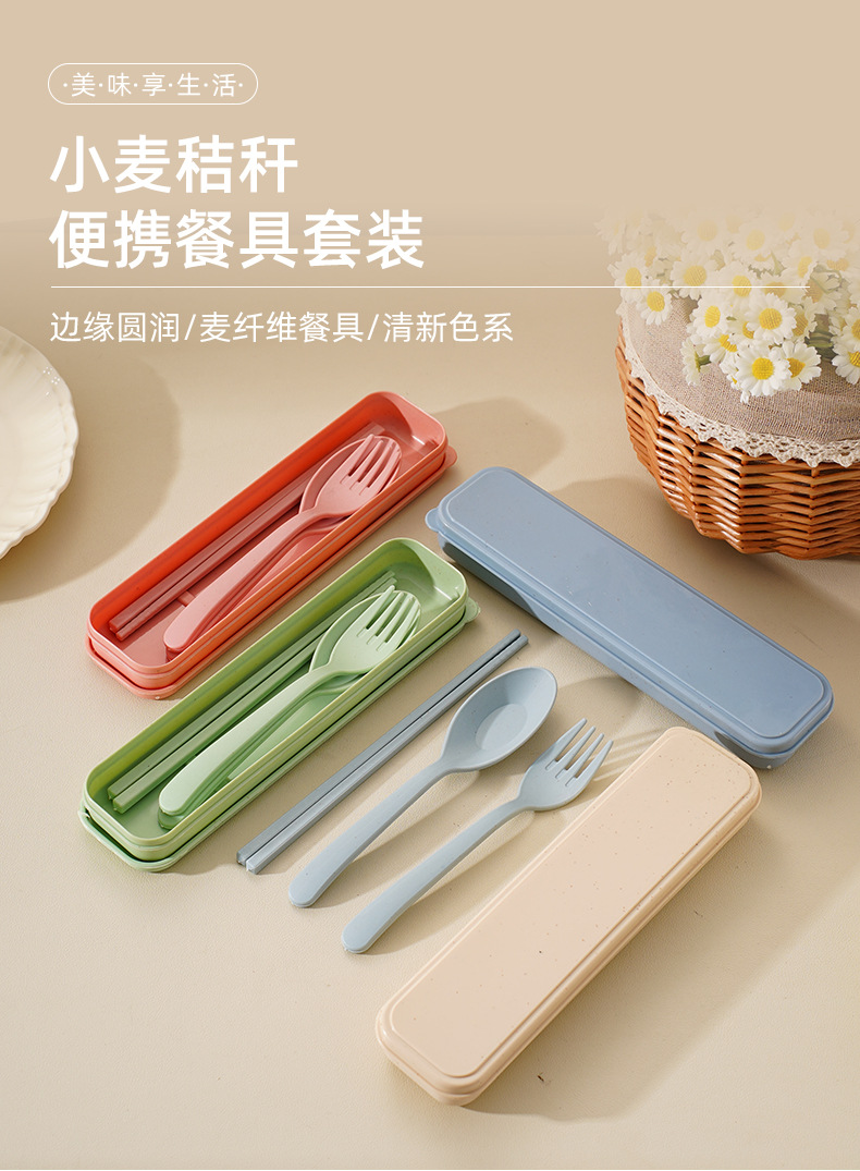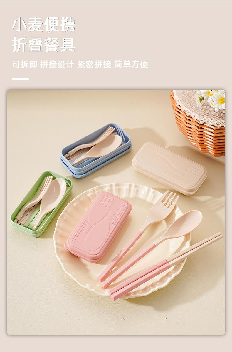 便携餐具套装三件套学生户外旅行勺叉筷刀子折叠餐具小麦秸秆礼品