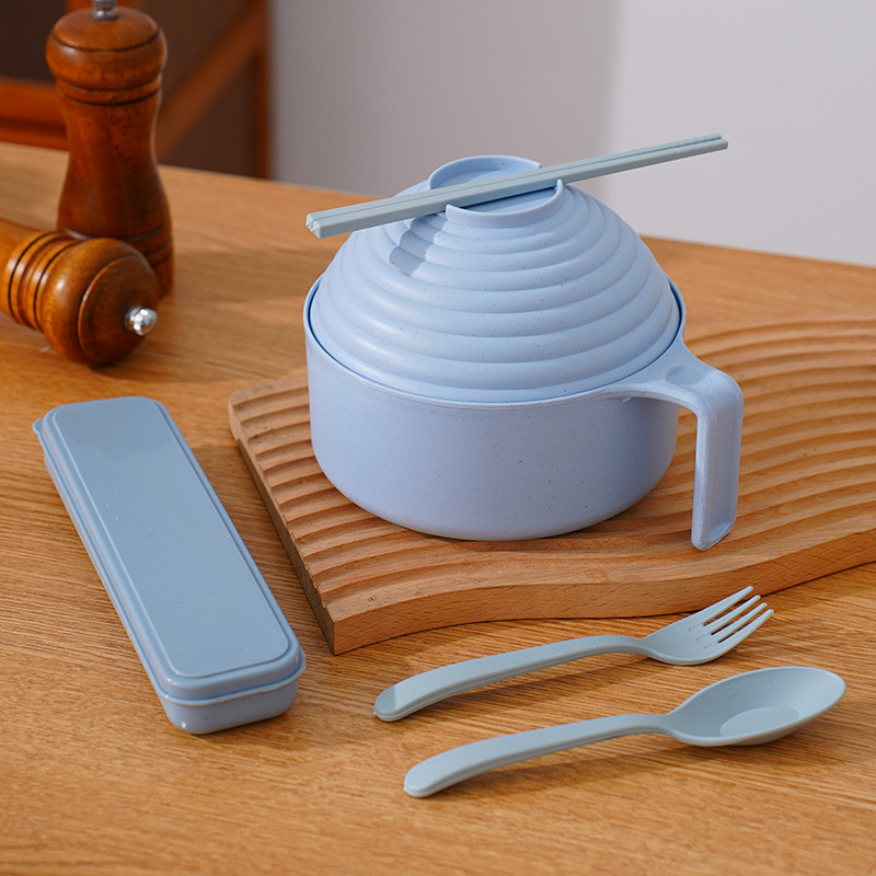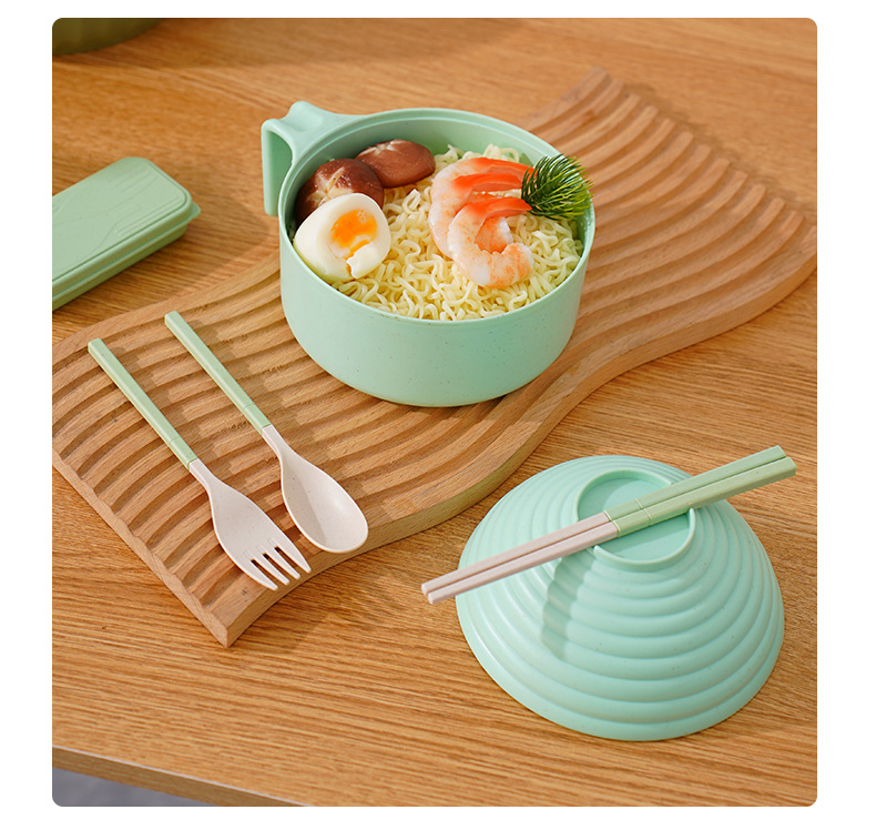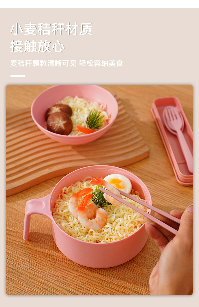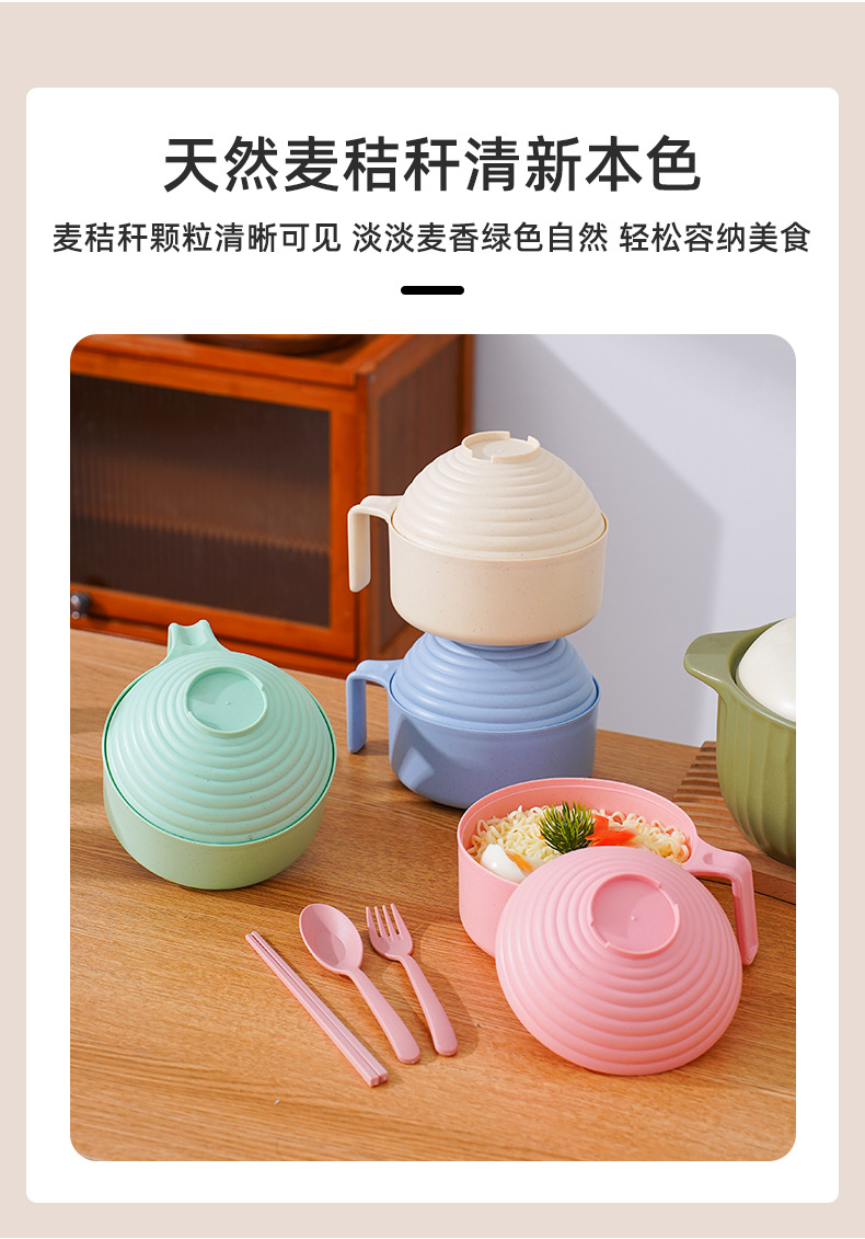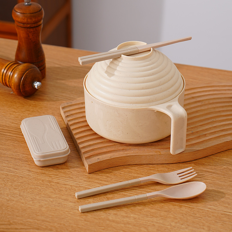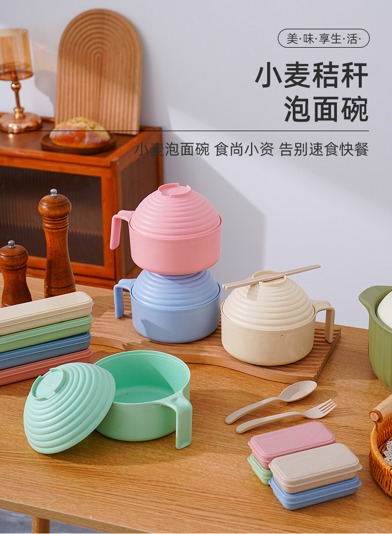 泡面碗小麦秸秆碗防摔便携学生宿舍带盖方便面碗餐具碗勺叉筷套装