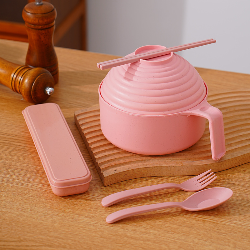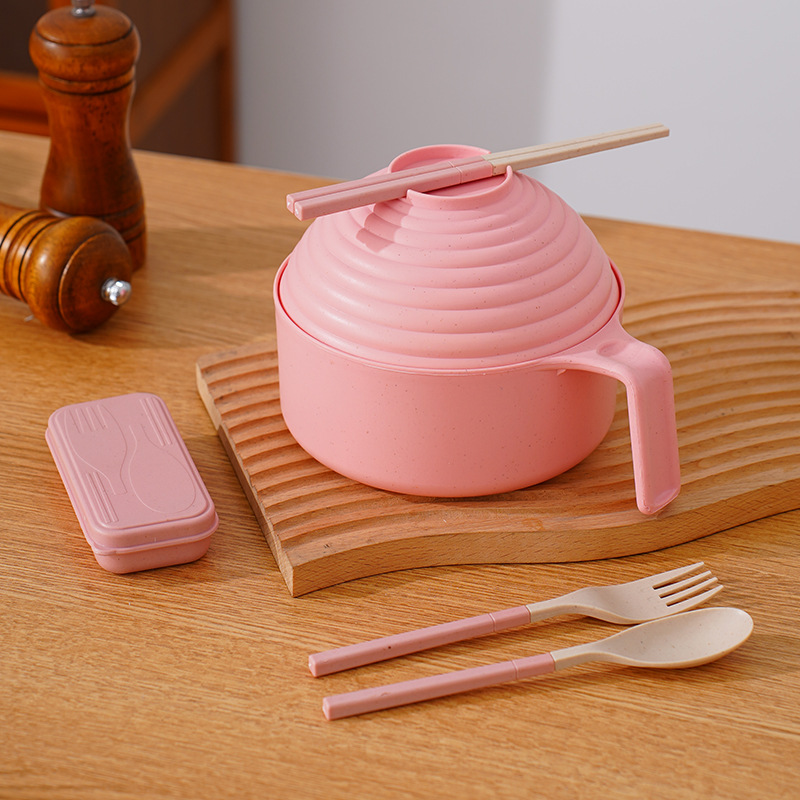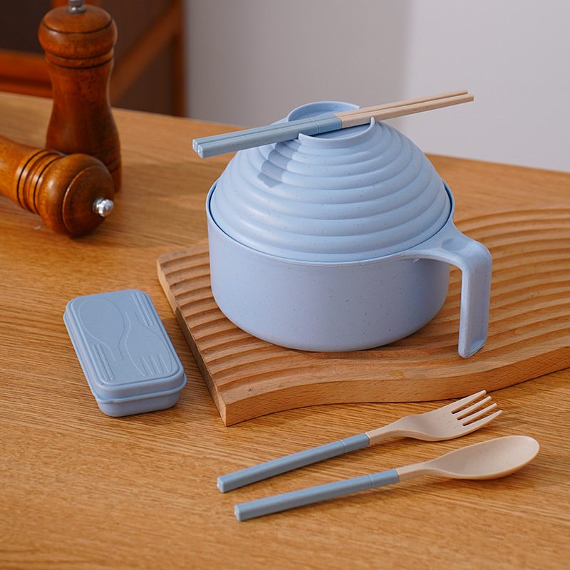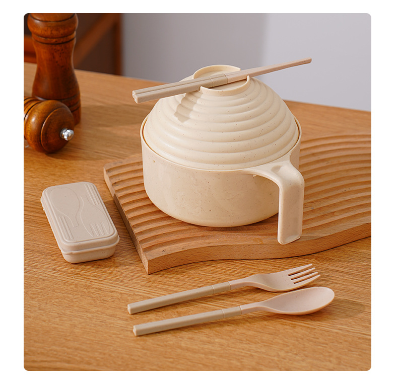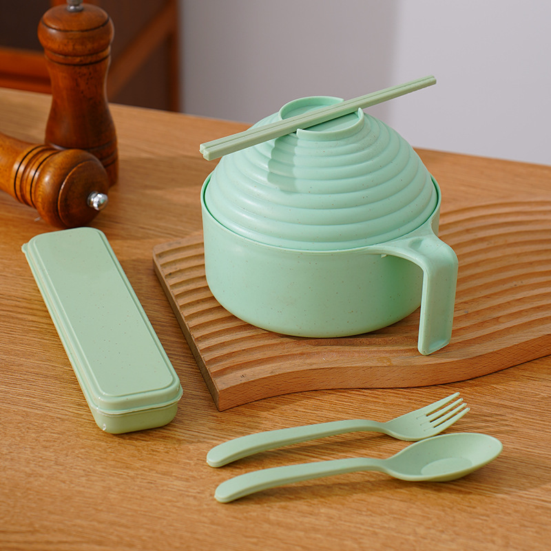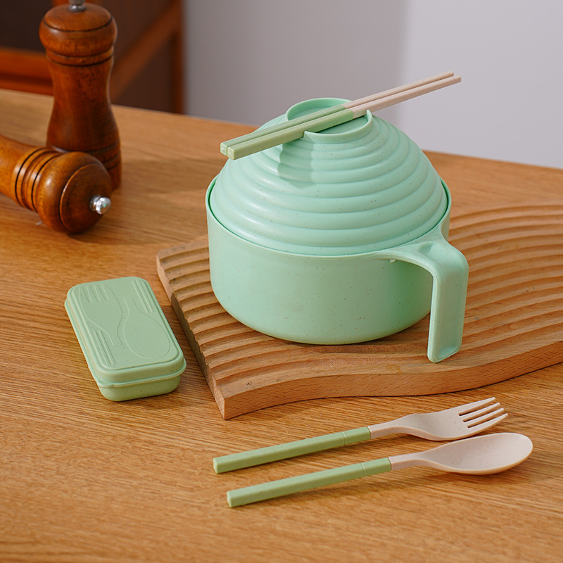 泡面碗小麦秸秆碗防摔便携学生宿舍带盖方便面碗餐具碗勺叉筷套装