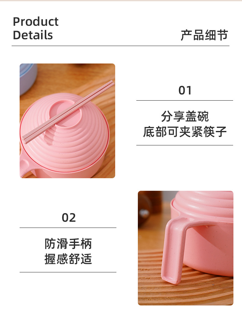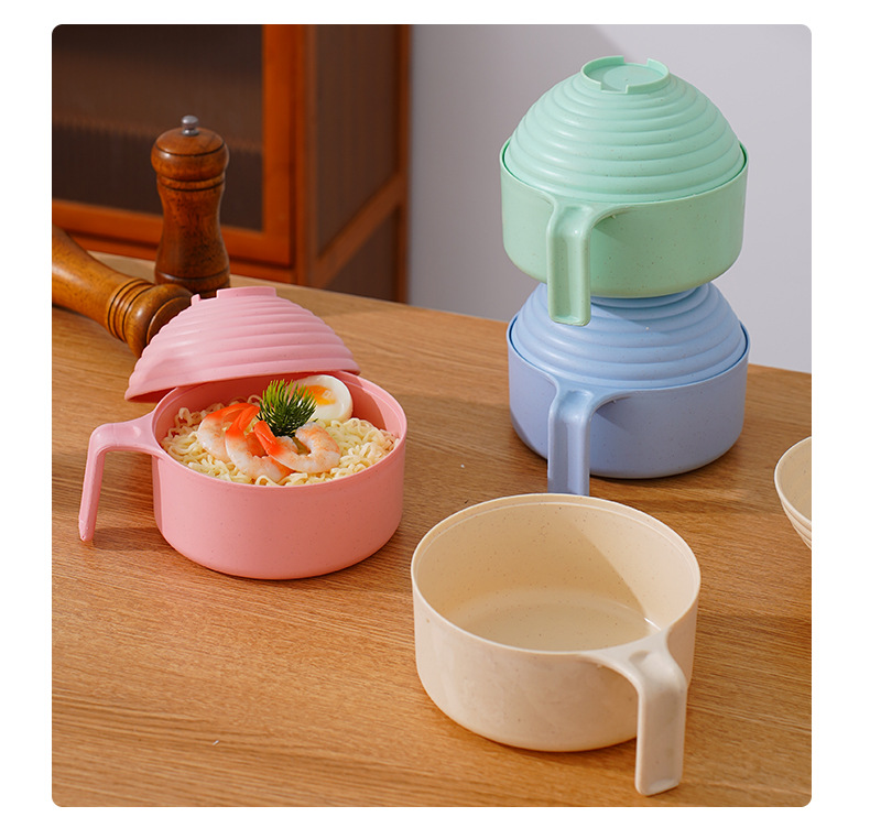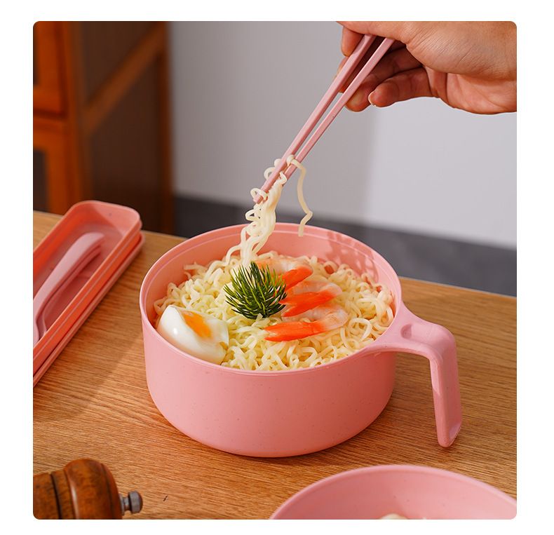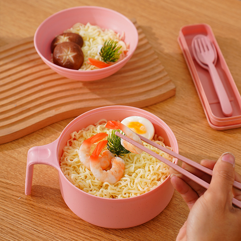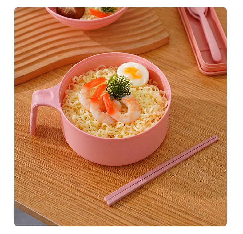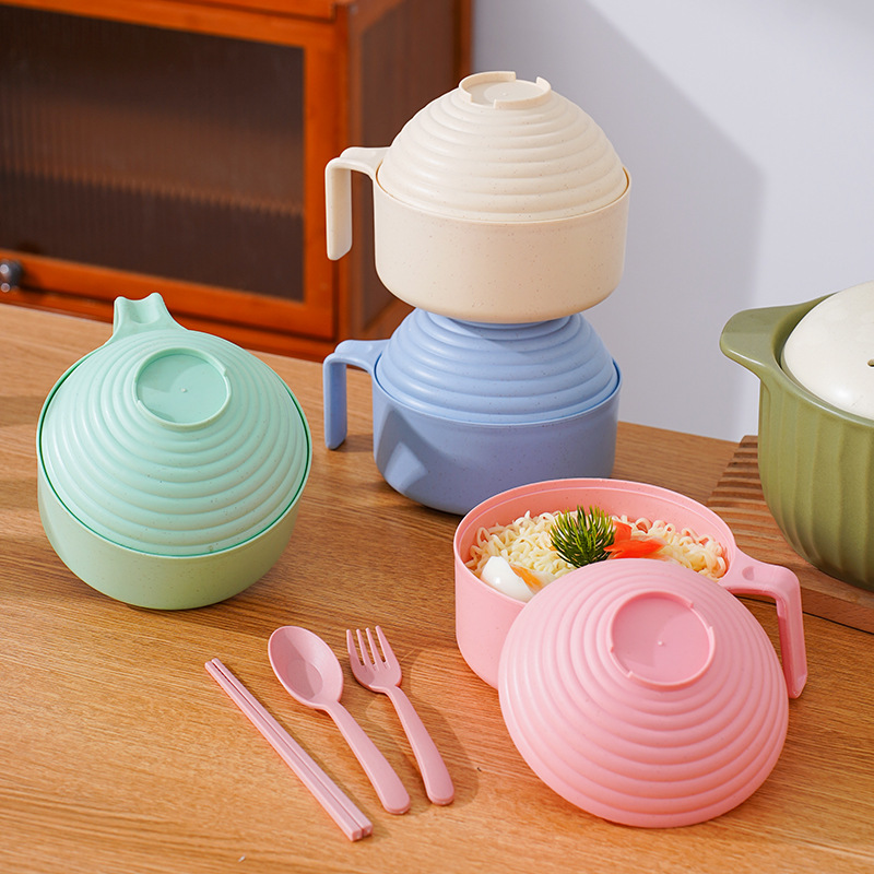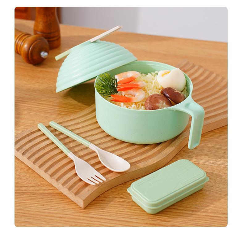 泡面碗小麦秸秆碗防摔便携学生宿舍带盖方便面碗餐具碗勺叉筷套装