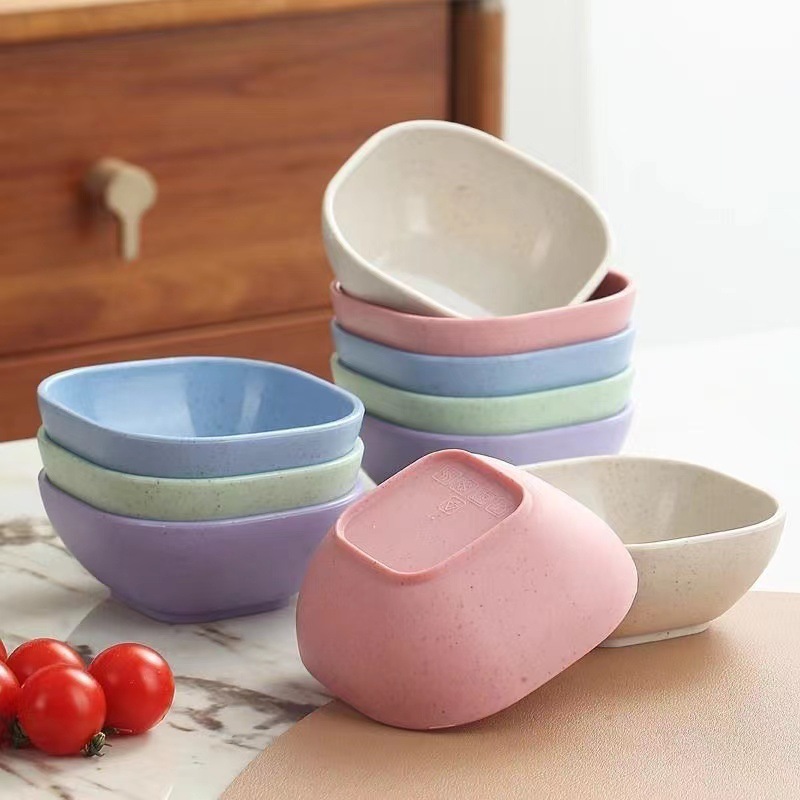 小麦秸秆方形碗沙拉碗家用塑料防摔汤碗米饭小碗蘸料碟调味料碟子