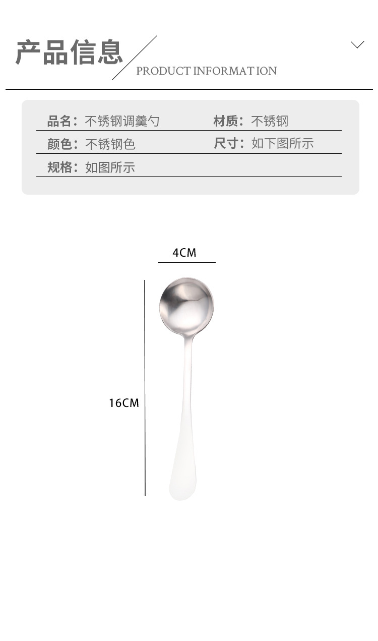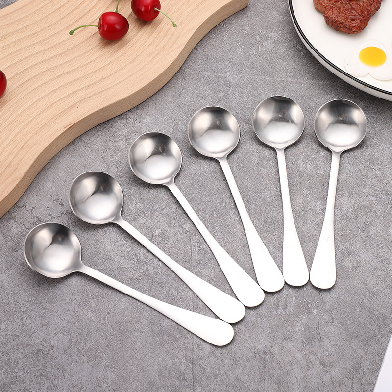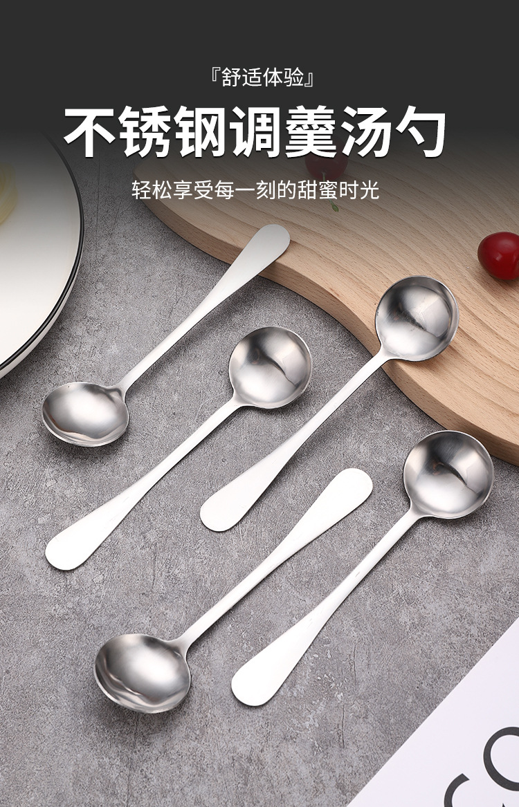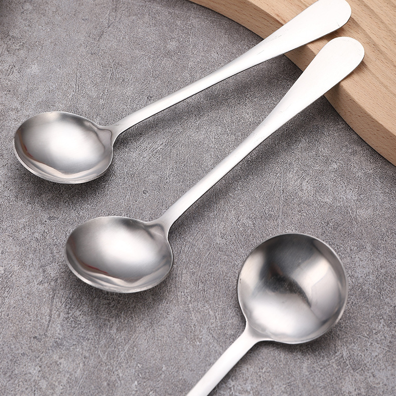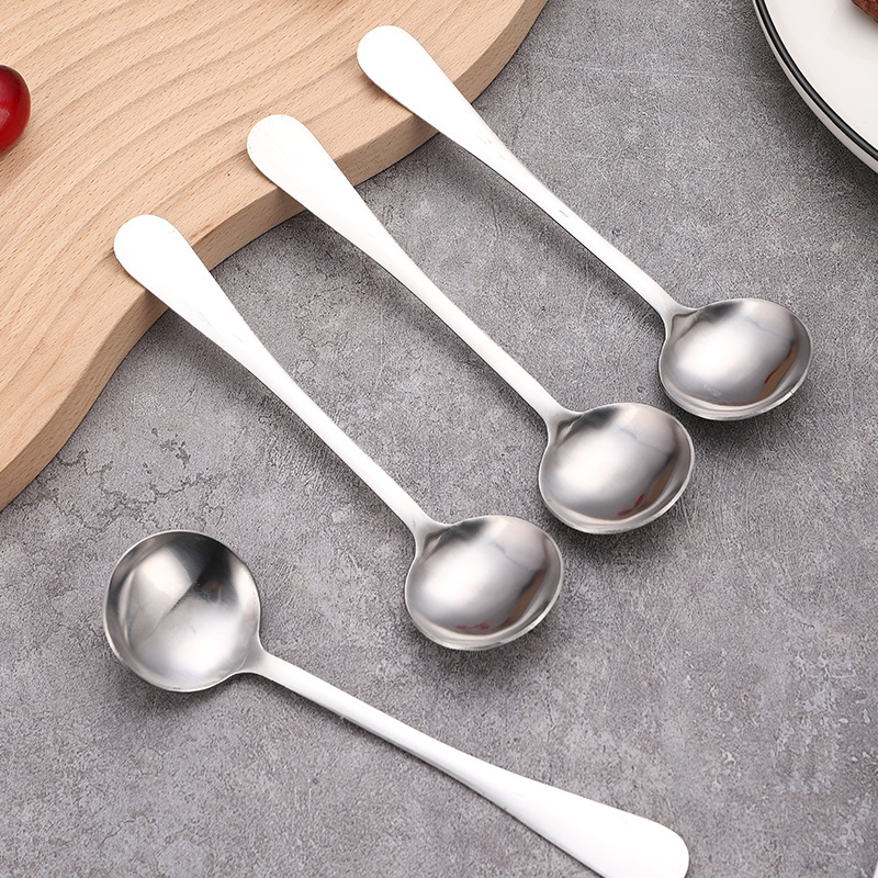 不锈钢汤匙3号小圆勺儿童甜品勺子家用吃饭调羹元宝平底汤勺批发1