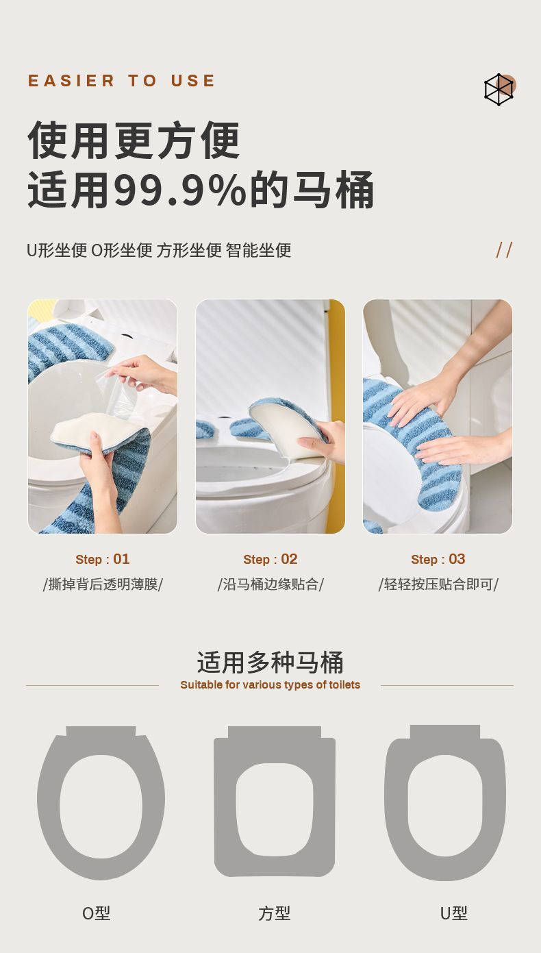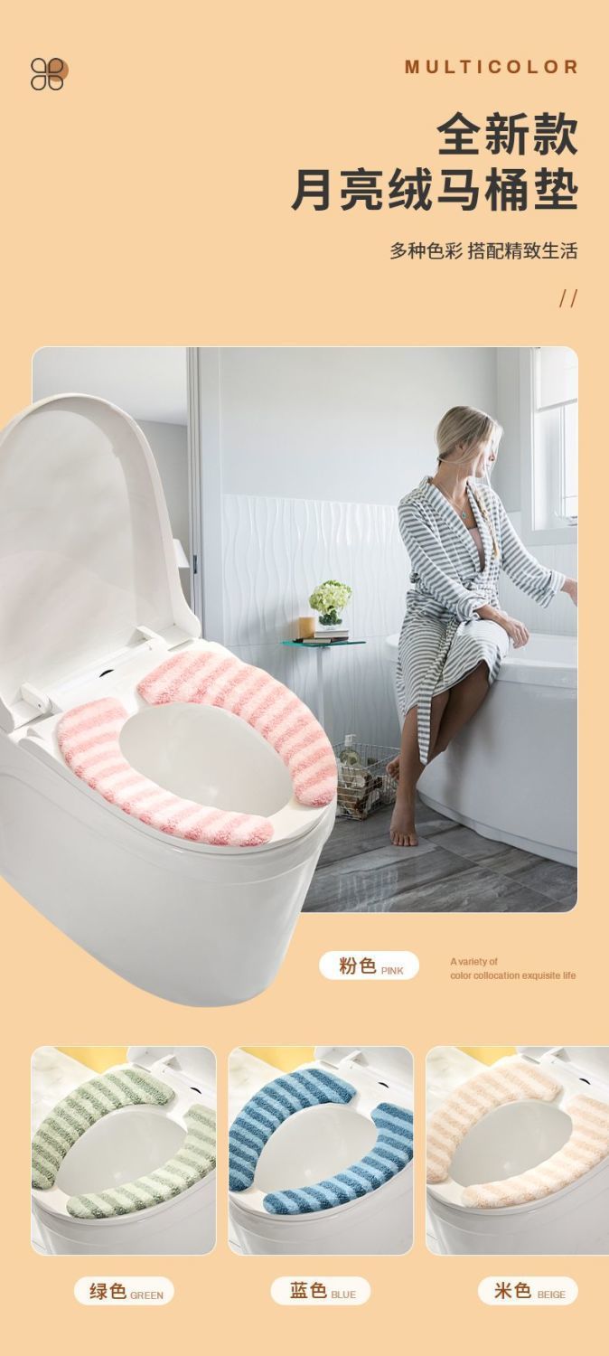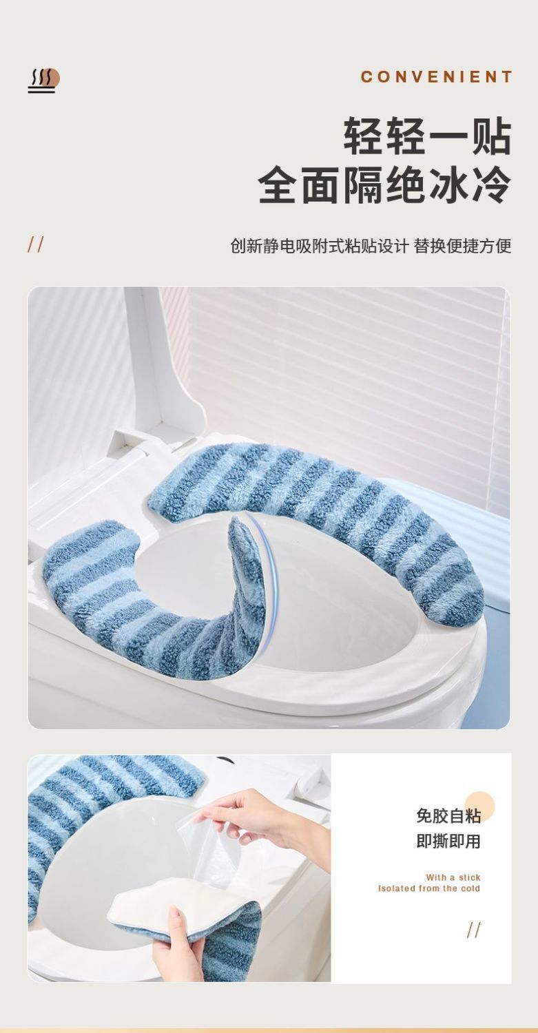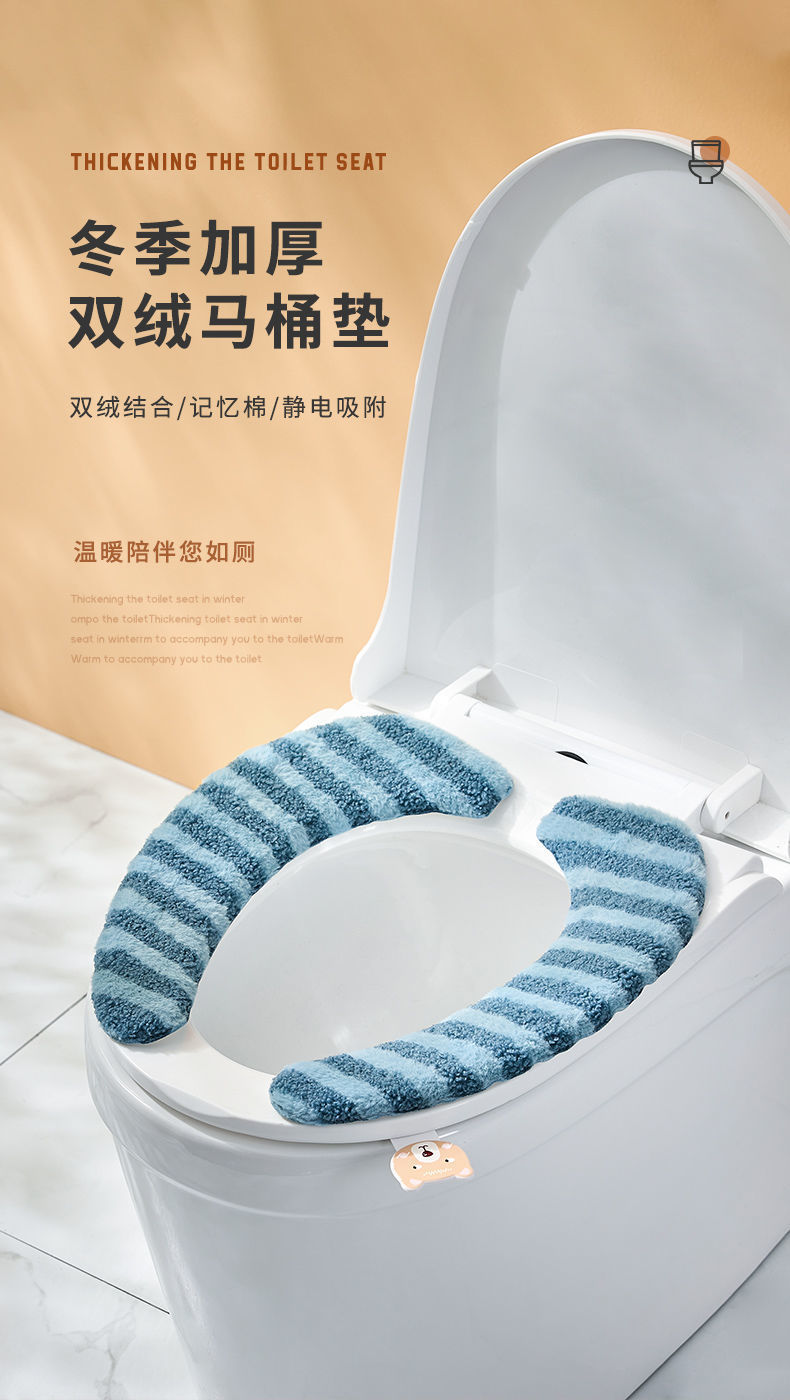 马桶垫 粘贴式家用秋冬季马桶坐垫贴轻奢洗款加厚条纹坐便垫子