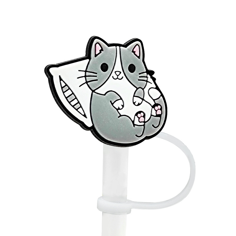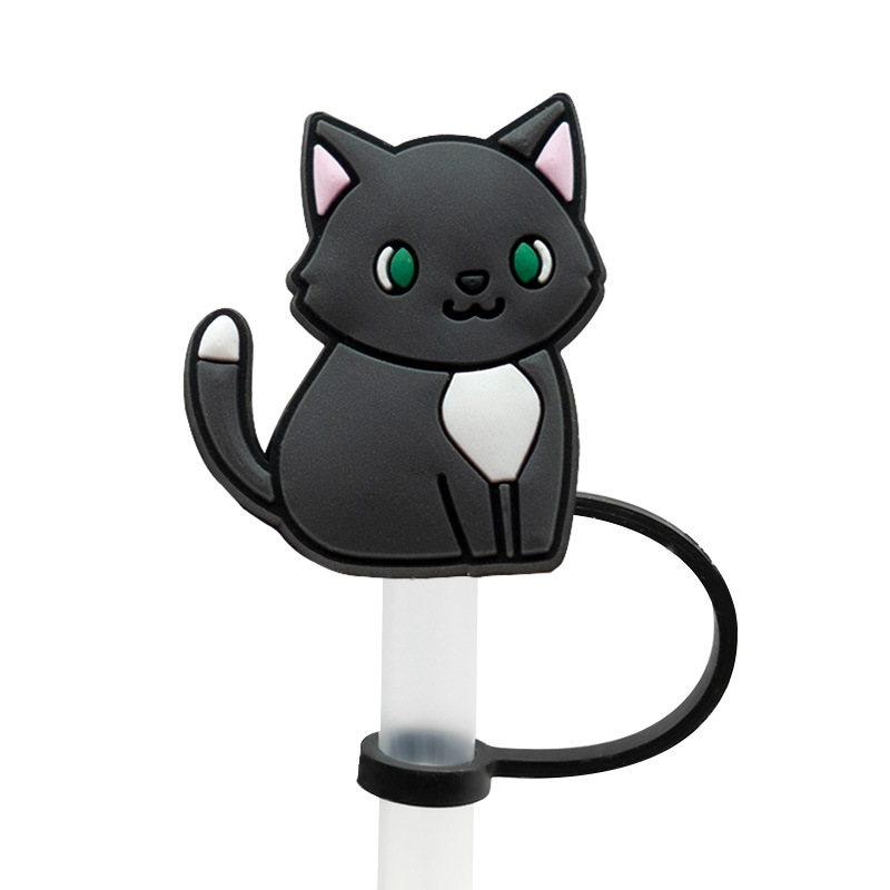 新款可爱猫咪吸管帽吸管套硅胶防尘塞派对吸管装饰夹卡通动物跨境