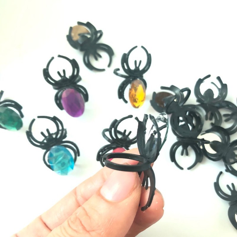 宝石蜘蛛戒指万圣节化妆舞会道具塑料小玩具赠品儿童钻石蜘蛛戒指