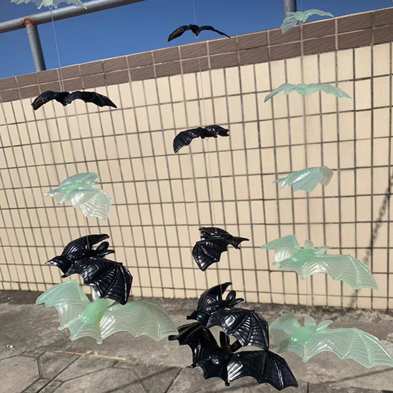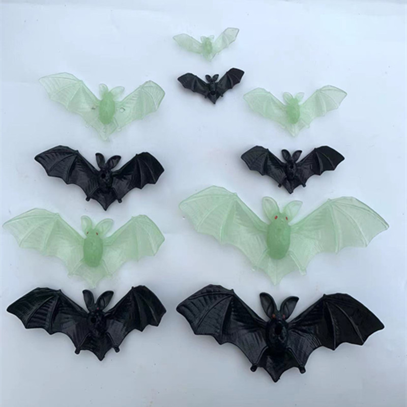 万圣节场地装饰5-15cmDIY仿真夜光黑色蝙蝠串整人塑料小玩具配件