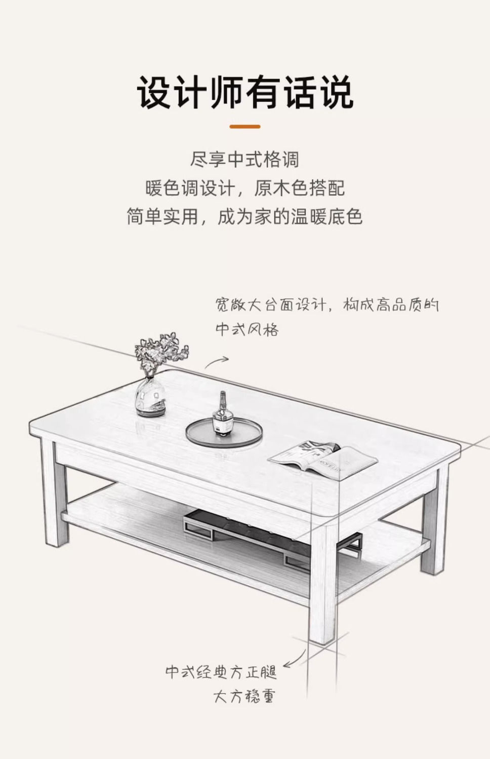 实木腿茶几桌客厅家用茶几现代简约办公室小桌子中式长方形茶桌