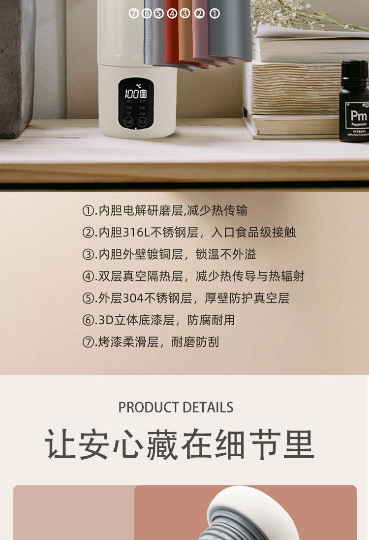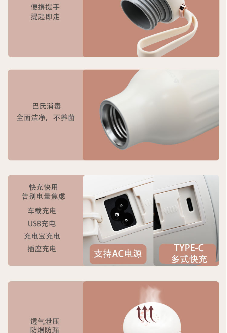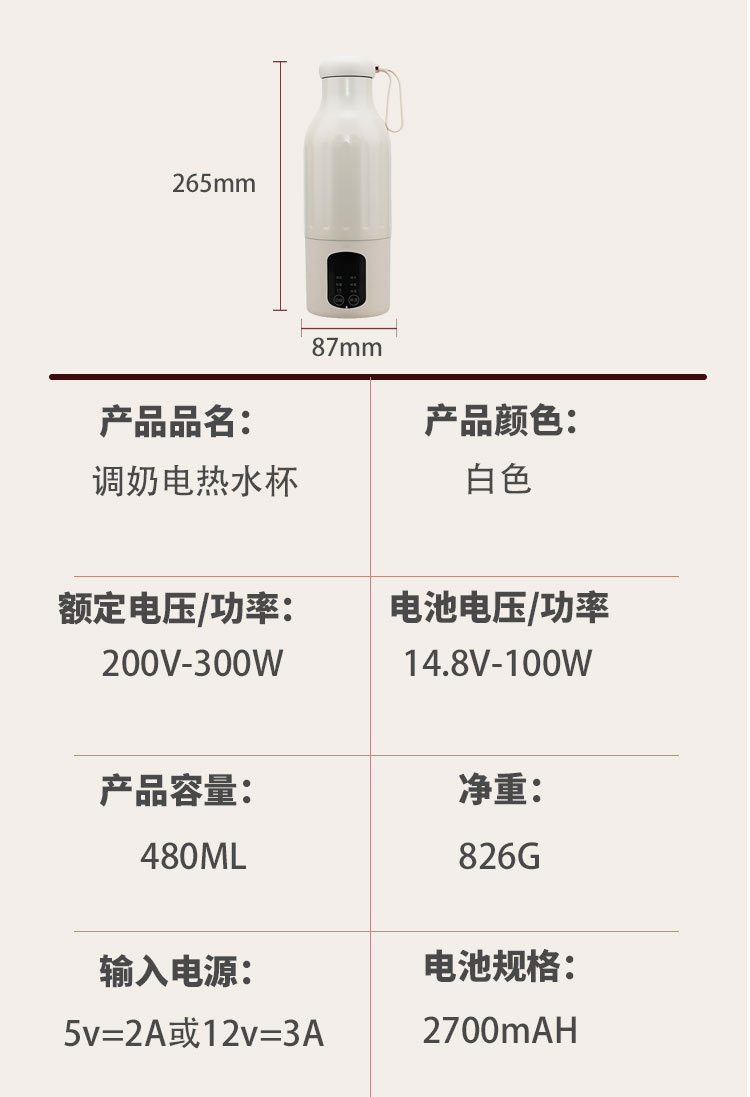 免插电电加热恒温保温杯便携烧水杯电热水杯电热恒温杯可充电款