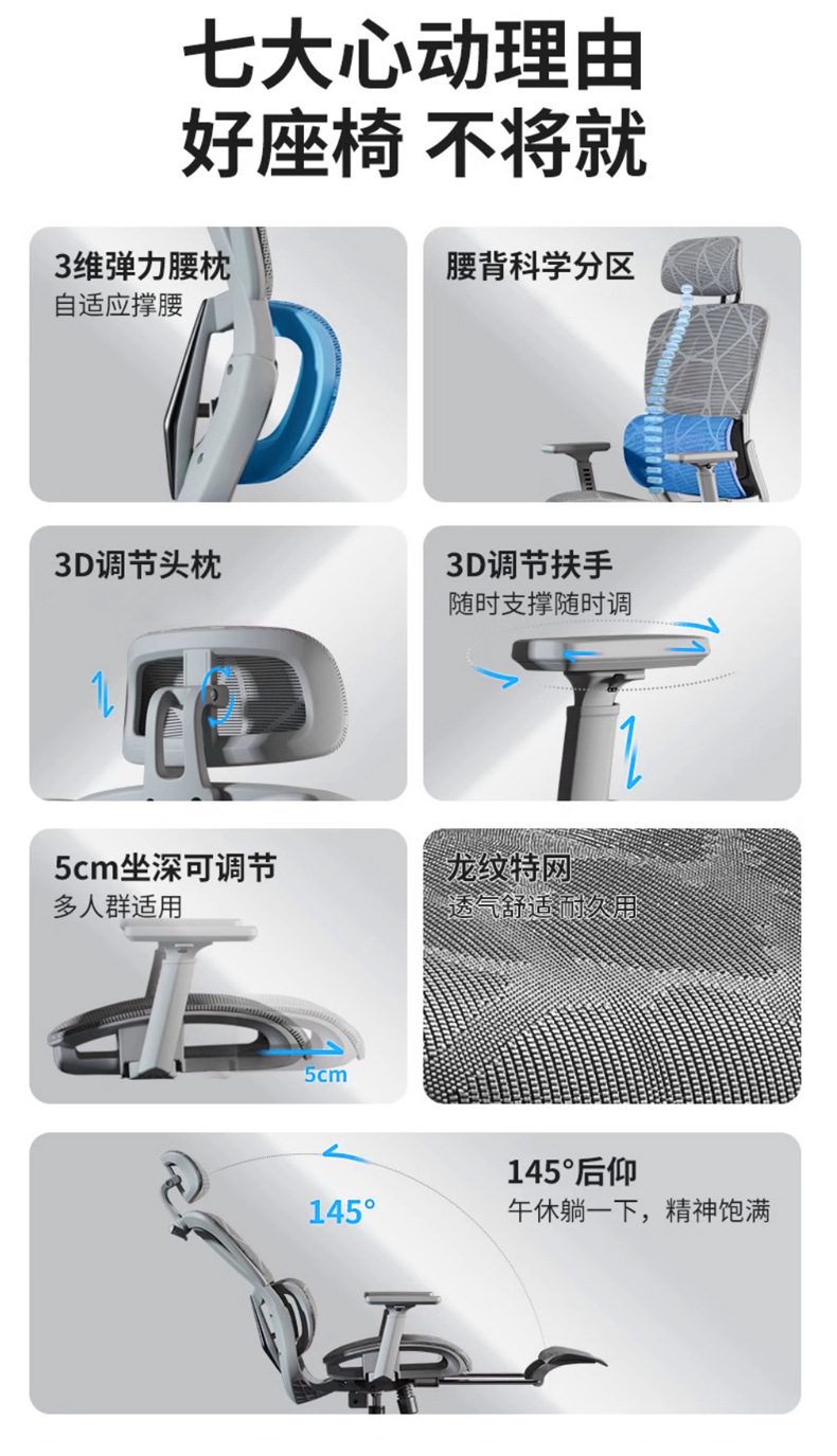定制人体工学椅追腰护腰家用办公椅可躺久坐不累电脑椅子电竞椅