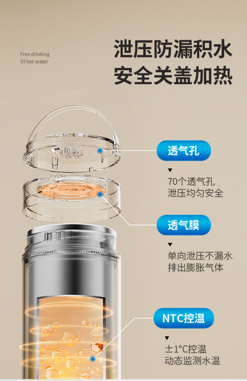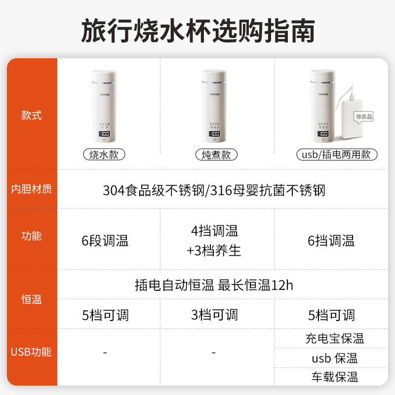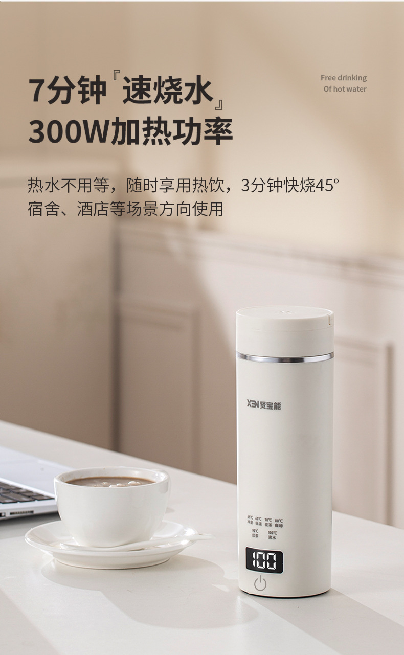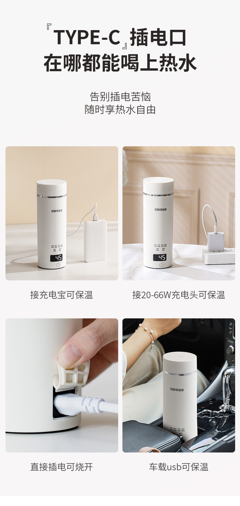 贤宝能电可调温热水杯旅行便携式烧水壶宿舍迷你无线USB保温恒温