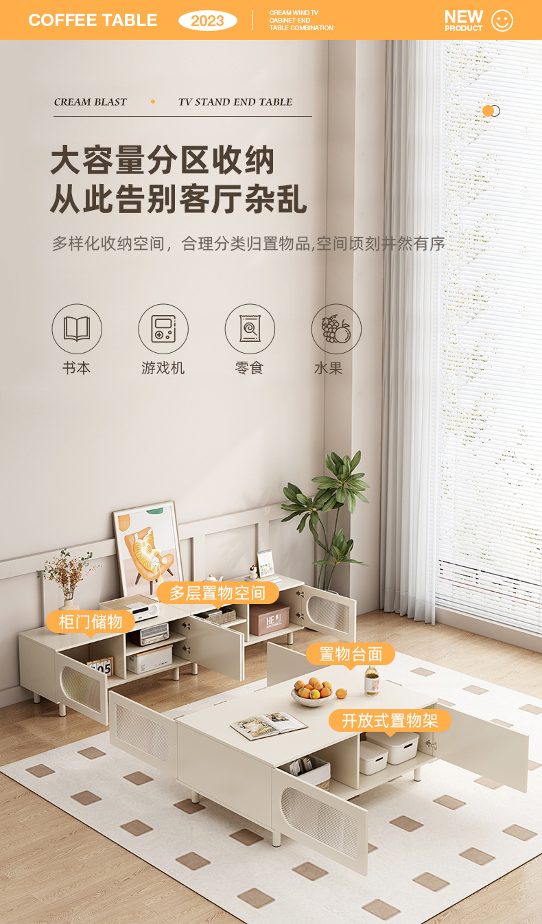 电视柜客厅家用现代简约小户型奶油风落地电视机柜2025年新款地柜