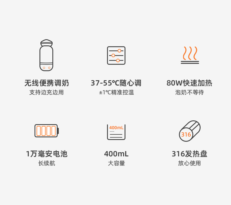 无线恒温杯便携式保温壶水杯调奶器婴儿冲奶泡奶壶充电电热水杯