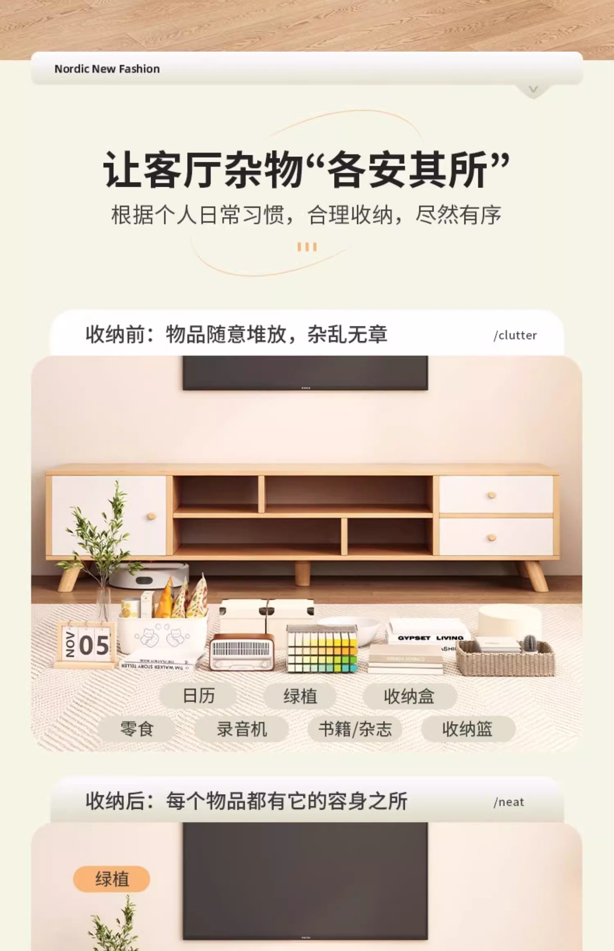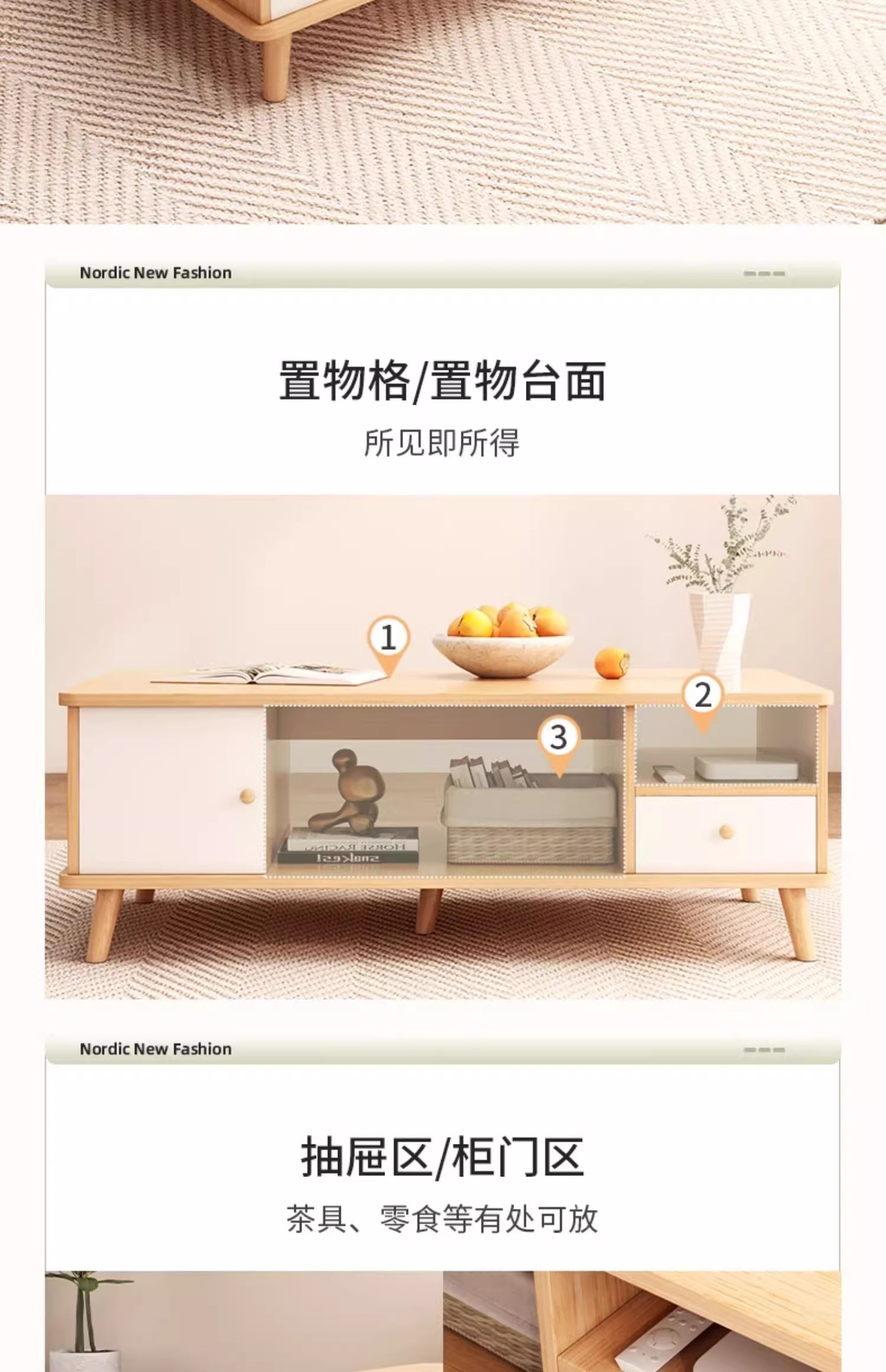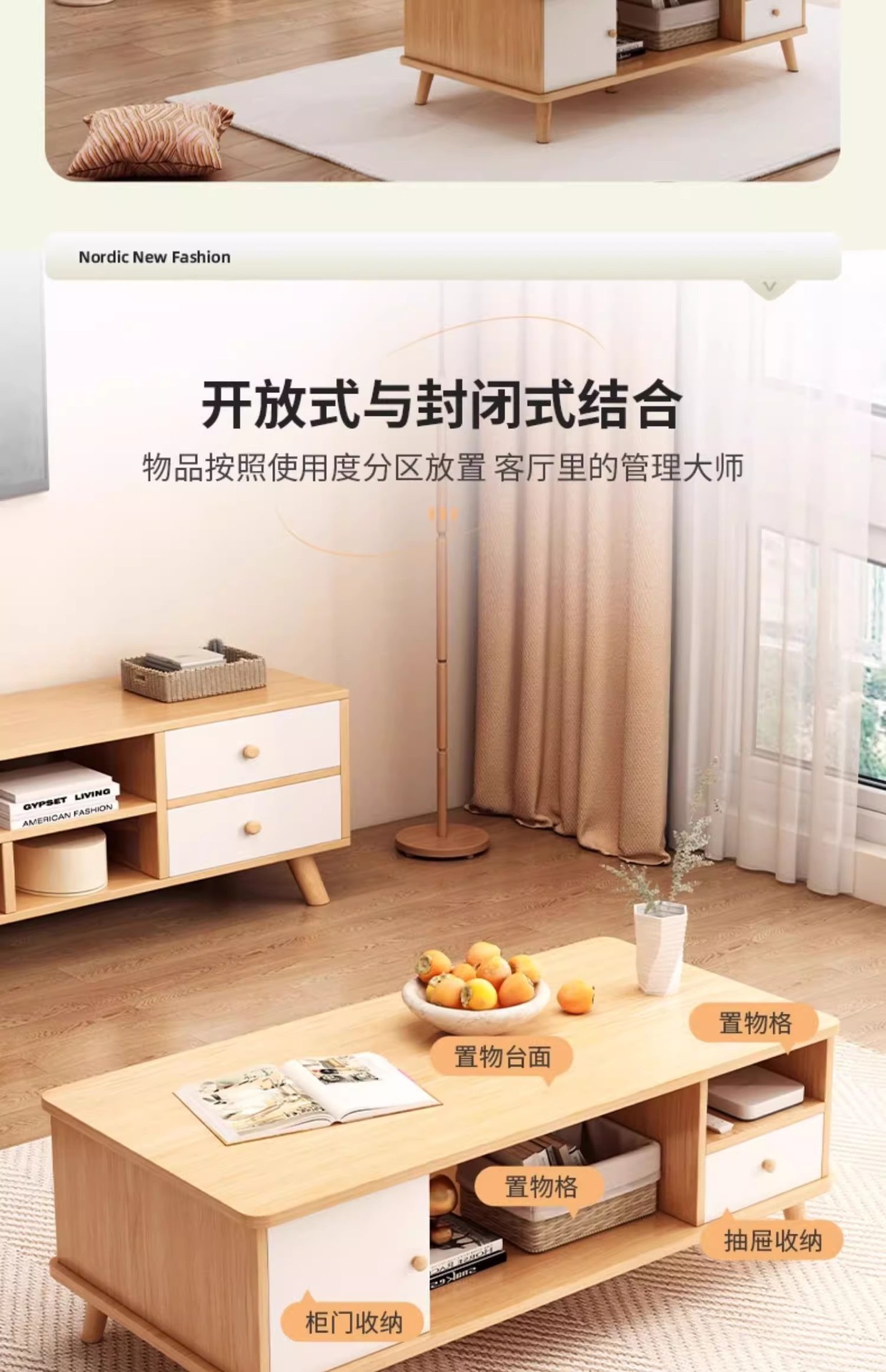 电视柜客厅家用出租屋用小户型落地收纳储物柜一体茶几电视柜组合