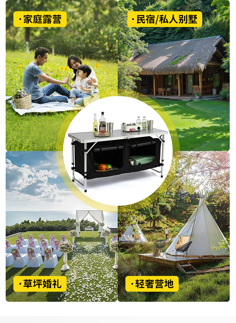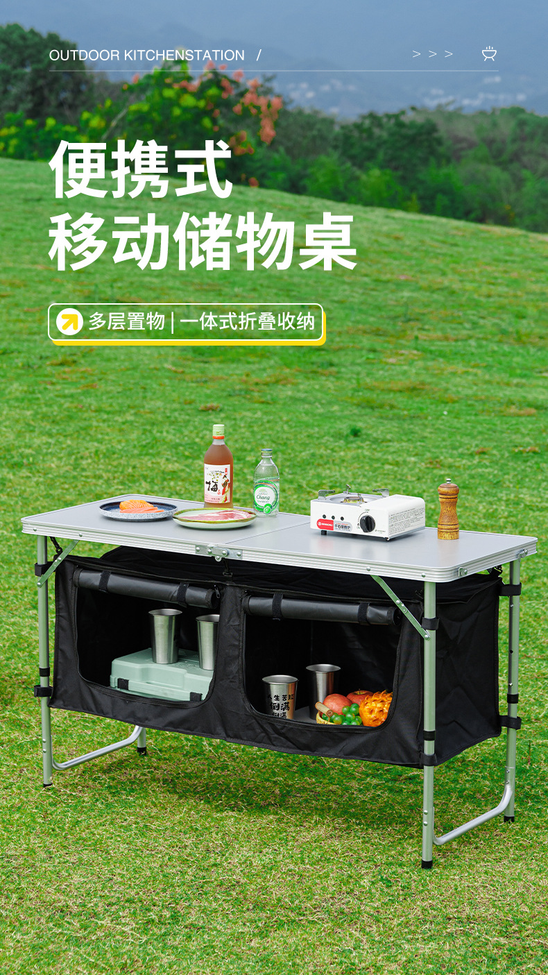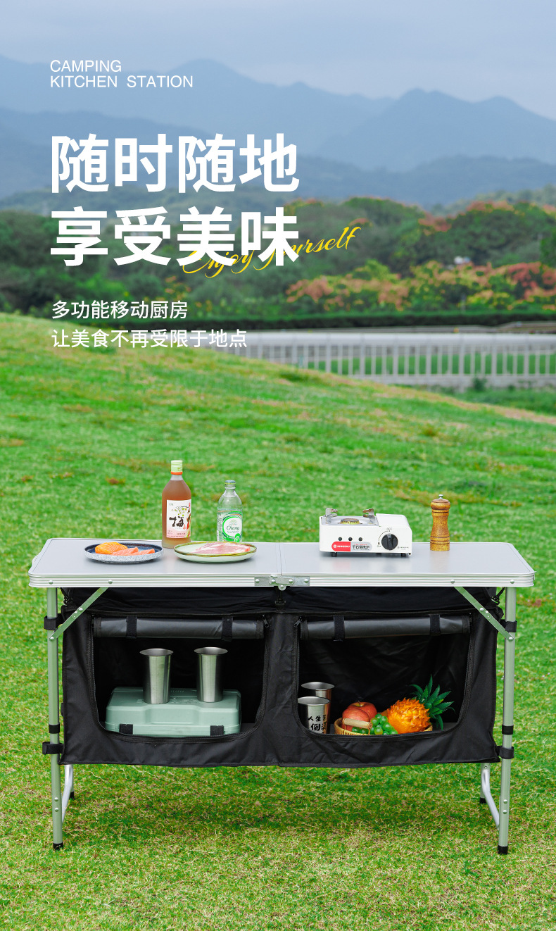 户外折叠桌便携式露营铝合金多功能igt野餐桌轻便移动厨房折叠桌