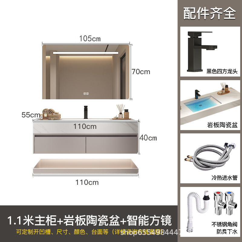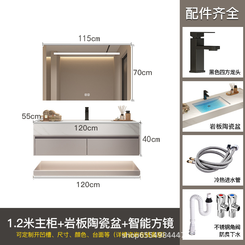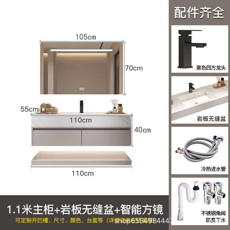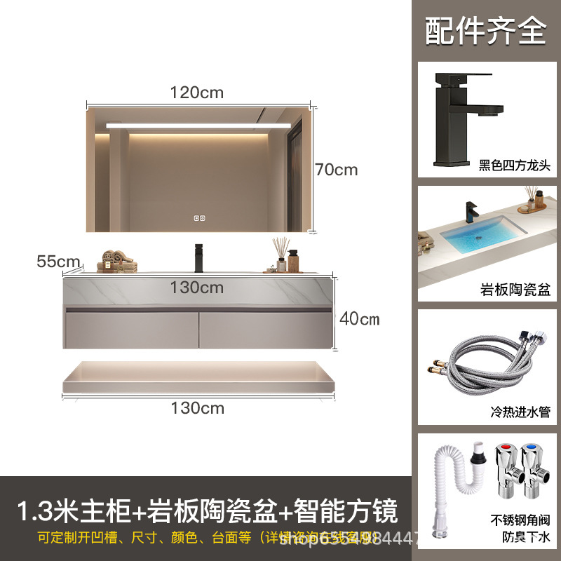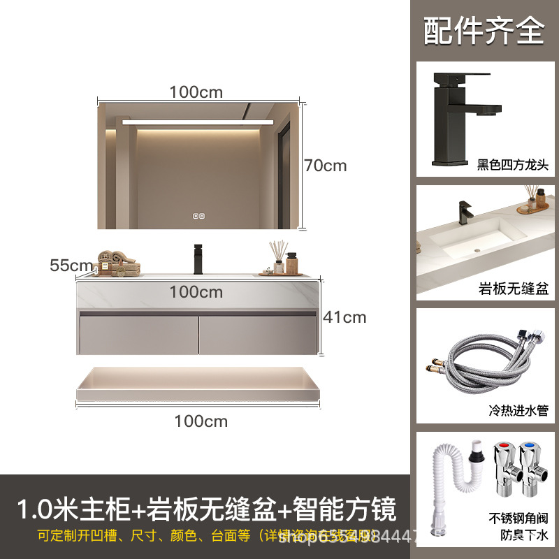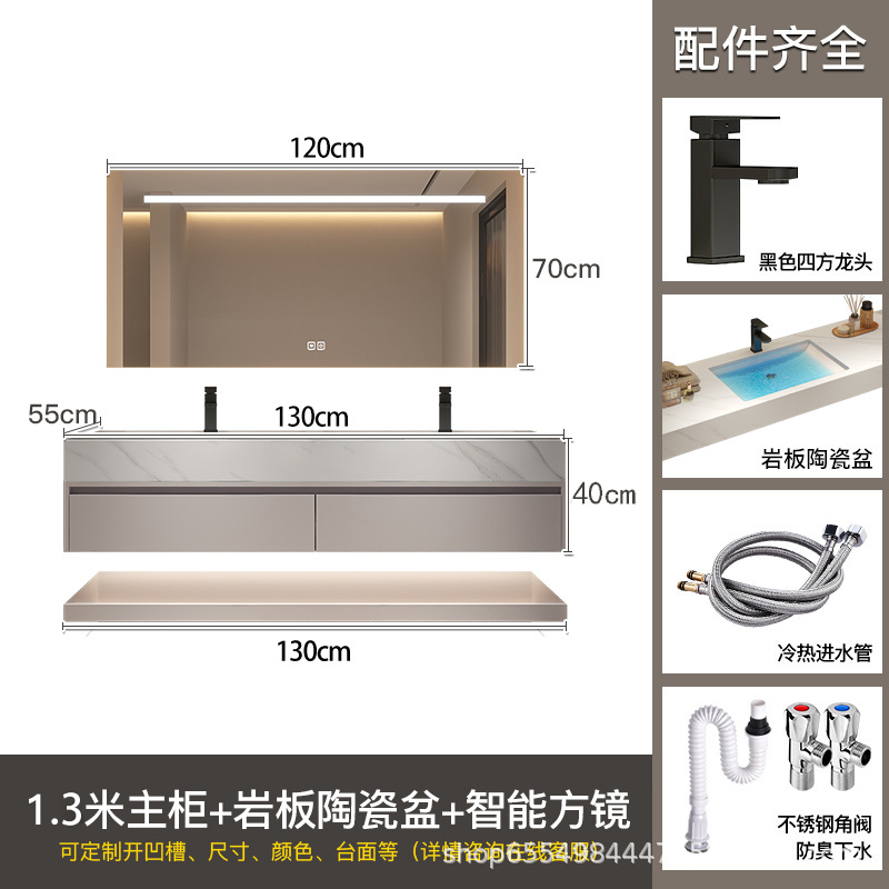 奶油风轻奢双盆岩板浴室柜组合卫生间无缝一体洗漱台洗脸洗手盆柜