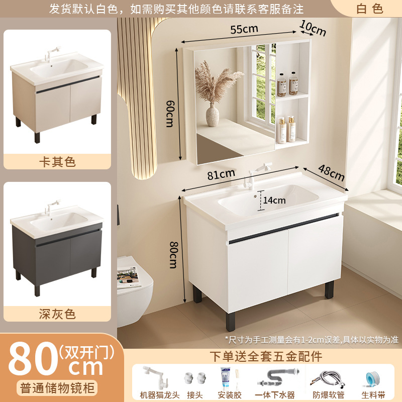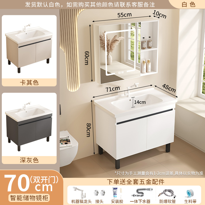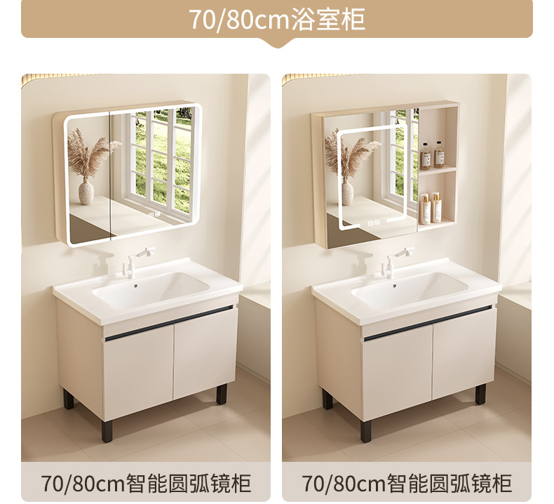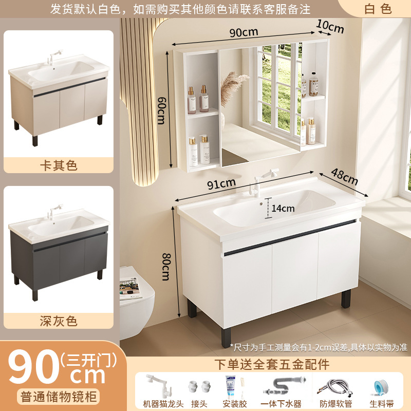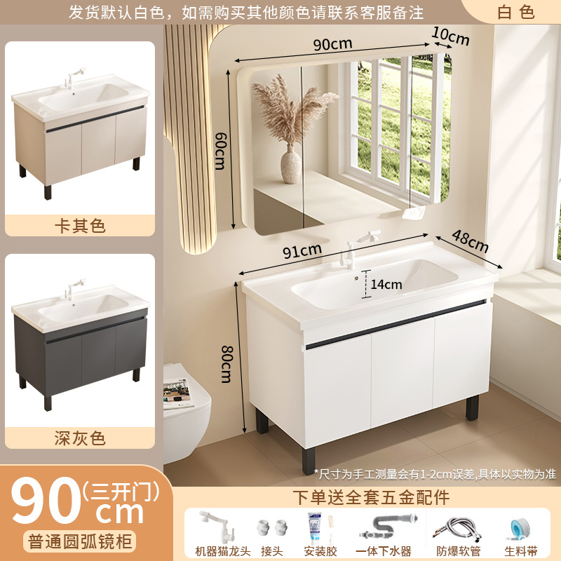 白色落地式浴室柜陶瓷一体台洗手盆柜组合卫浴洗手台卫生间洗漱台