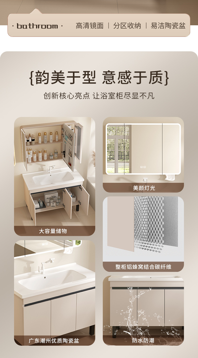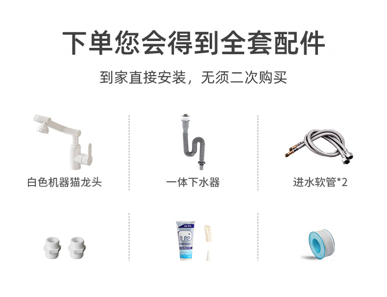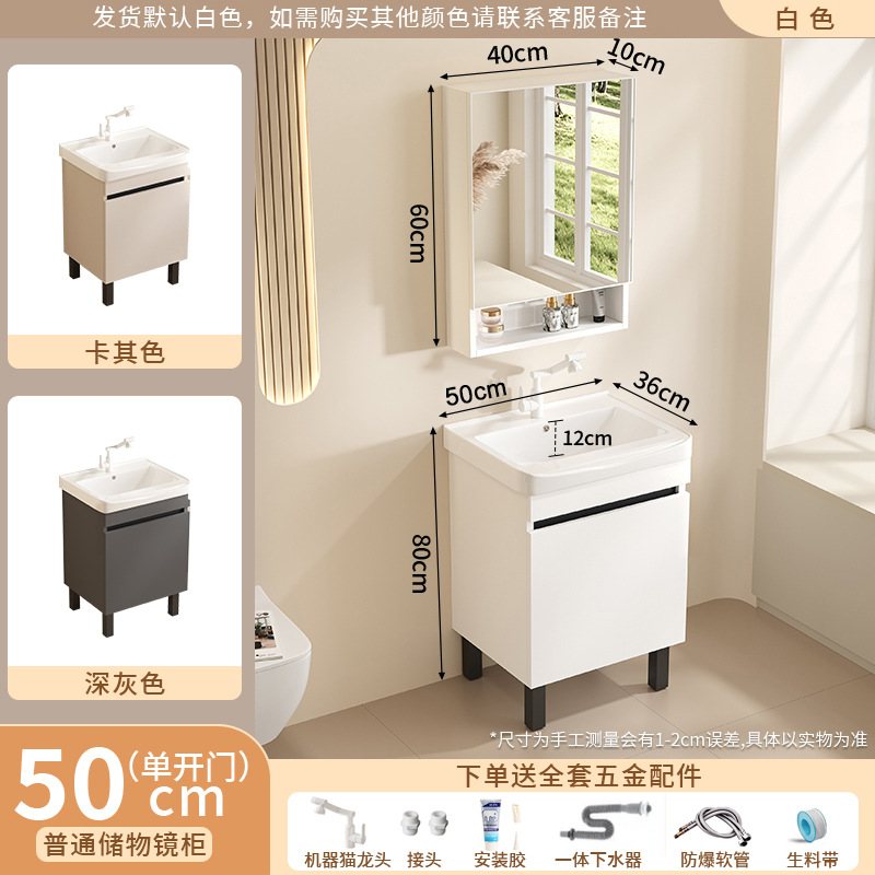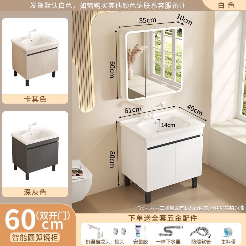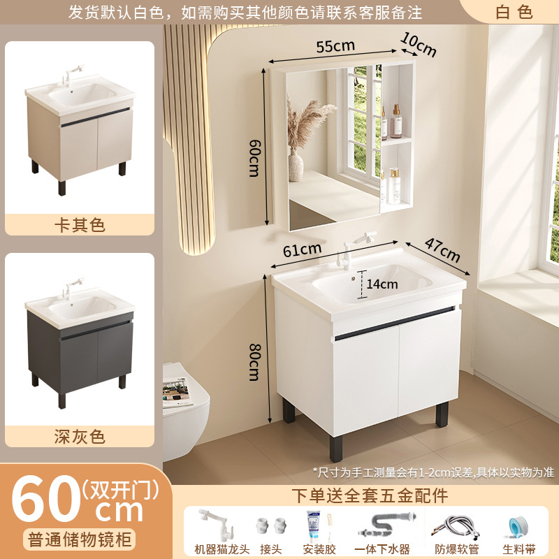 白色落地式浴室柜陶瓷一体台洗手盆柜组合卫浴洗手台卫生间洗漱台