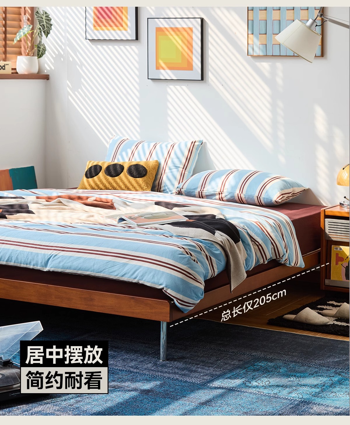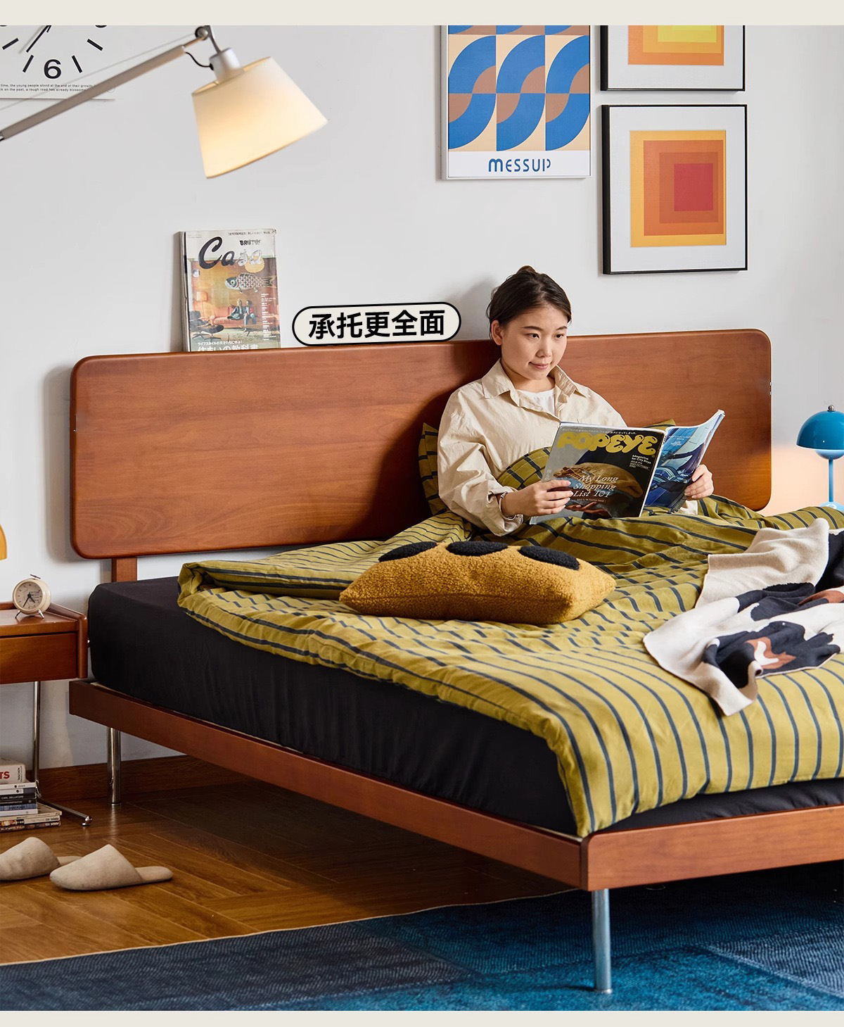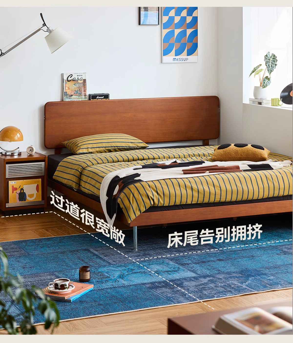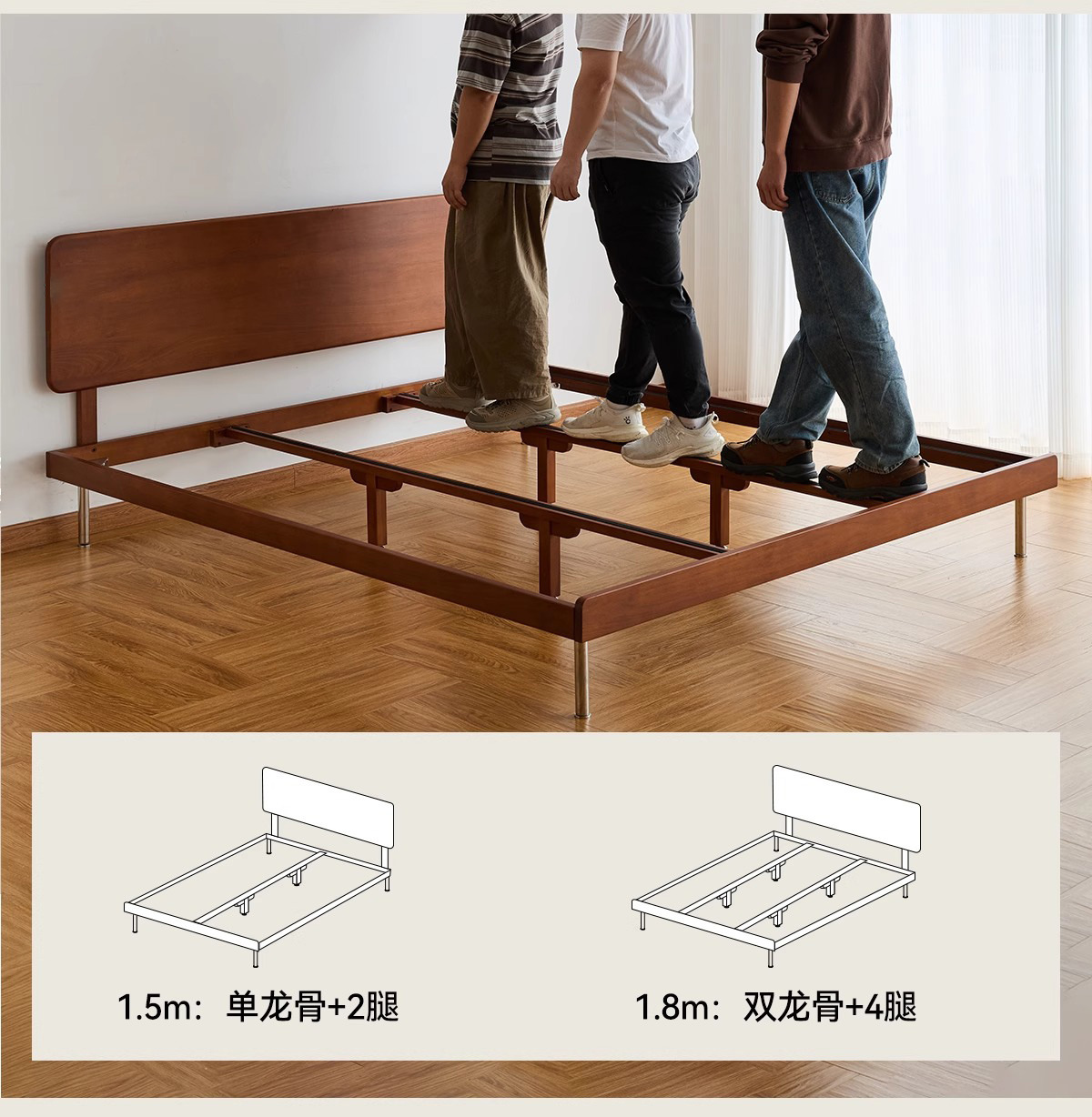 久伴中古风实木床1.8米北欧家用复古双人床1.5米小户型卧室单人床