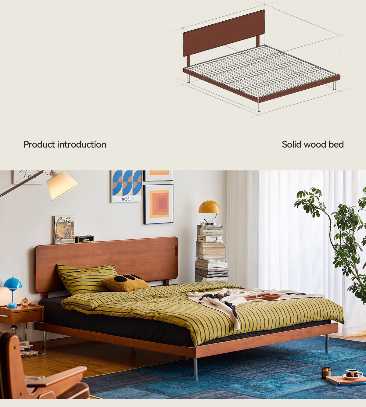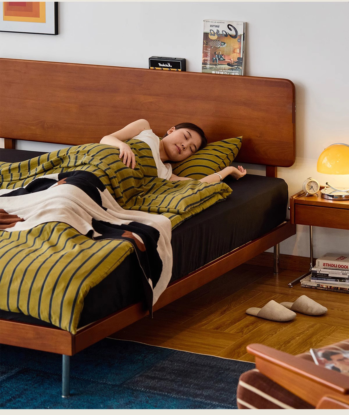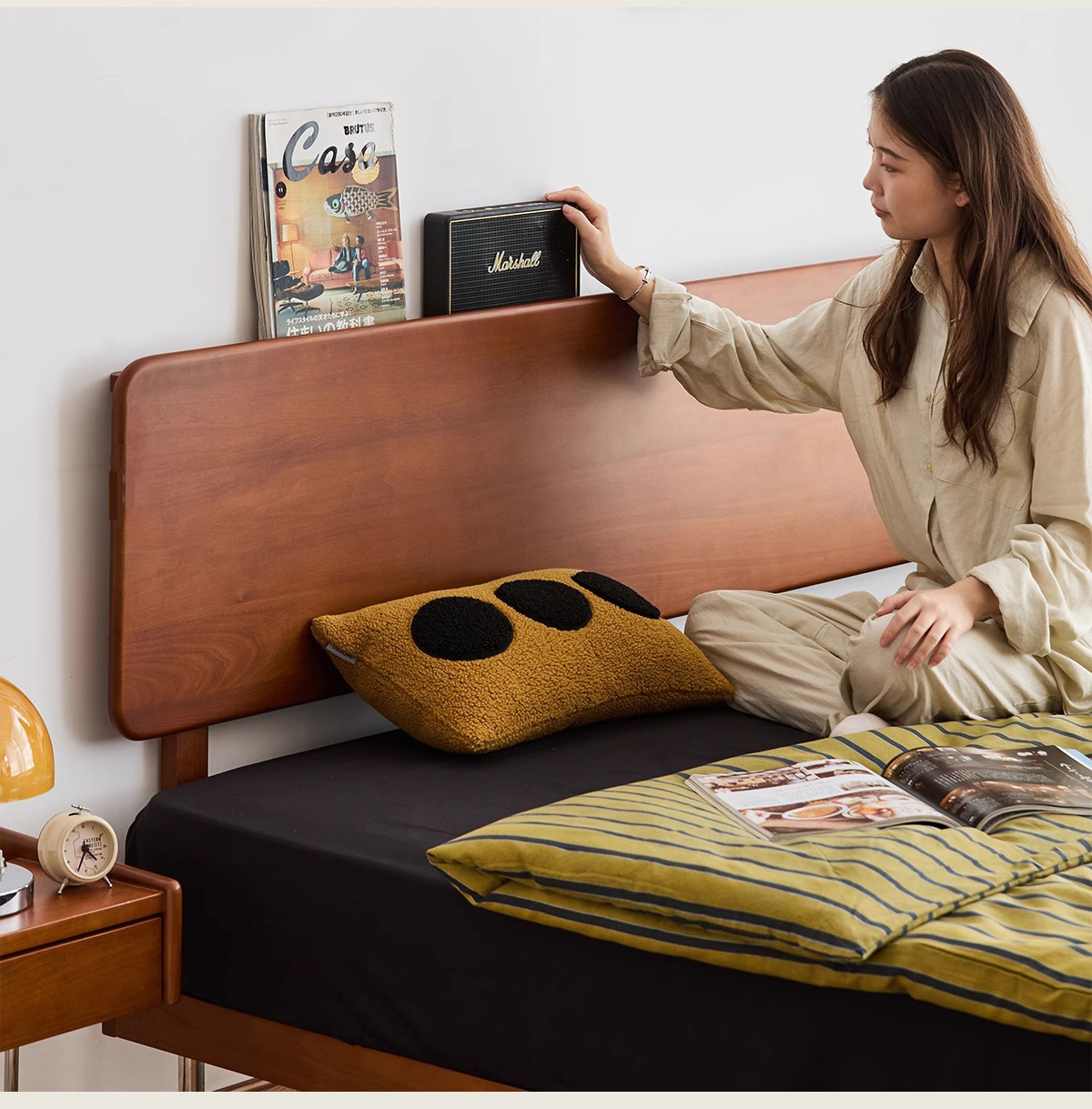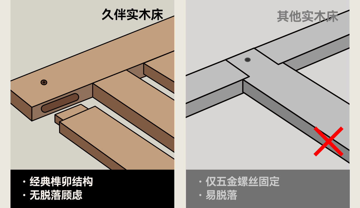 久伴中古风实木床1.8米北欧家用复古双人床1.5米小户型卧室单人床