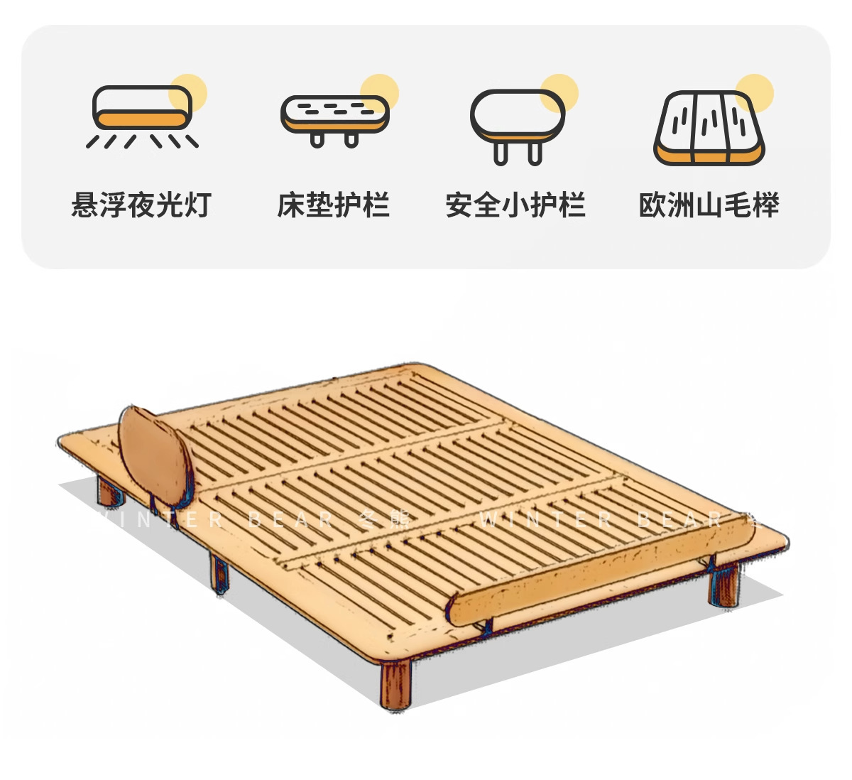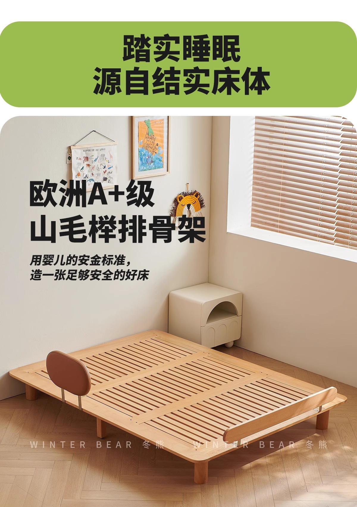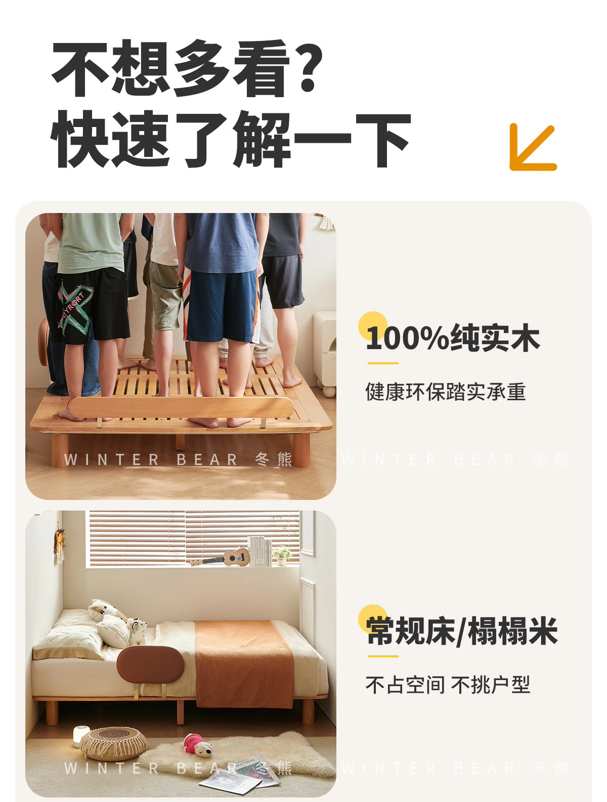桐语特男孩女孩床小户型单人床1米5简约全实木榻榻米无床头儿童床