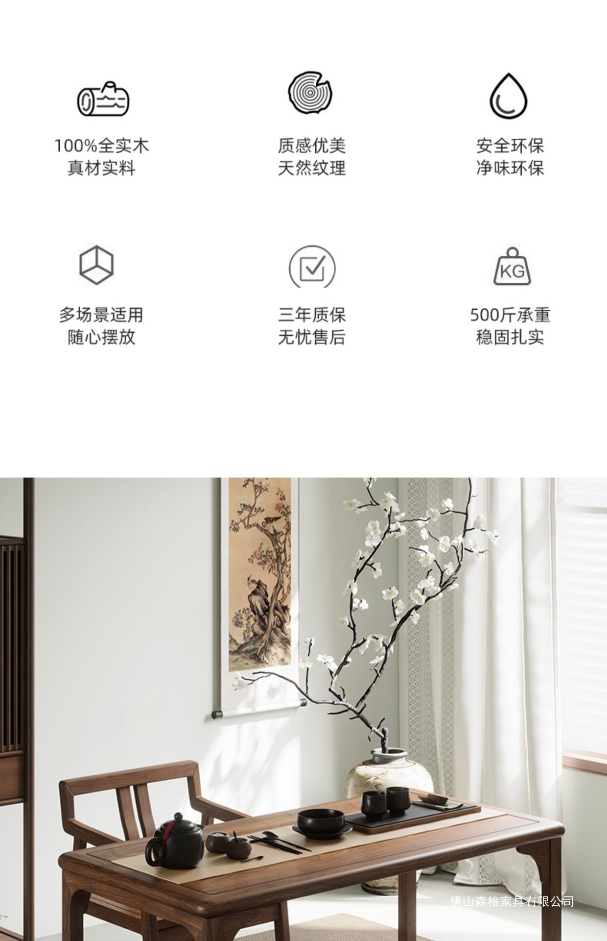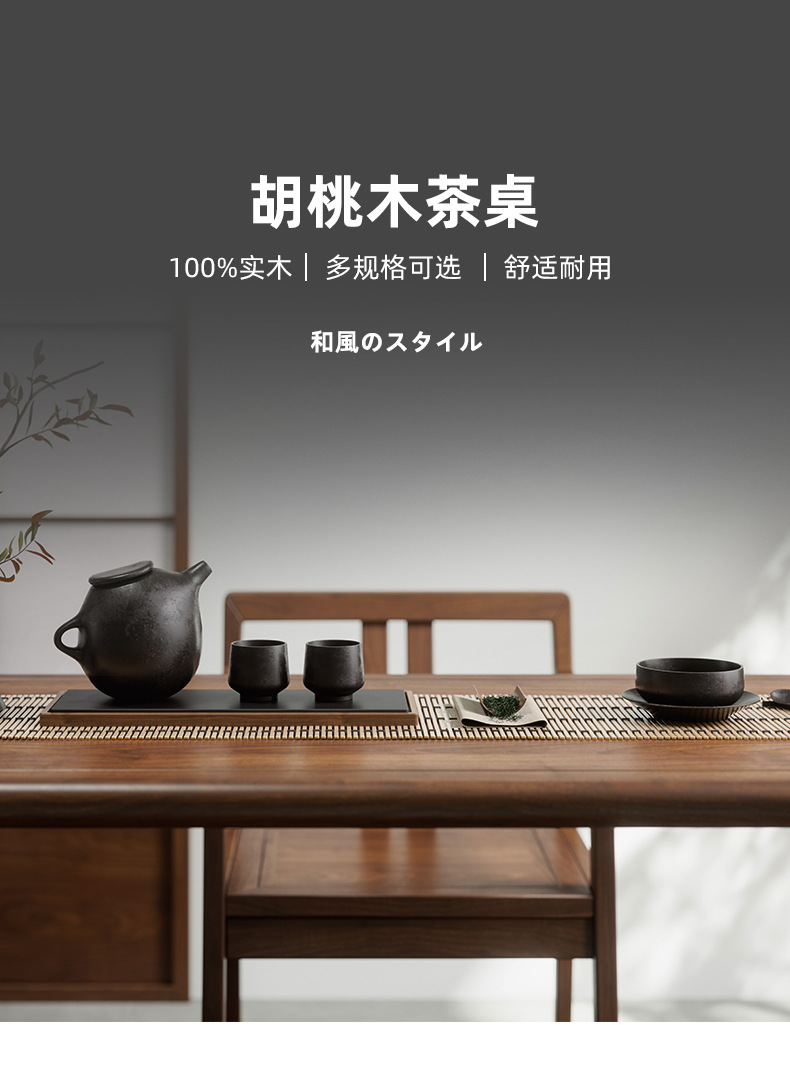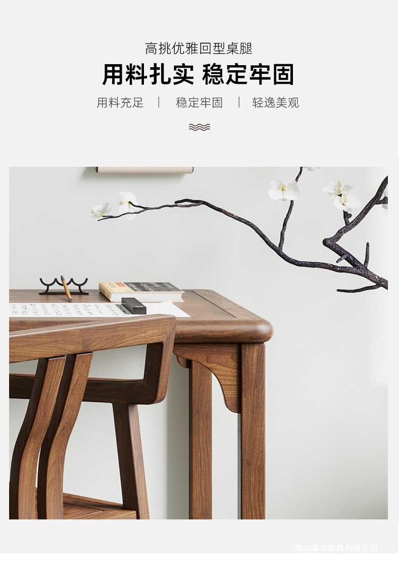 新中式胡桃木茶桌椅茶台家用阳台禅意泡茶台茶室茶艺桌现代书法桌