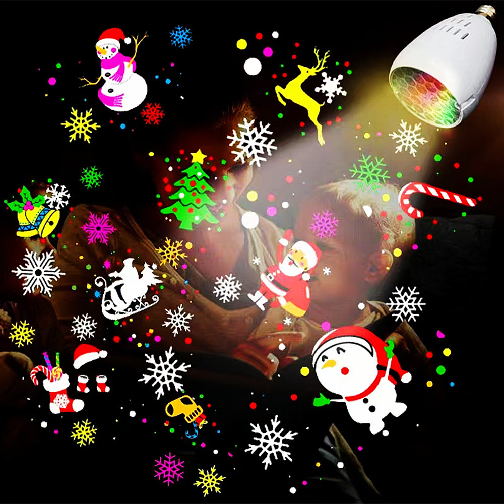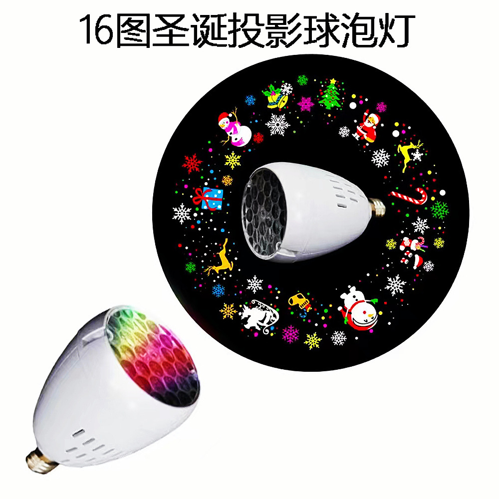 新款圣诞节16图案家用投影灯万圣节雪花旋转氛围暴风雪圣诞球泡灯