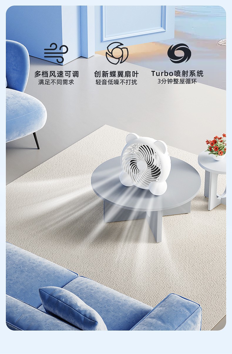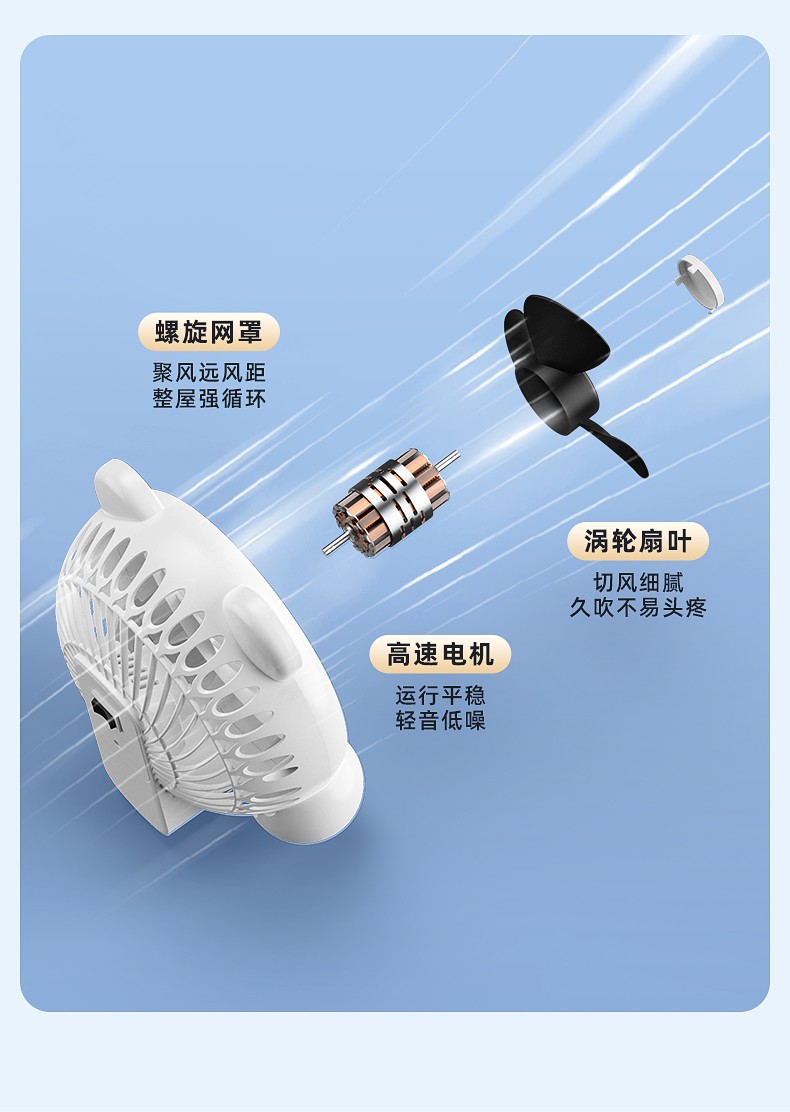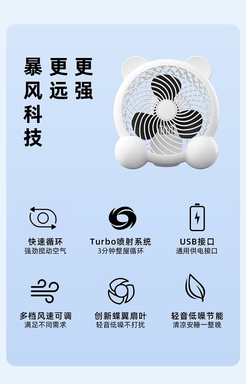 桌面风扇办公室家用静音电风扇USB 宿舍露营户外便携小型台式风扇