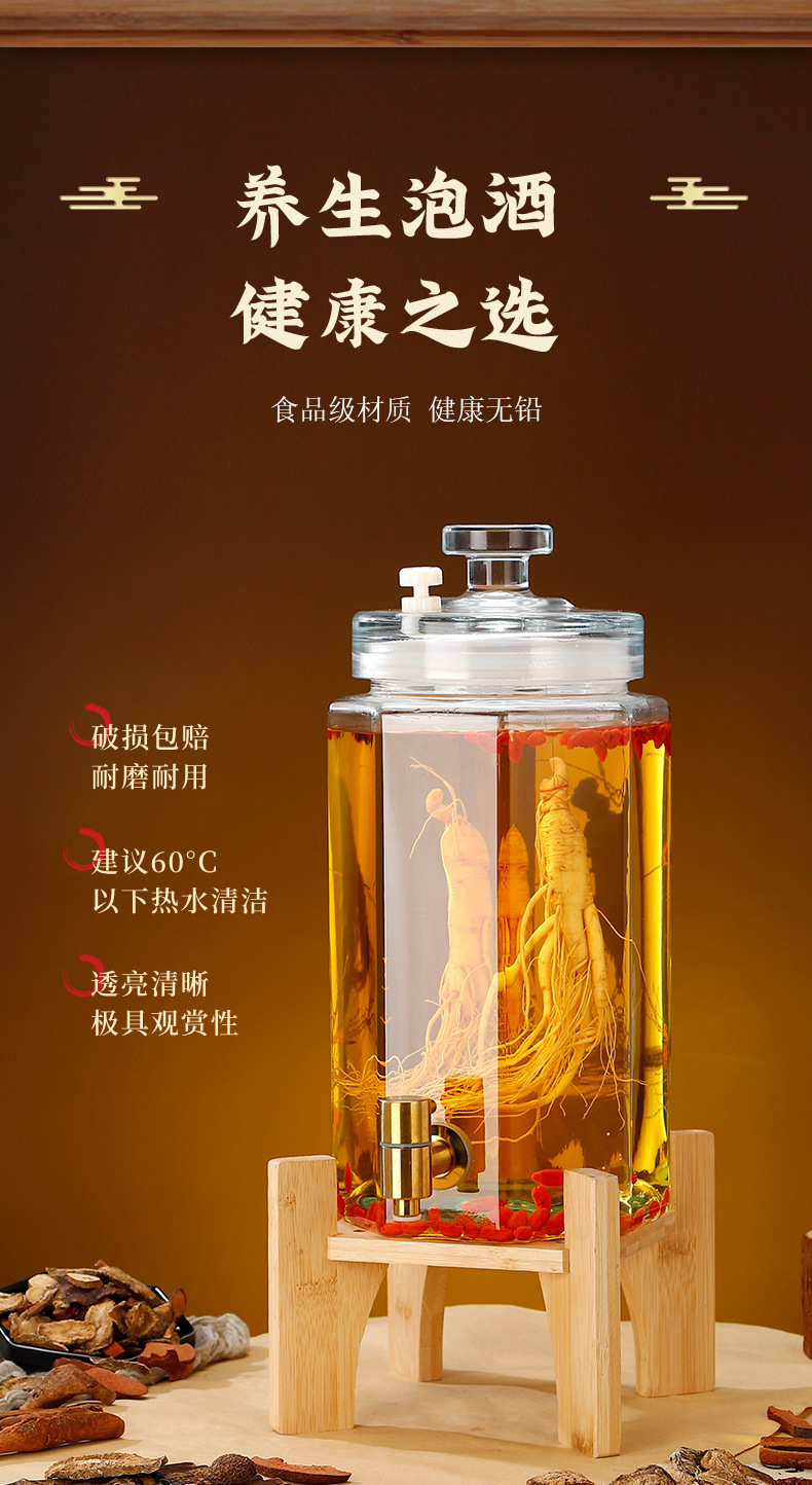 代发泡酒玻璃瓶20斤泡酒专用酒坛人参枸杞药酒瓶装酒密封罐带龙头