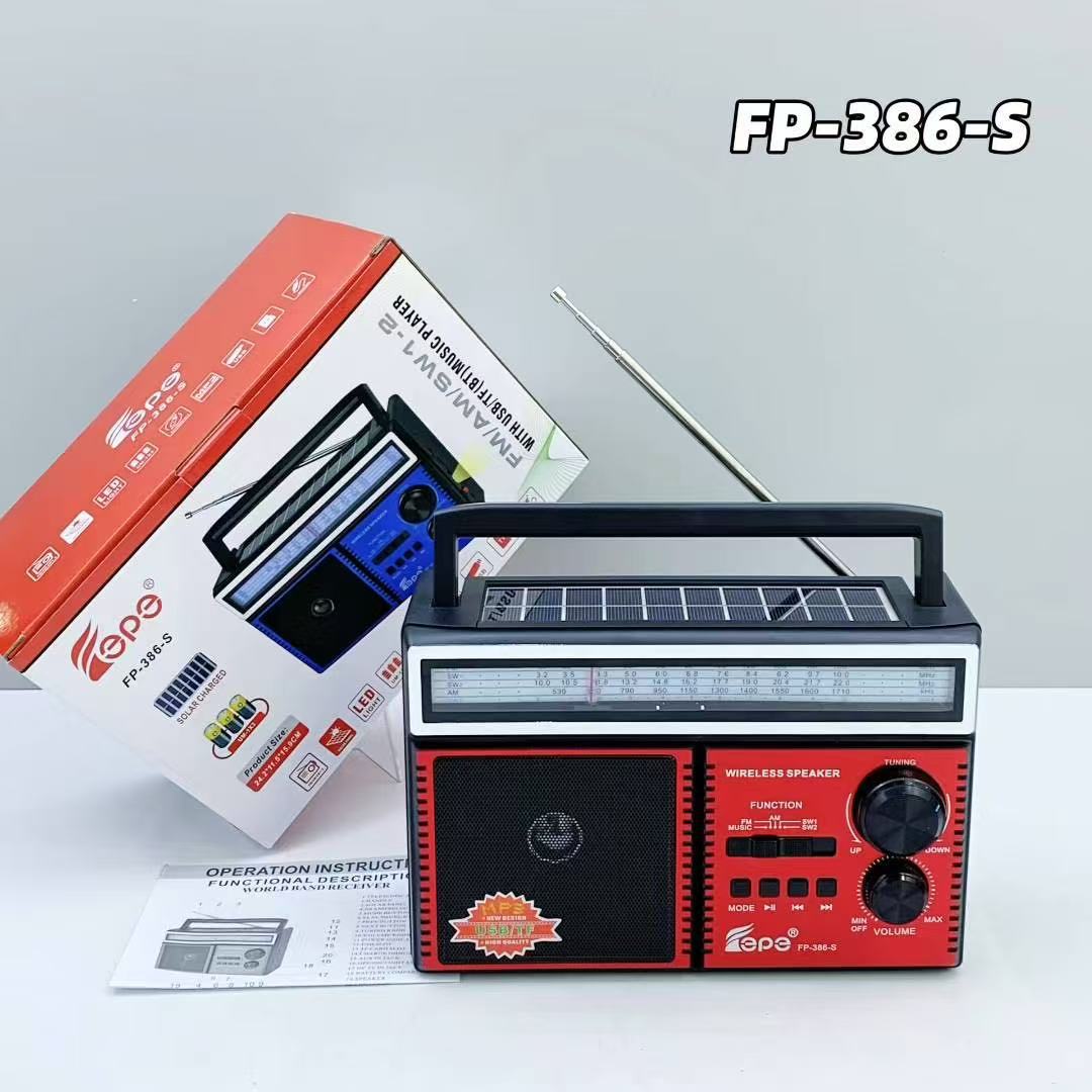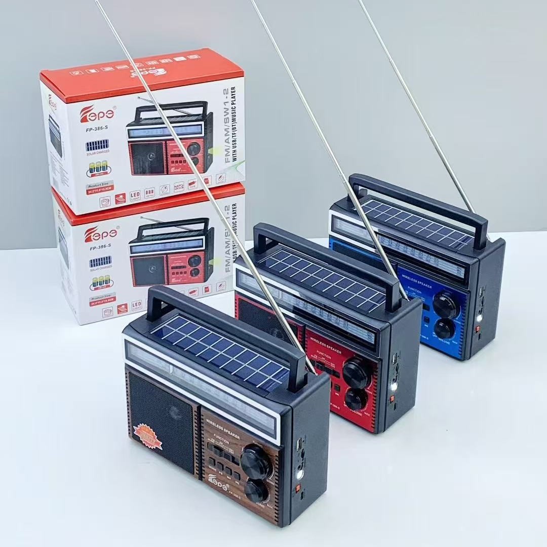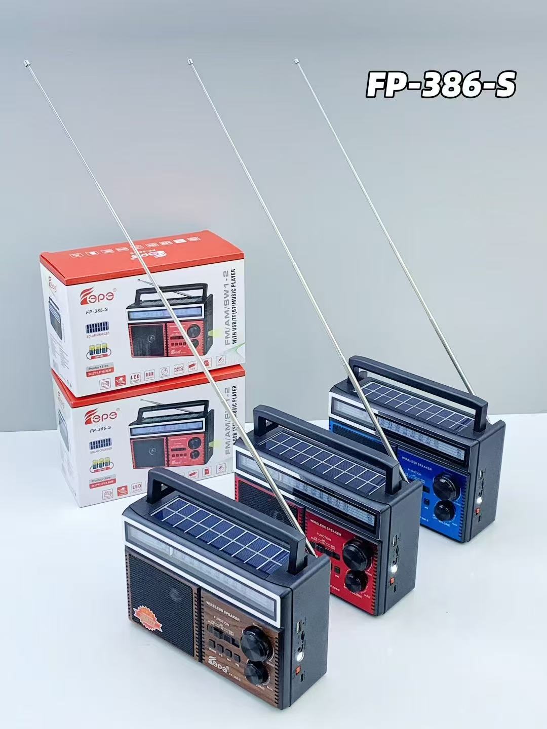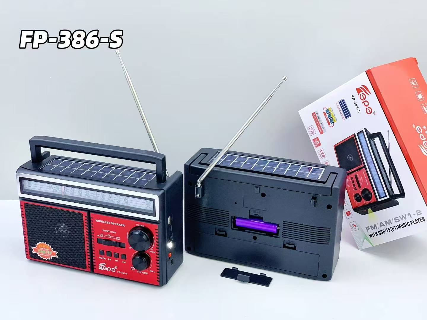 FP-386-S跨境收音机蓝牙音箱便携手提户外太阳能充电板多功能音响