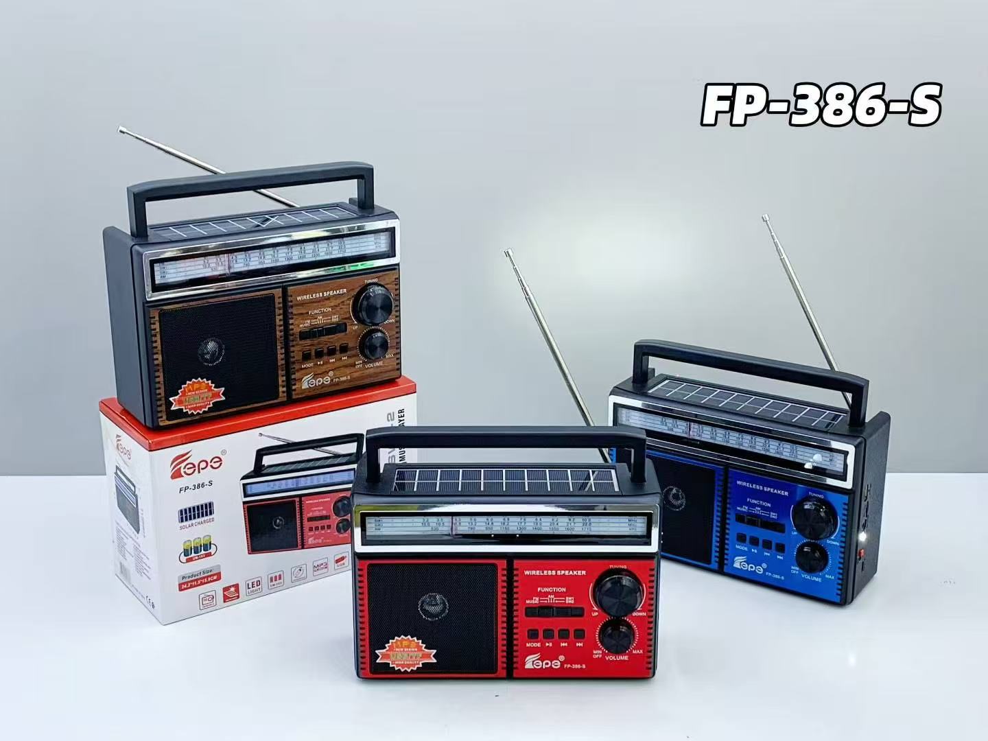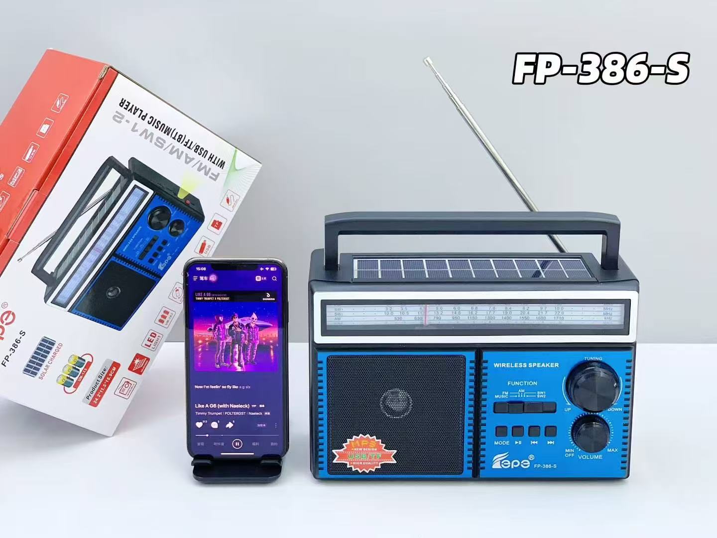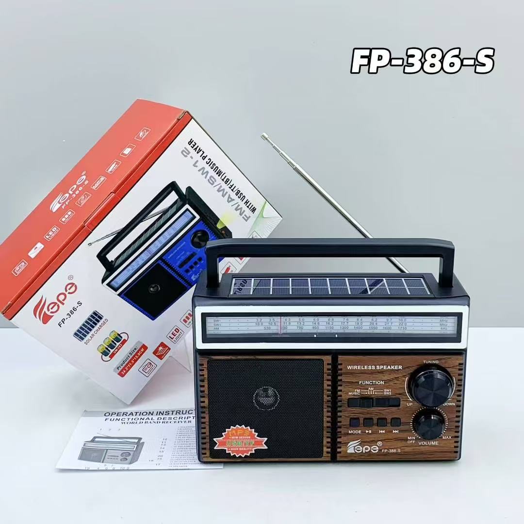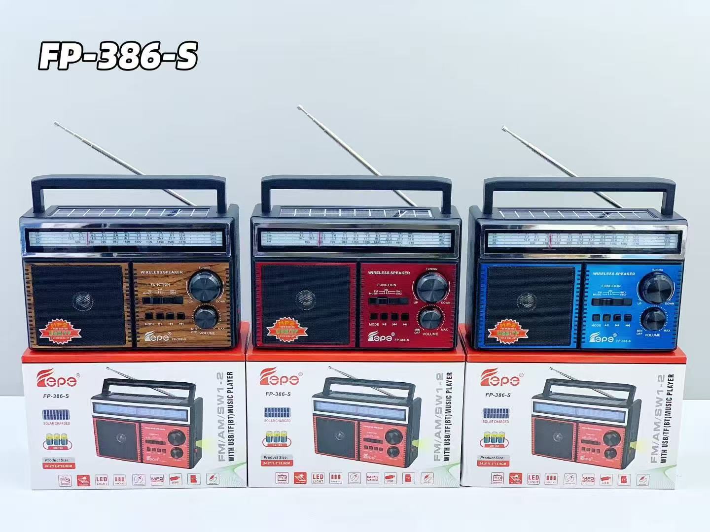 FP-386-S跨境收音机蓝牙音箱便携手提户外太阳能充电板多功能音响