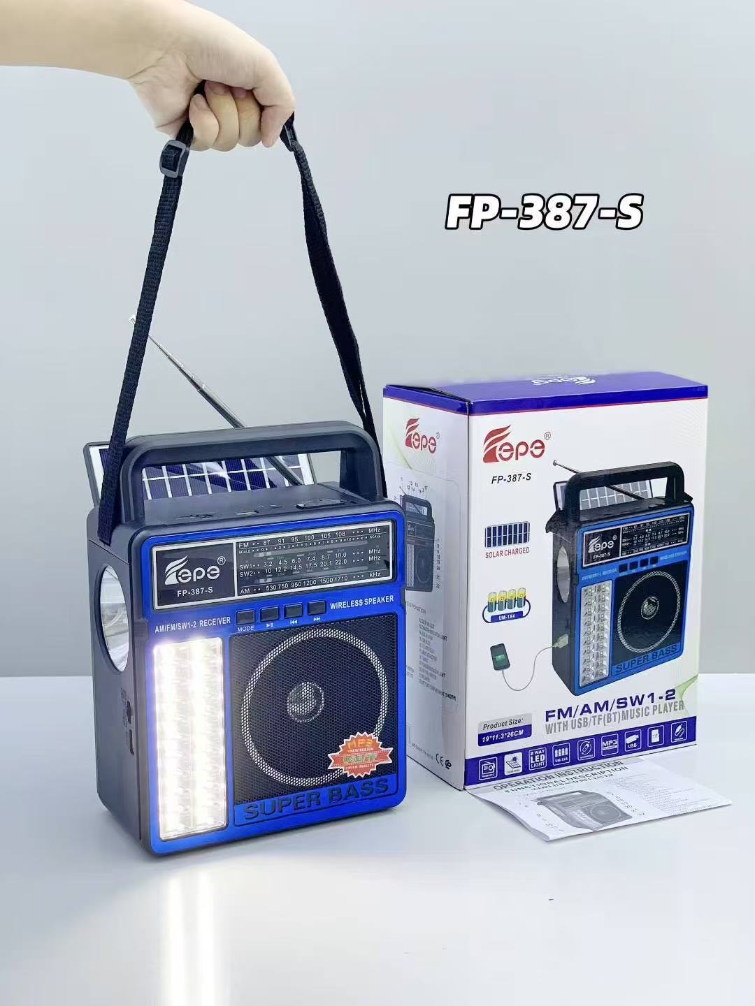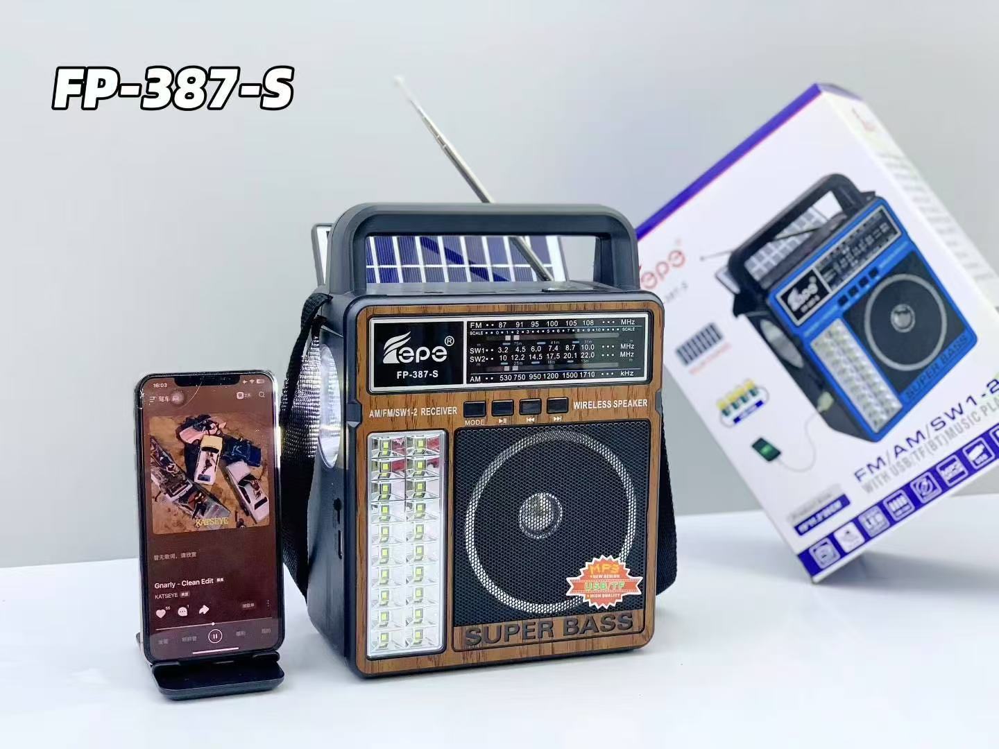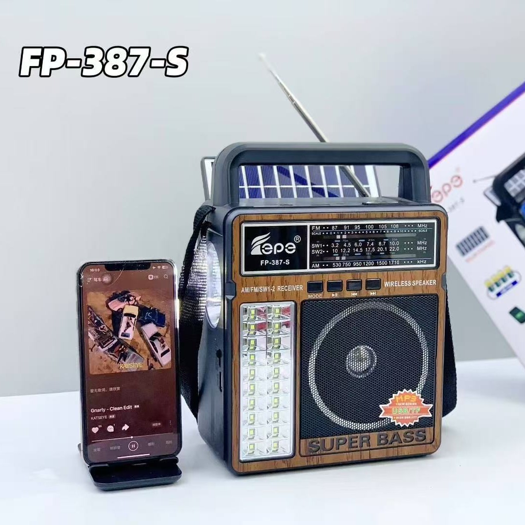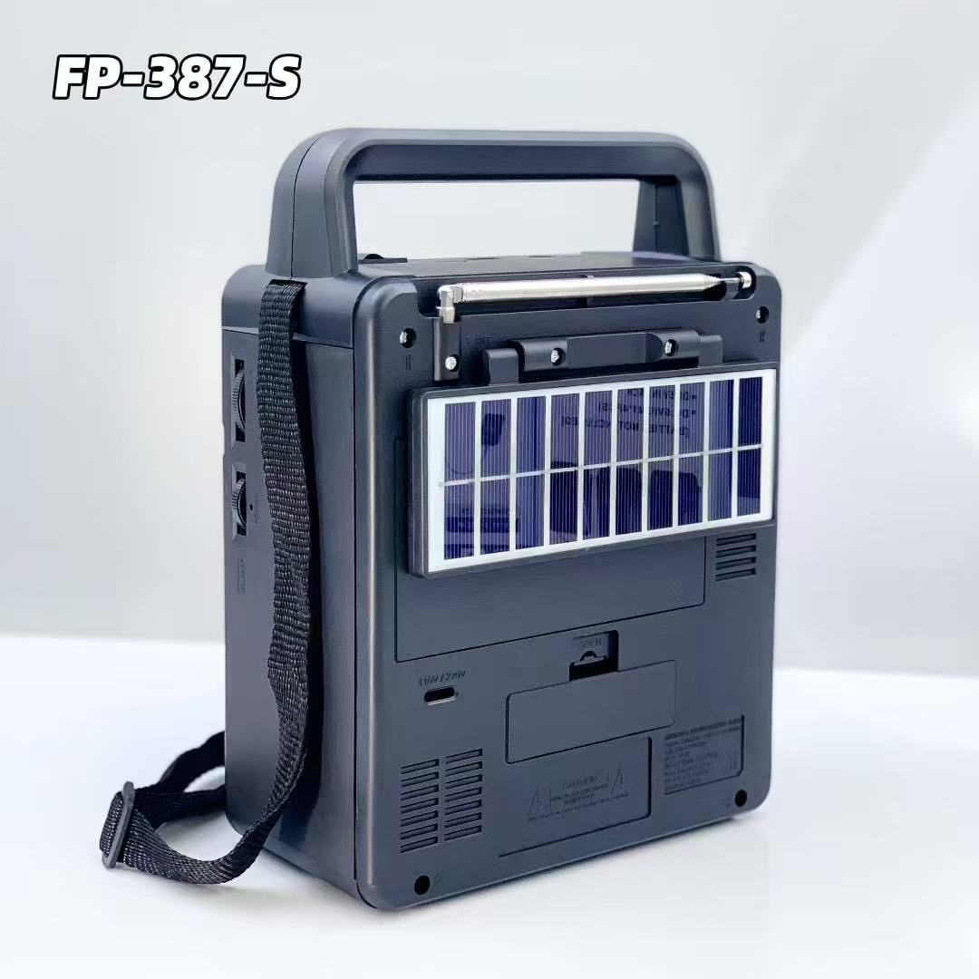 FP-387-S 跨境新款手提太阳能蓝牙音响户外手电筒LED灯便携收音机