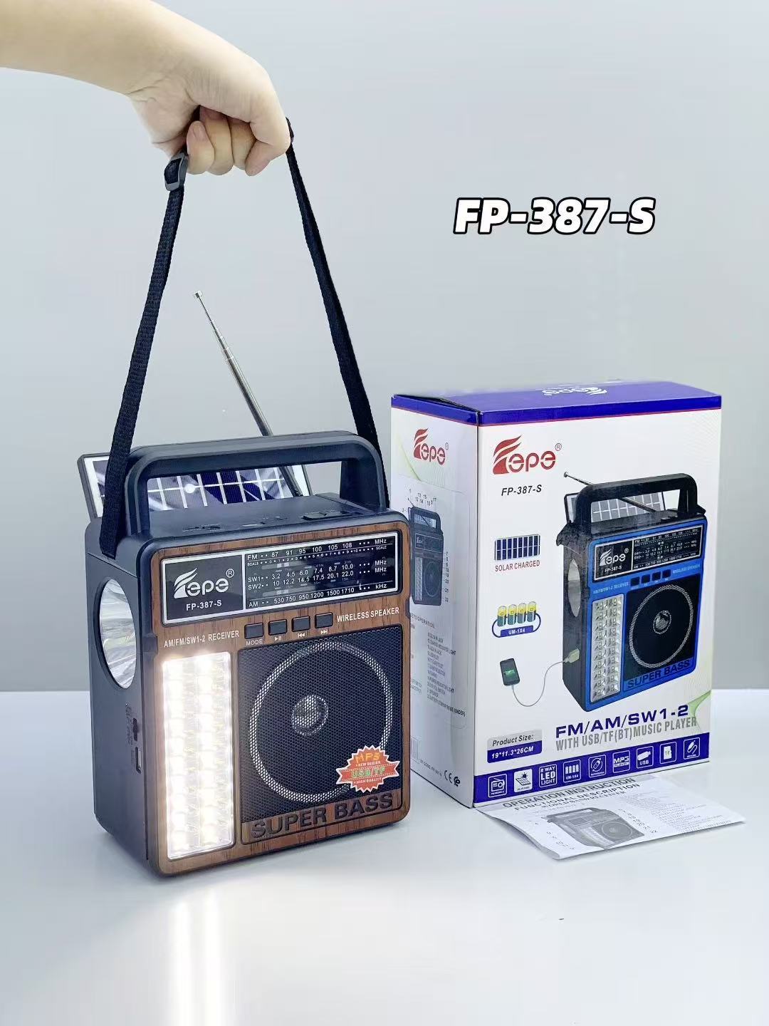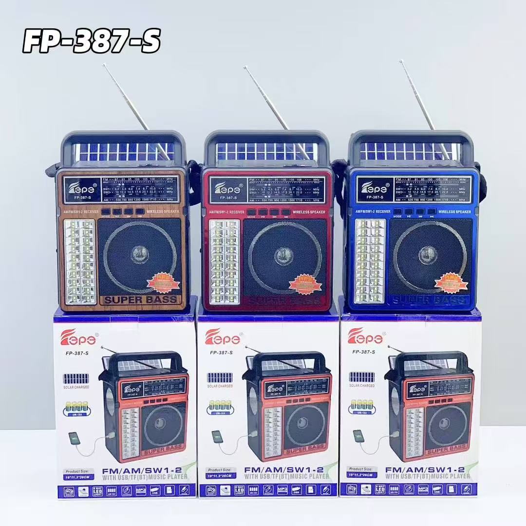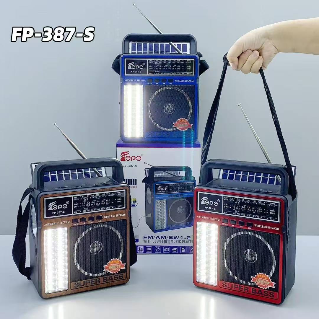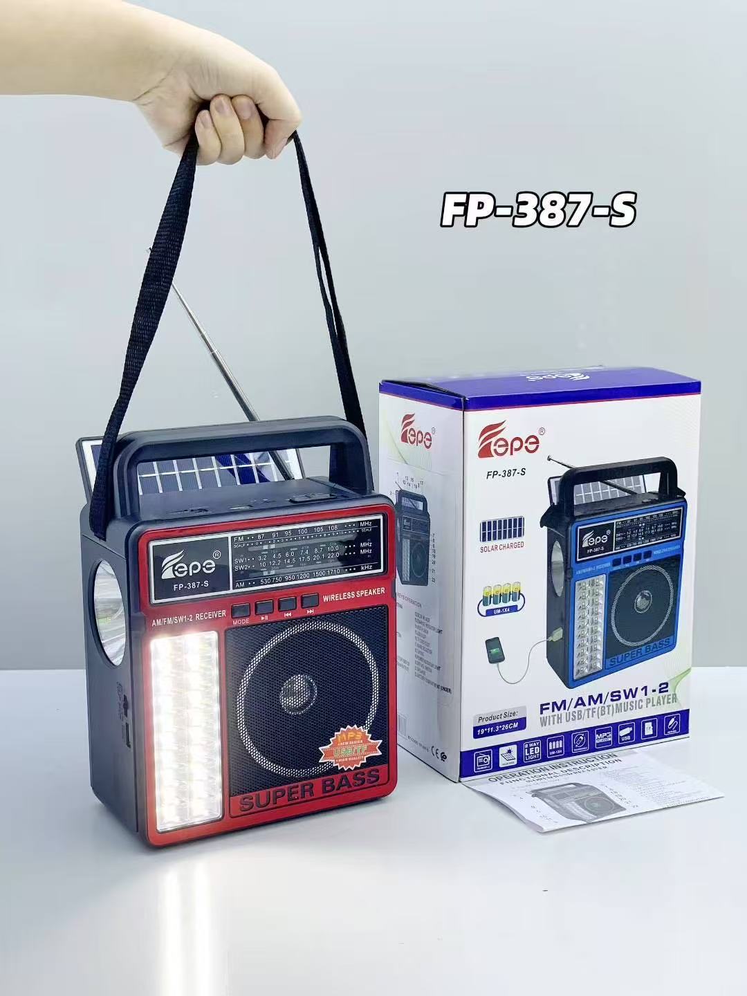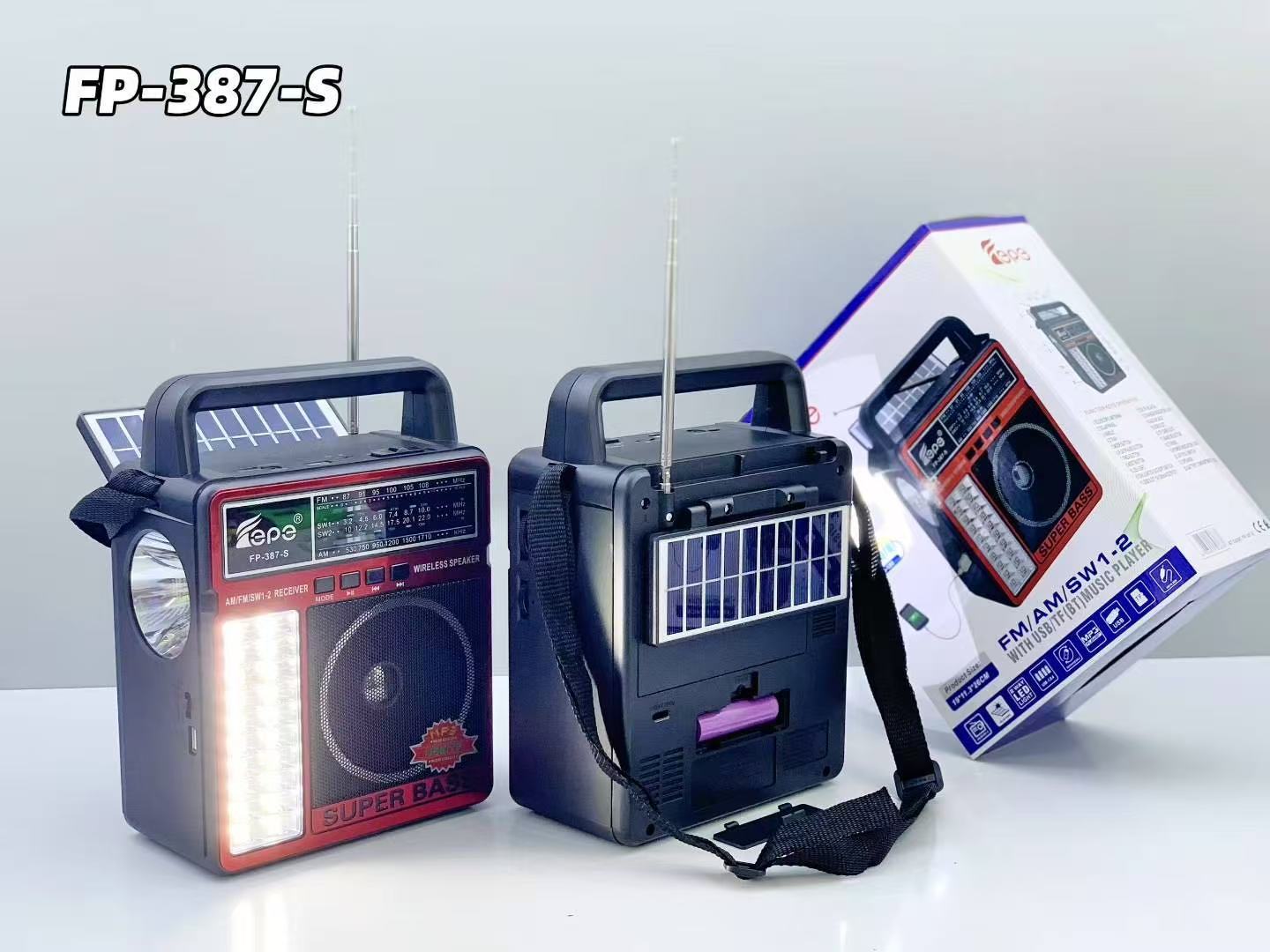 FP-387-S 跨境新款手提太阳能蓝牙音响户外手电筒LED灯便携收音机