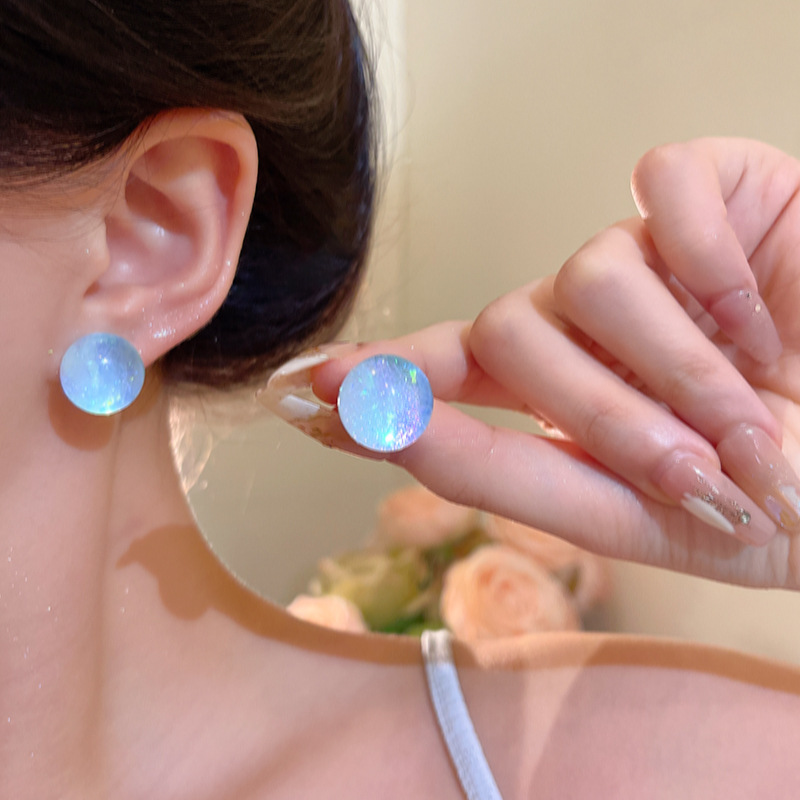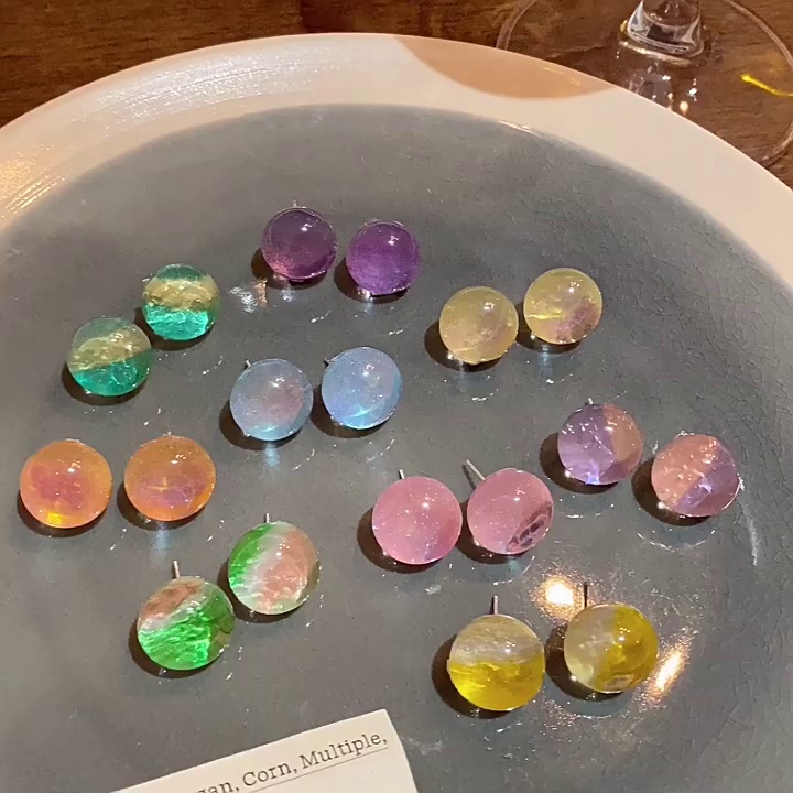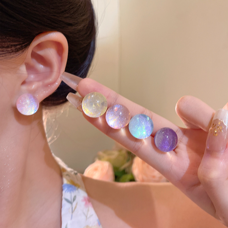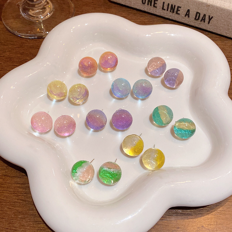 耳环小清新时尚百搭气质泡泡圆珠耳环多巴胺彩色透明星空感耳钉女