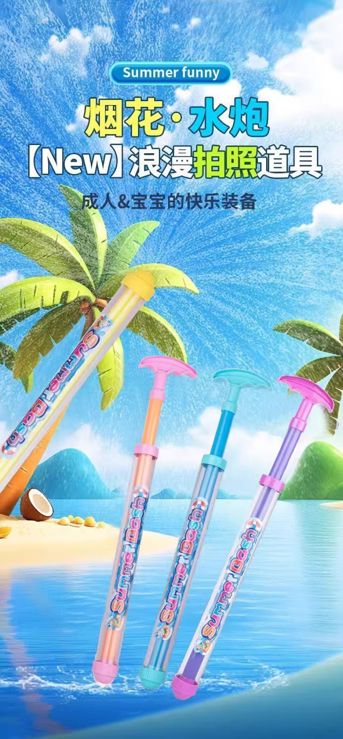 新款烟花水枪儿童玩具抽拉式喷水枪男孩夏季沙滩户外漂流戏水神器