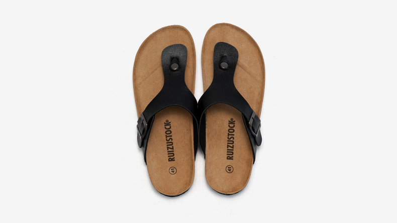 睿足情侣软木拖鞋男夏季夹脚沙滩凉拖鞋韩版潮流凉鞋休闲人字拖女