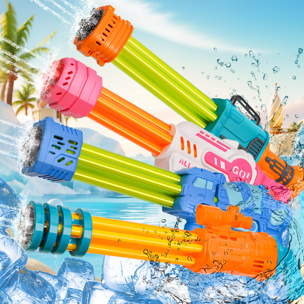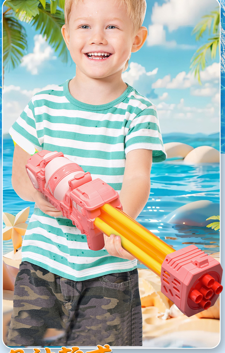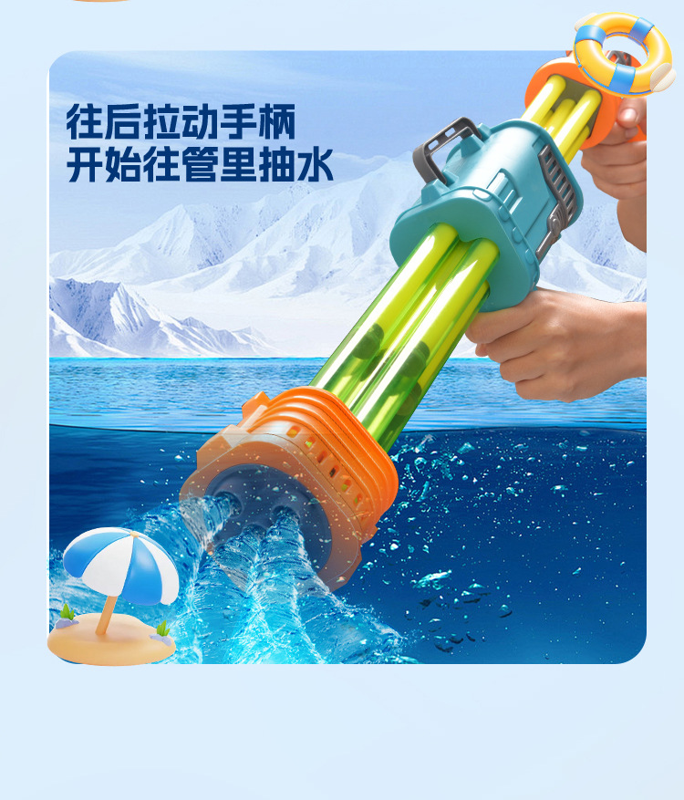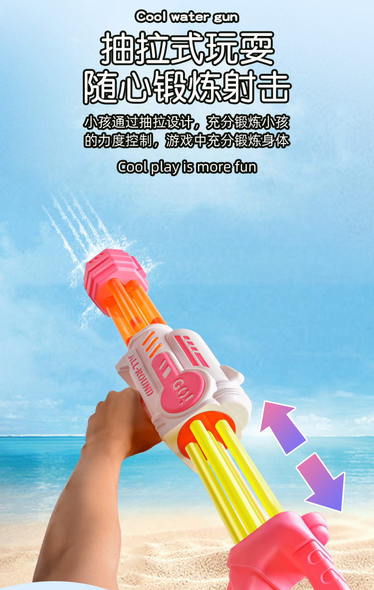 儿童抽拉式水枪玩具加特林水炮大容量夏季沙滩戏水漂流泼水节批发