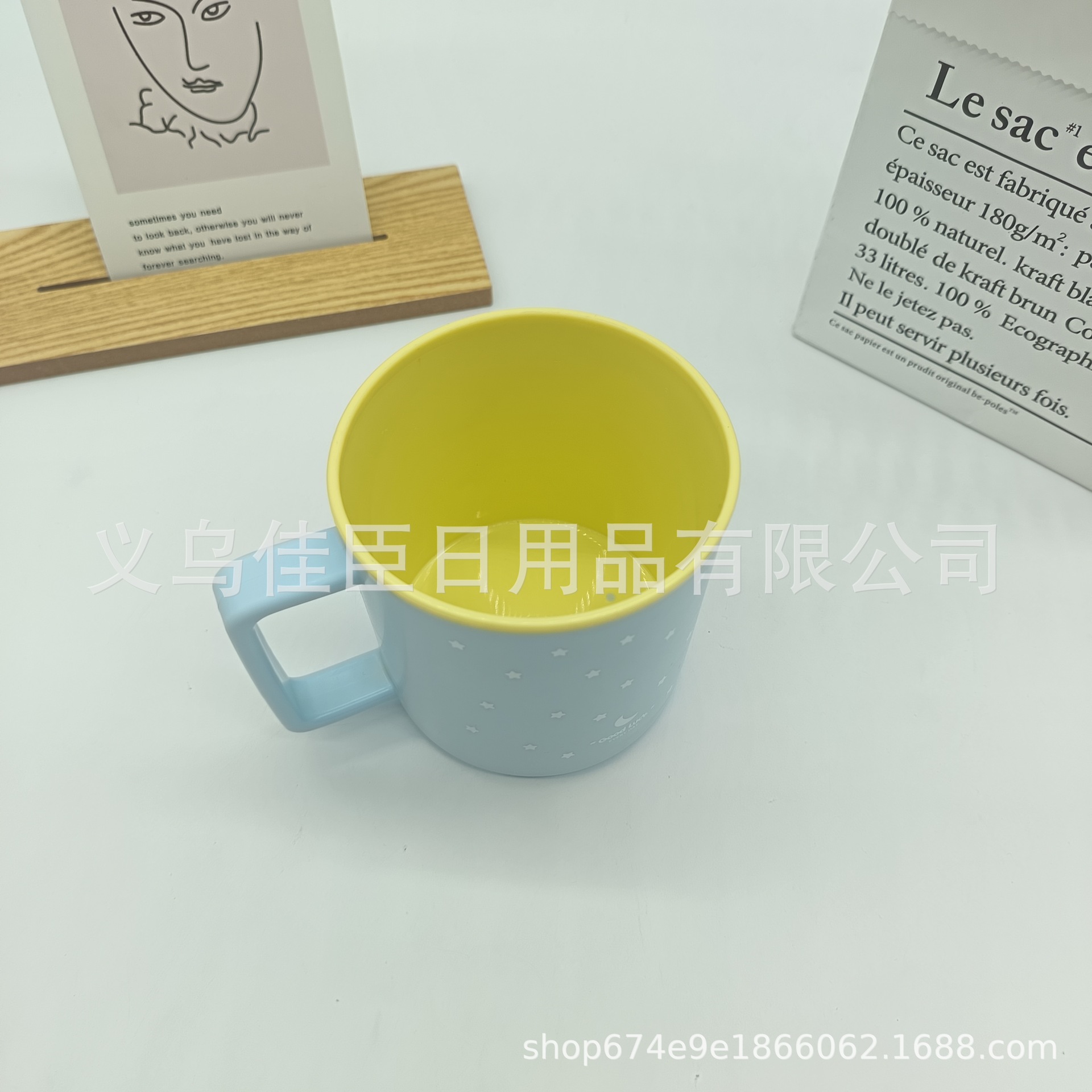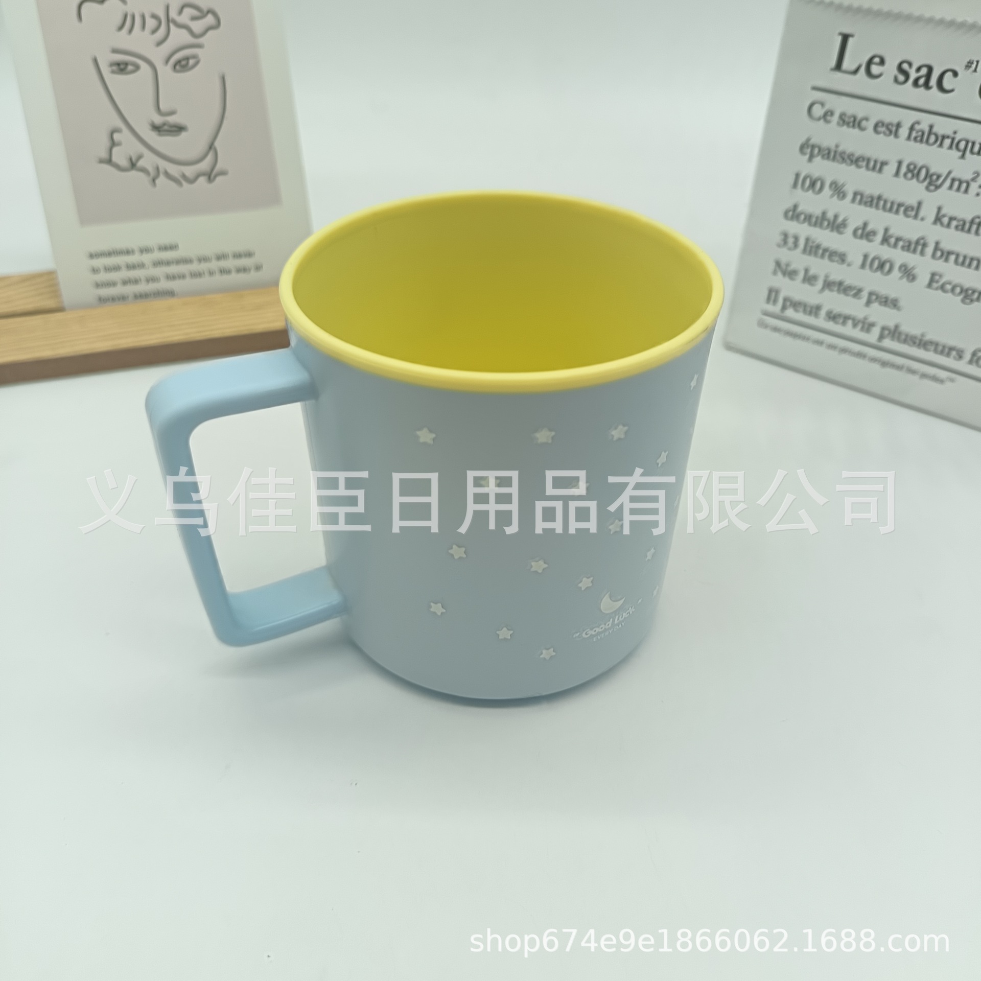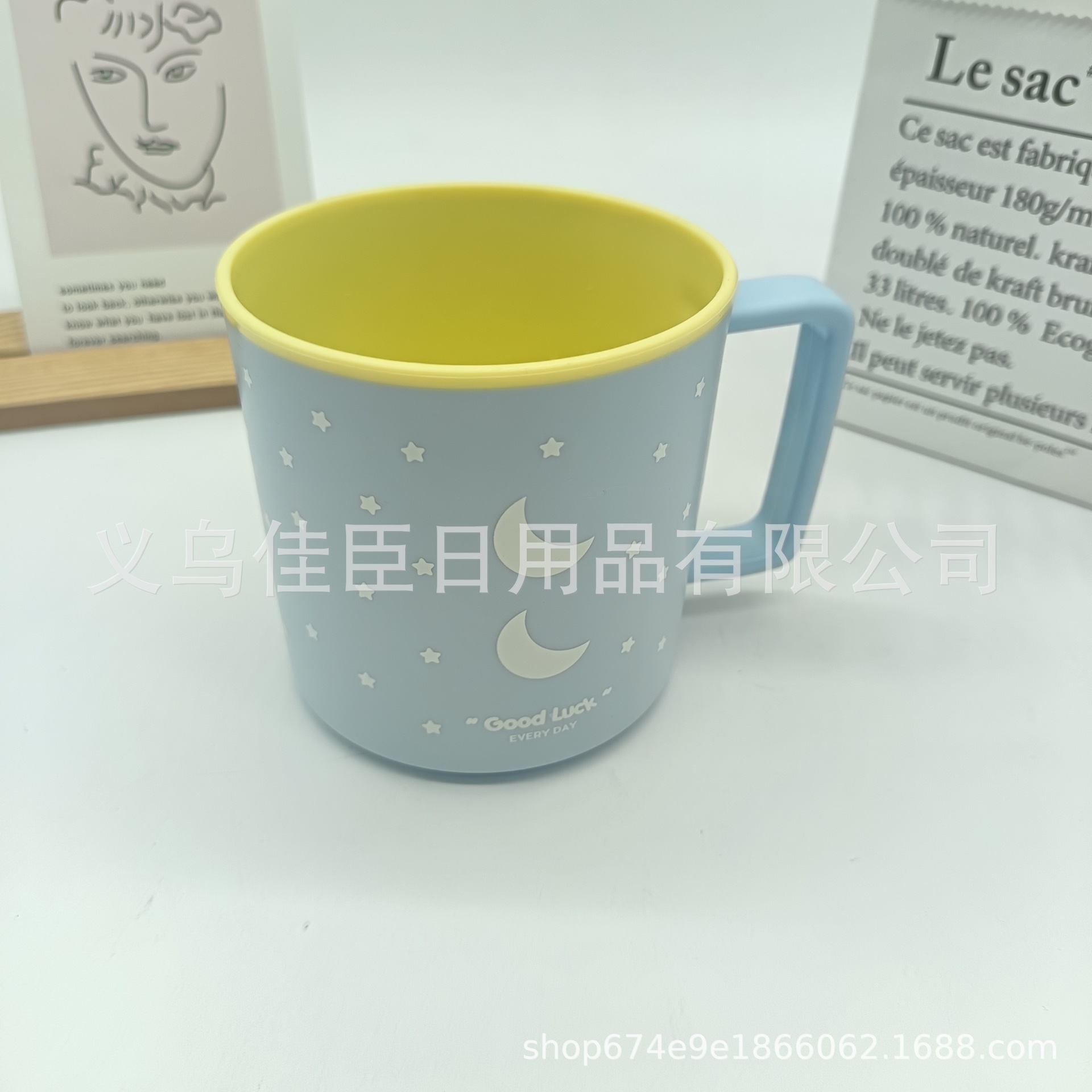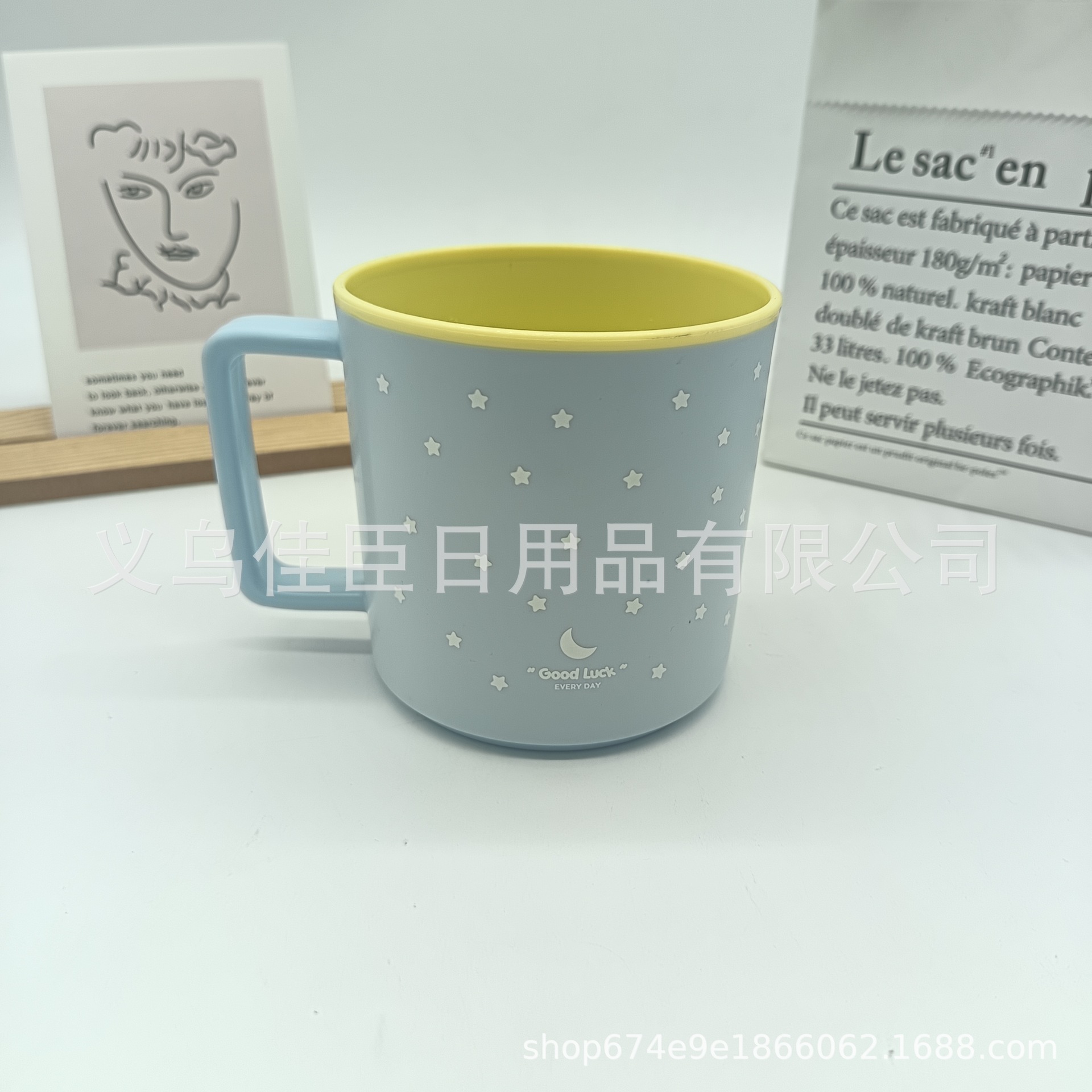 跨境热销可爱漱口杯星星月亮图案双色马克杯牛奶杯高颜值简单时尚