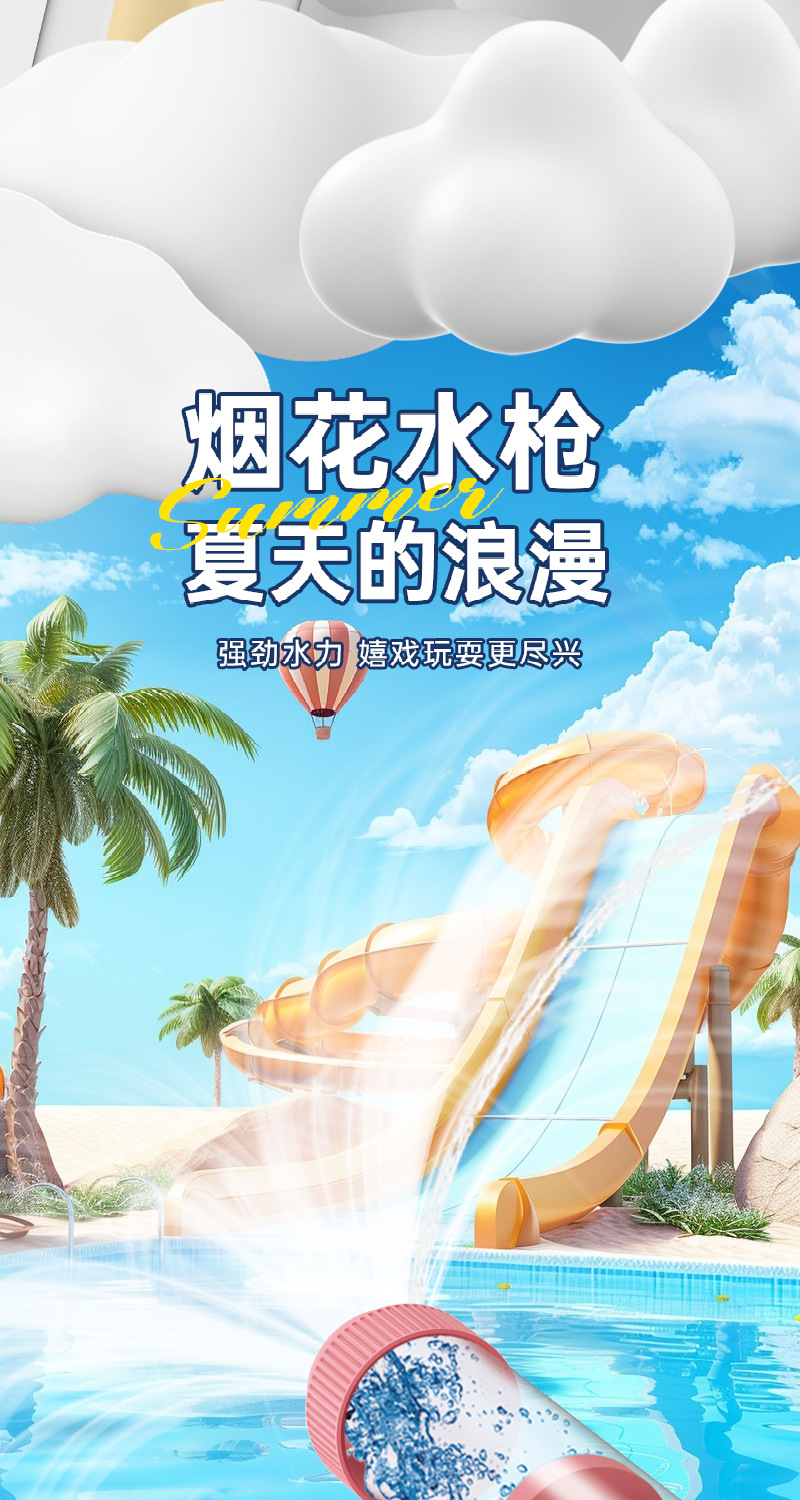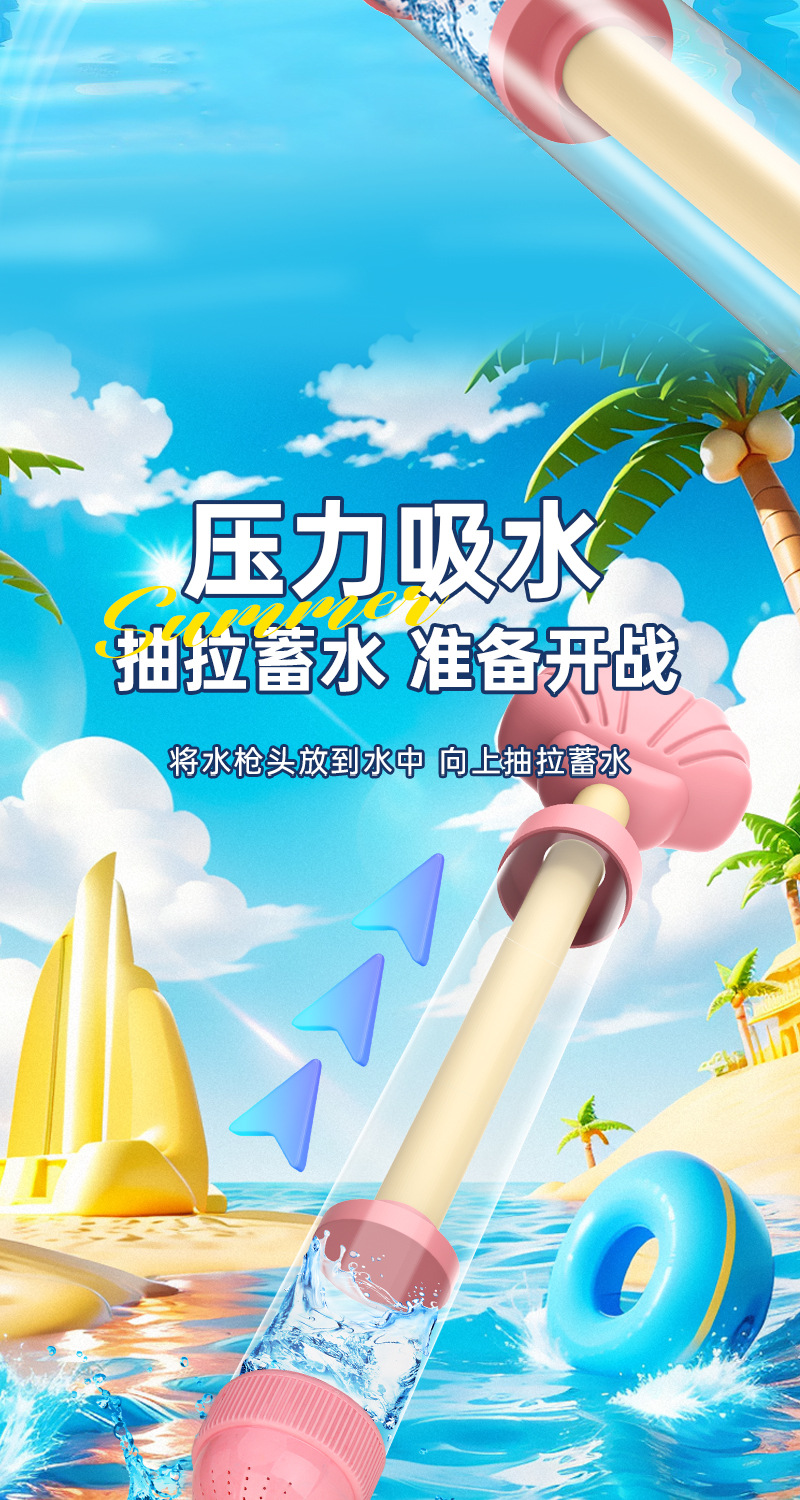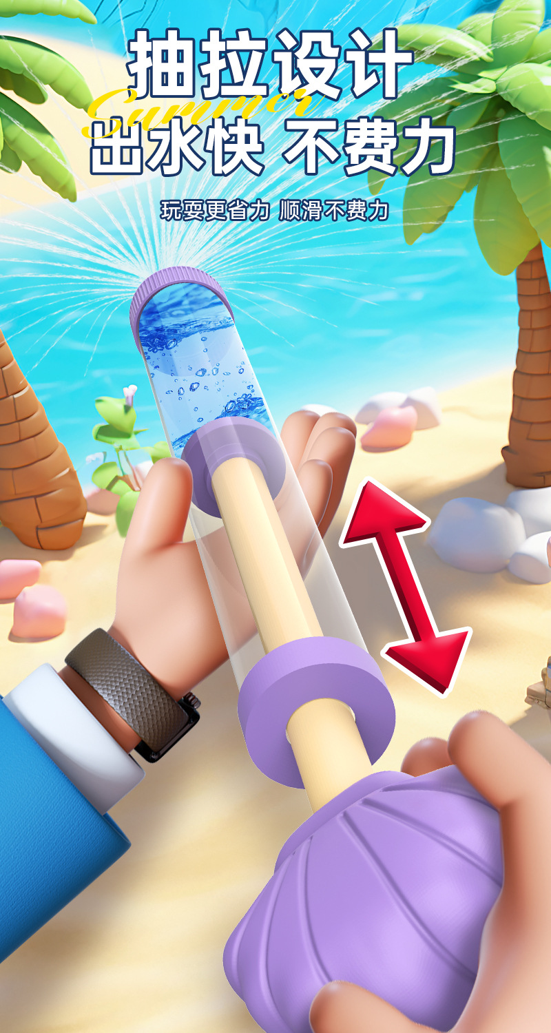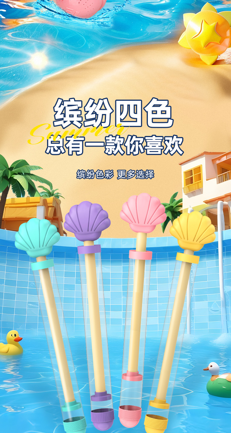 抽拉式烟花水枪贝壳水炮泼水节沙滩儿童玩具喷水嗞水氛围神器户外